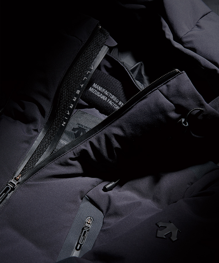 DESCENTE ALLTERRAINの10周年限定コレクション。水沢ダウン「INVISIBLE(インビジブル)」を発売。デサントの自社工場の名を記した水沢ダウンは、2008年の誕生以来、これまでのダウンジャケットとは一線を画した機能性を提唱し、今もなお進化し続けている。