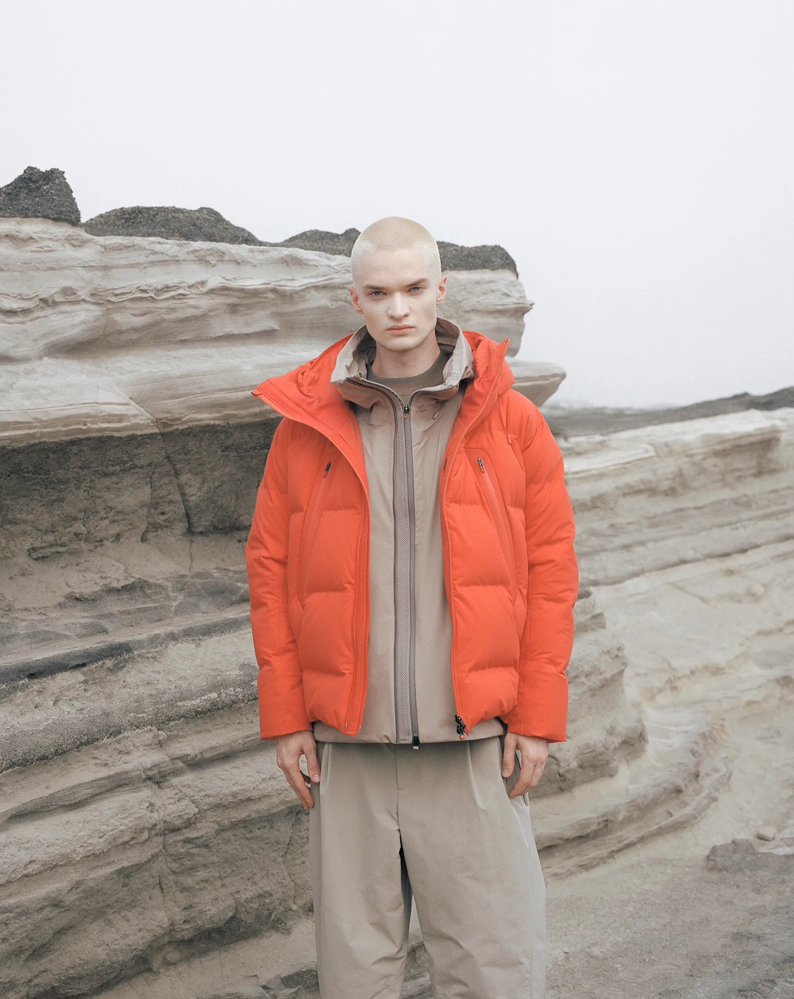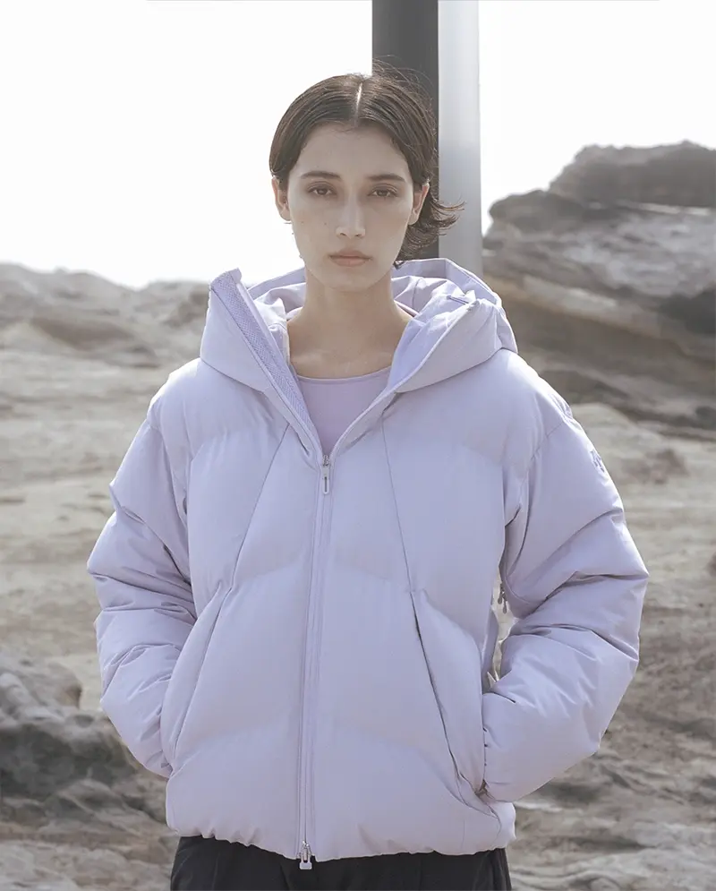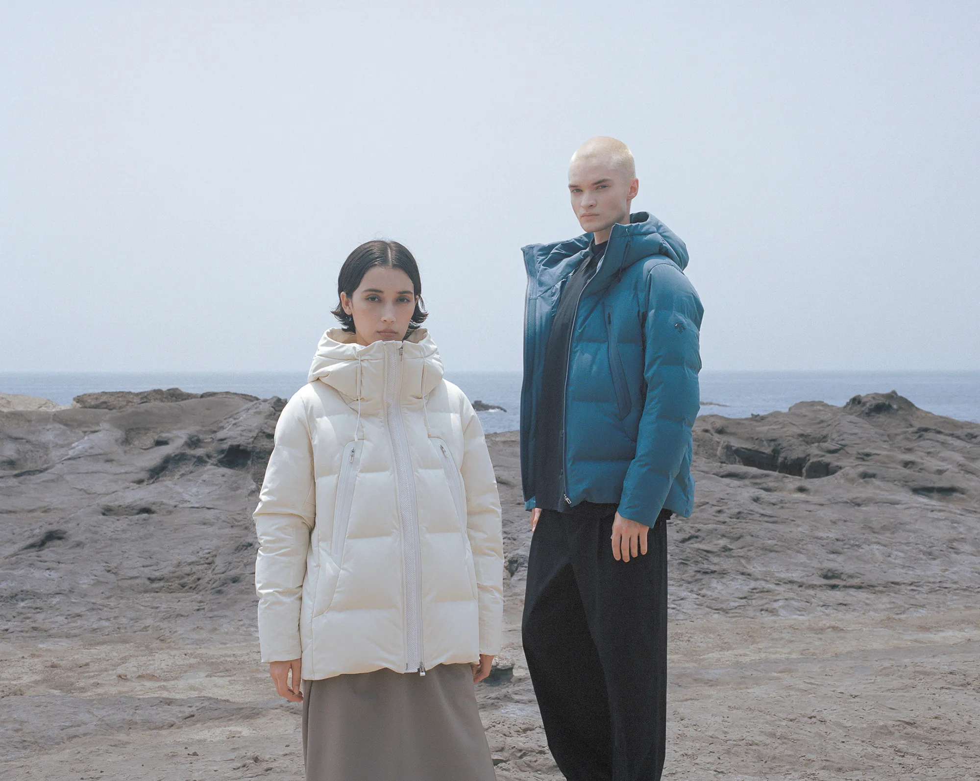 The starting point for it all was the overwhelming desire to create a unique, highly technical down jacket fundamentally different in concept from any that had ever existed before, utilising all the resources of Descente’s very capable designers and craftsmen. In all down jackets prior to this time, the technical focus had tended to narrow down to two main issues – lightness and the quality of the down itself (the so called “fill power”). Starting in 2007, however, Descente opted for a whole new approach, starting with a very hard look at what wearers thought were their weak, or problem points. And they were very soon obvious. Firstly, they performed poorly in rain or snowy conditions, with moisture easily penetrating through the holes made by machine stitched seams, and when the down became wet, it lost heat rather than retained it. Furthermore, feathers tended to work themselves out and protrude through holes in the stitching.