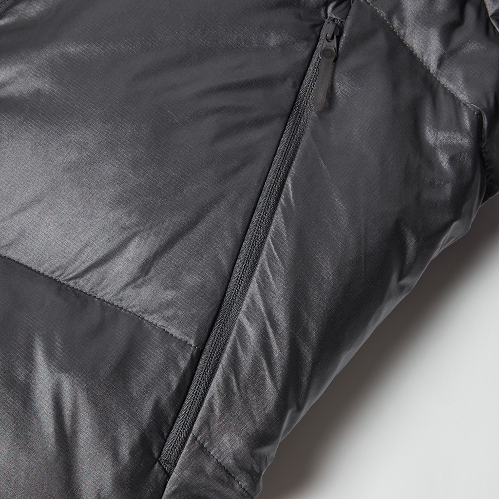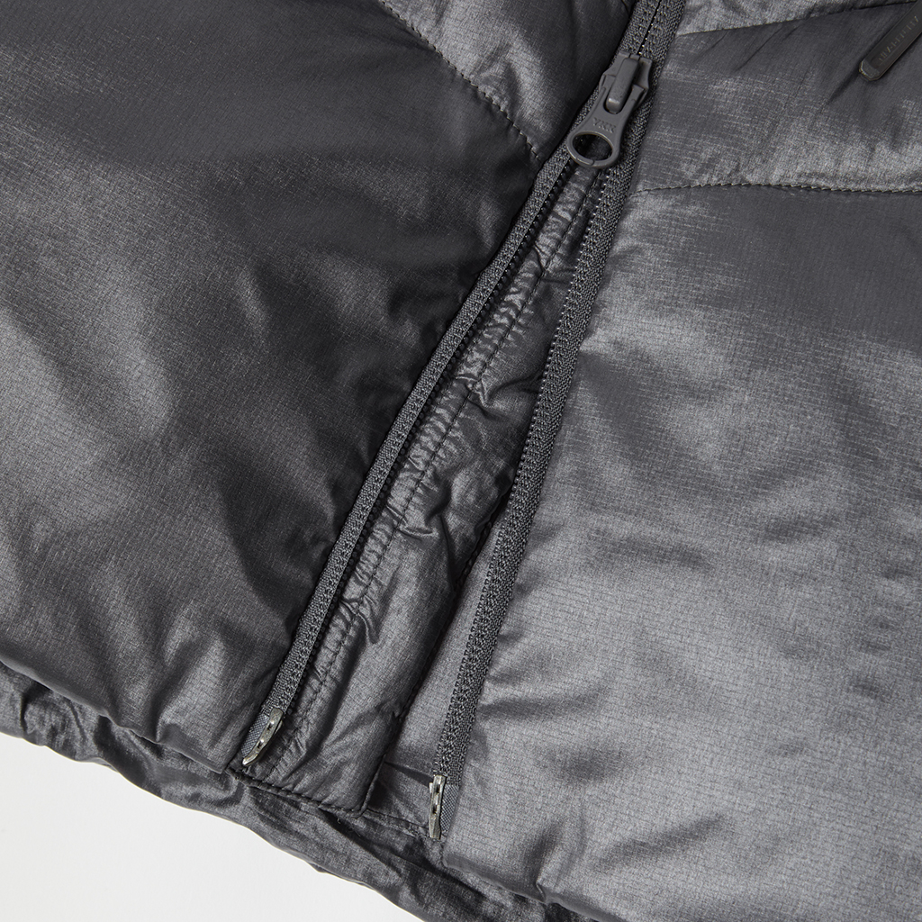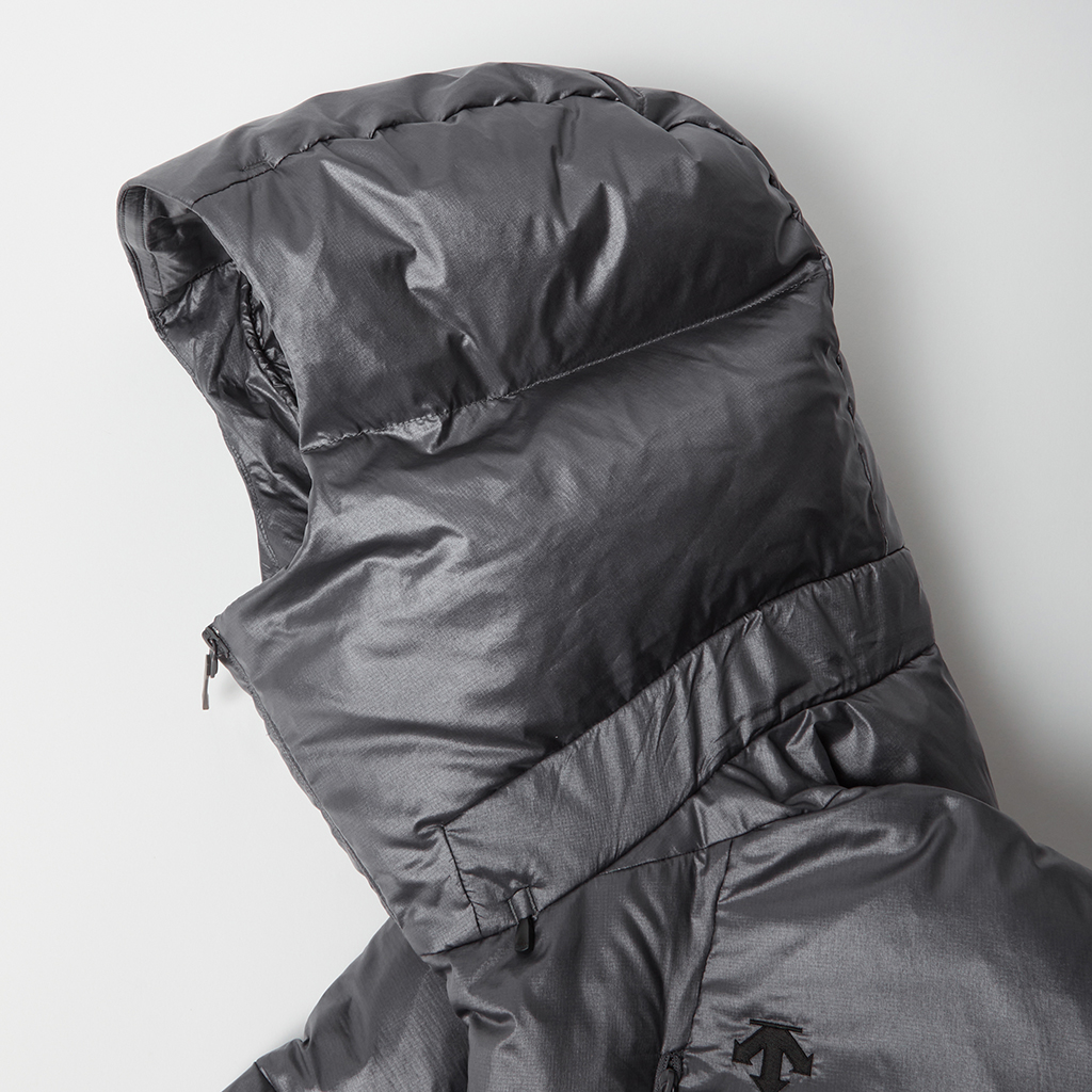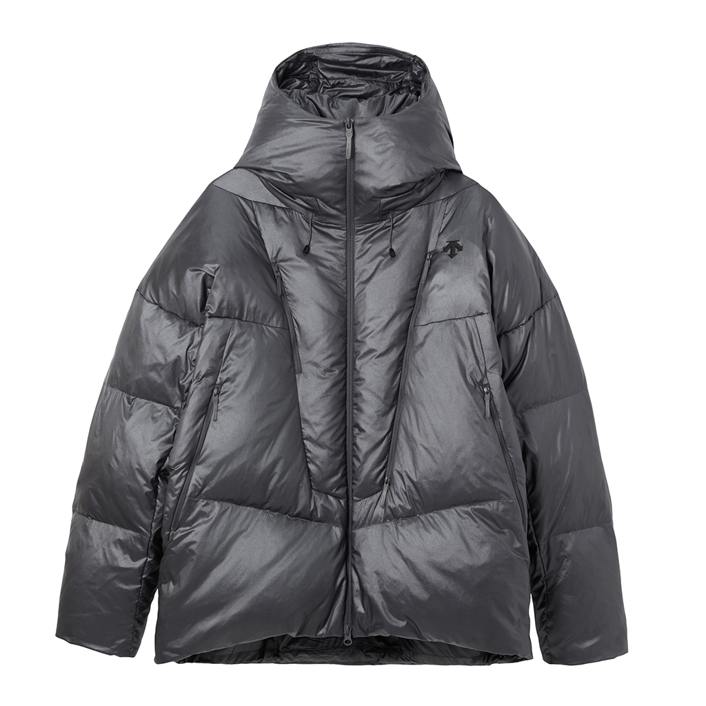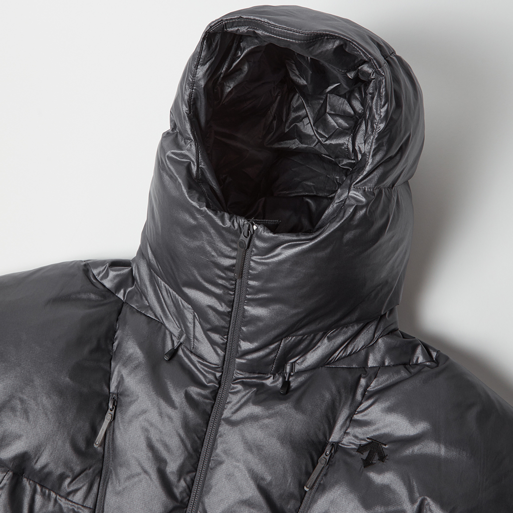 A down parka in a lightweight, supple, textured fabric insulated with water repellent 750 fill power down. The front closure has a full-length zipper, and there are four zippered pockets on the left and right front. Of these, the larger left chest pocket has additional compartments inside. Inner cuffs on the sleeves reduce wind entry, and rubber spindles and stoppers at the hem make adjustment easy. It comes with a stuff sack for portability. Suitable for extreme cold-weather conditions and a wide range of outdoor activities.
