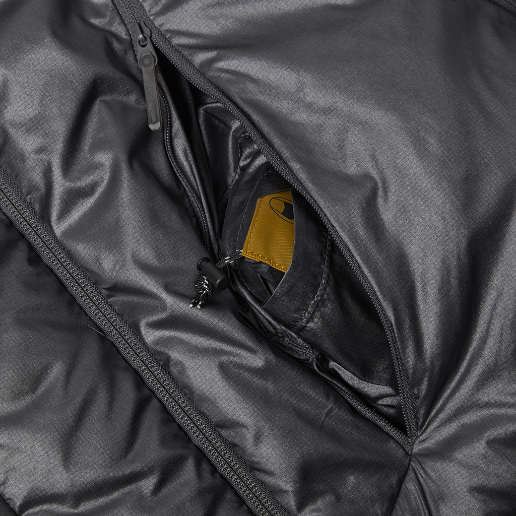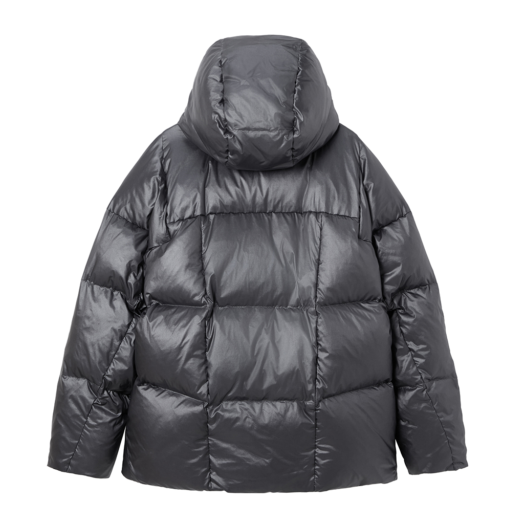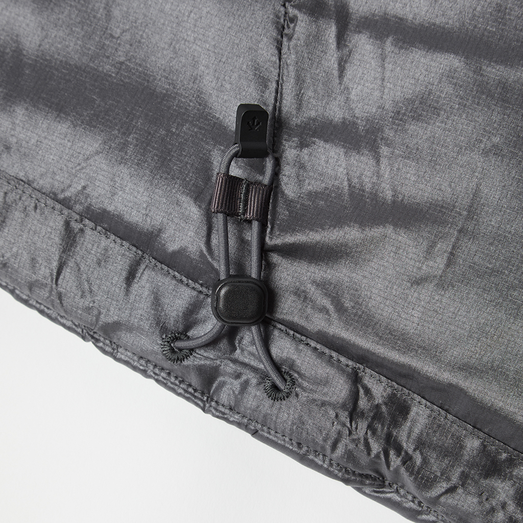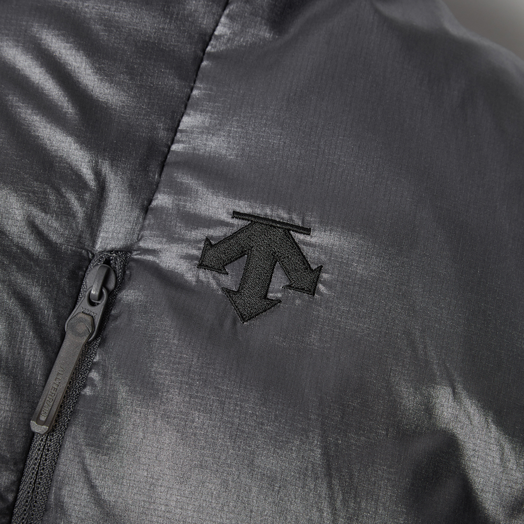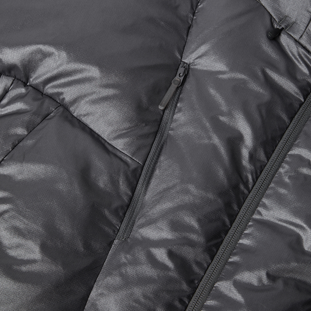 A down parka in a lightweight, supple, textured fabric insulated with water repellent 750 fill power down. The front closure has a full-length zipper, and there are four zippered pockets on the left and right front. Of these, the larger left chest pocket has additional compartments inside. Inner cuffs on the sleeves reduce wind entry, and rubber spindles and stoppers at the hem make adjustment easy. It comes with a stuff sack for portability. Suitable for extreme cold-weather conditions and a wide range of outdoor activities.