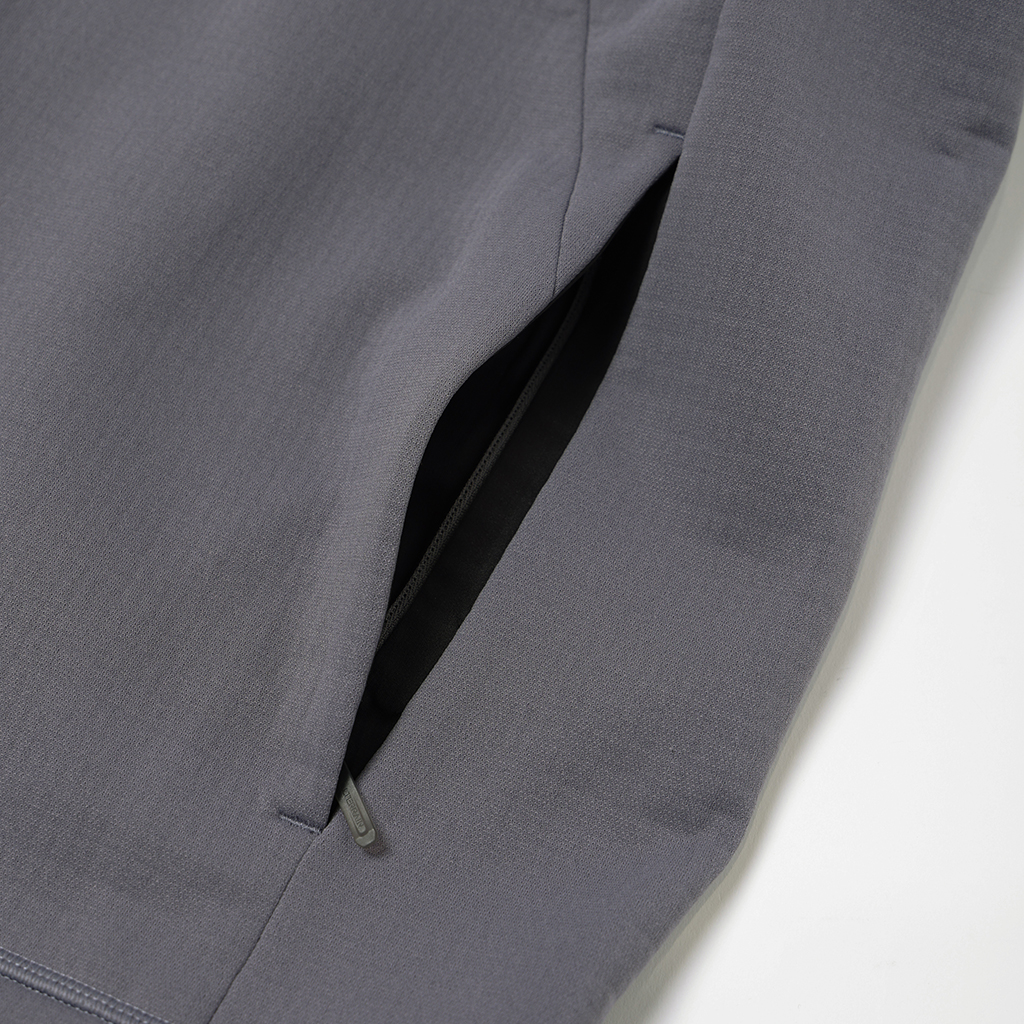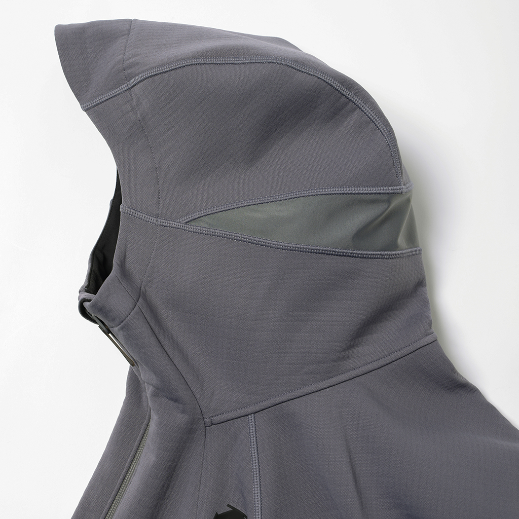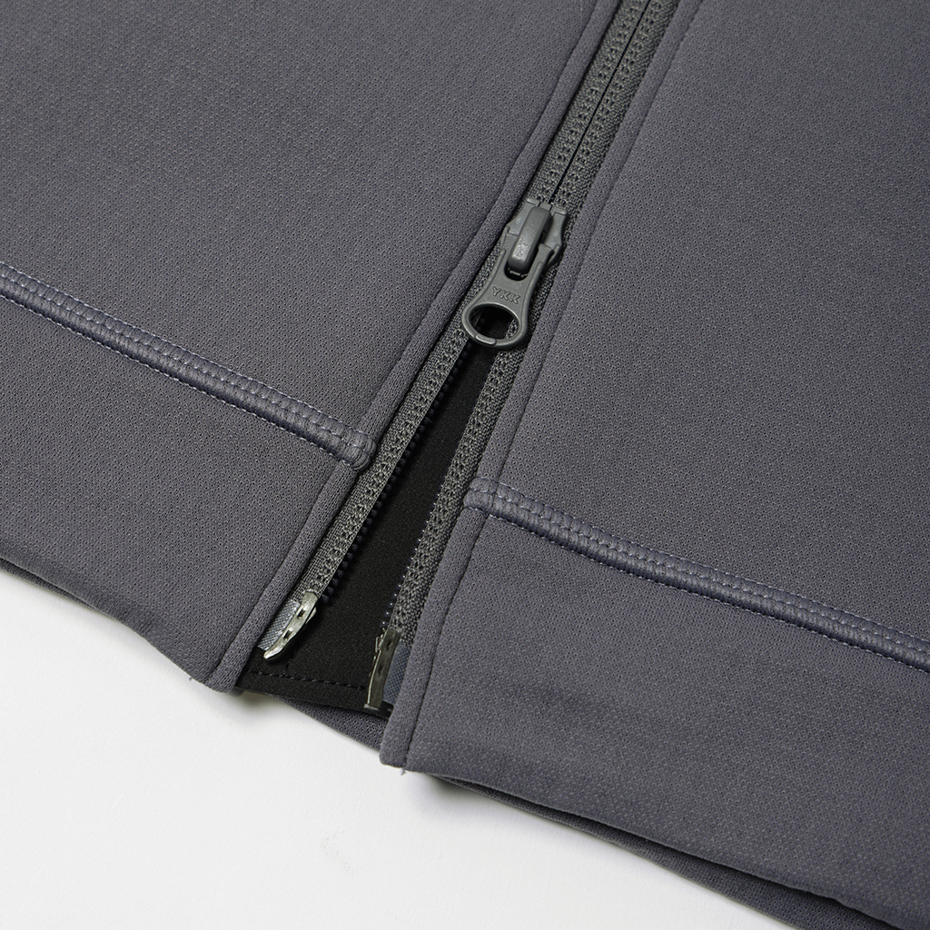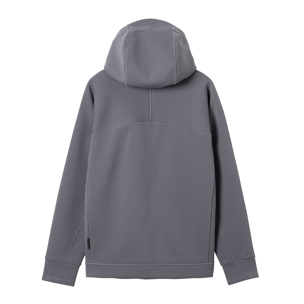 A full-zip parka in a special fabric with a lattice-like construction on the inner surface and microfiber encapsulation for a soft skin touch and improved warmth retention. It has zippered side pockets and a zippered right chest pocket.with a mesh pouch for ventilation and added storage. Thumbholes in the cuffs and rubber spindles and stoppers on the hem make for easy adjustment. Suitable for both outdoor activities and casual wear.