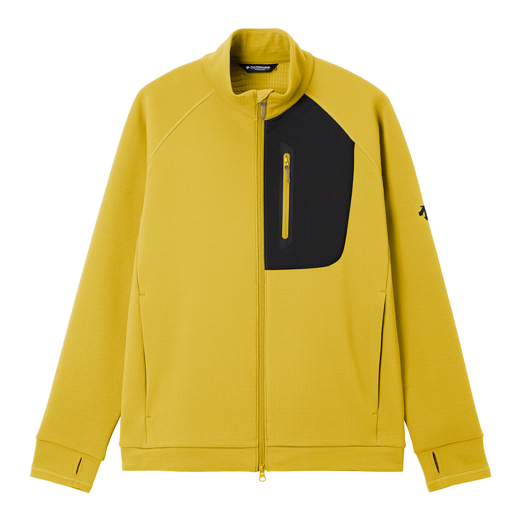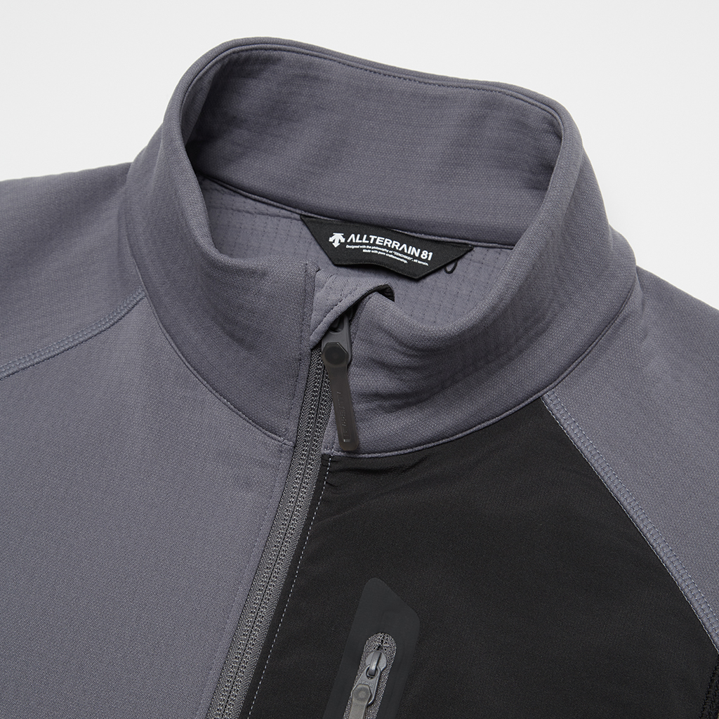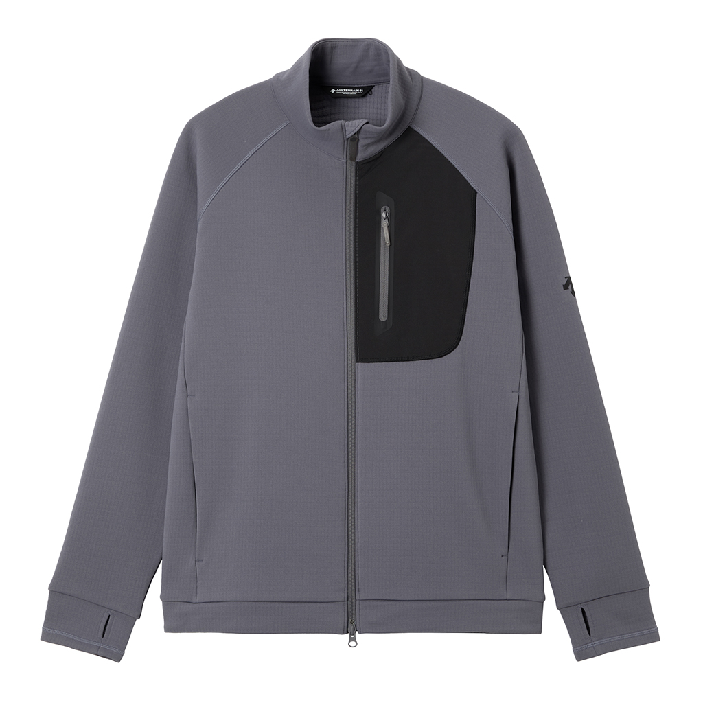 A full-zip jacket in a special fabric with a lattice-like construction on the inner surface and microfiber encapsulation for a soft skin touch and improved warmth retention. It has zippered side pockets and an additional bonded left chest pocket with a zipper. Thumbholes in the cuffs and rubber spindles and stoppers on the hem make for easy adjustment. Suitable for both outdoor activities and casual wear.