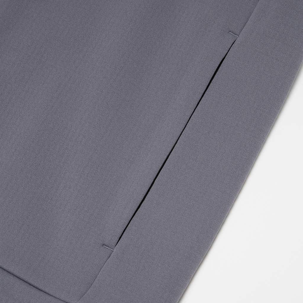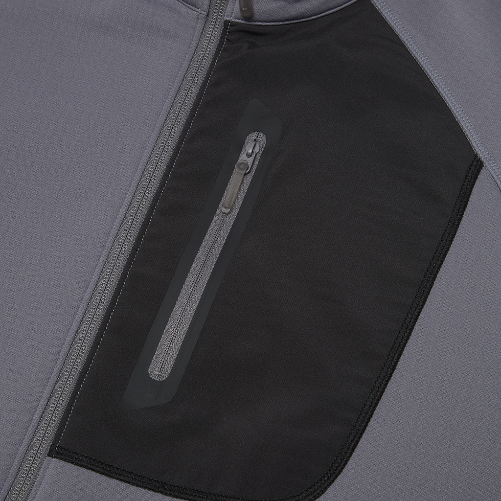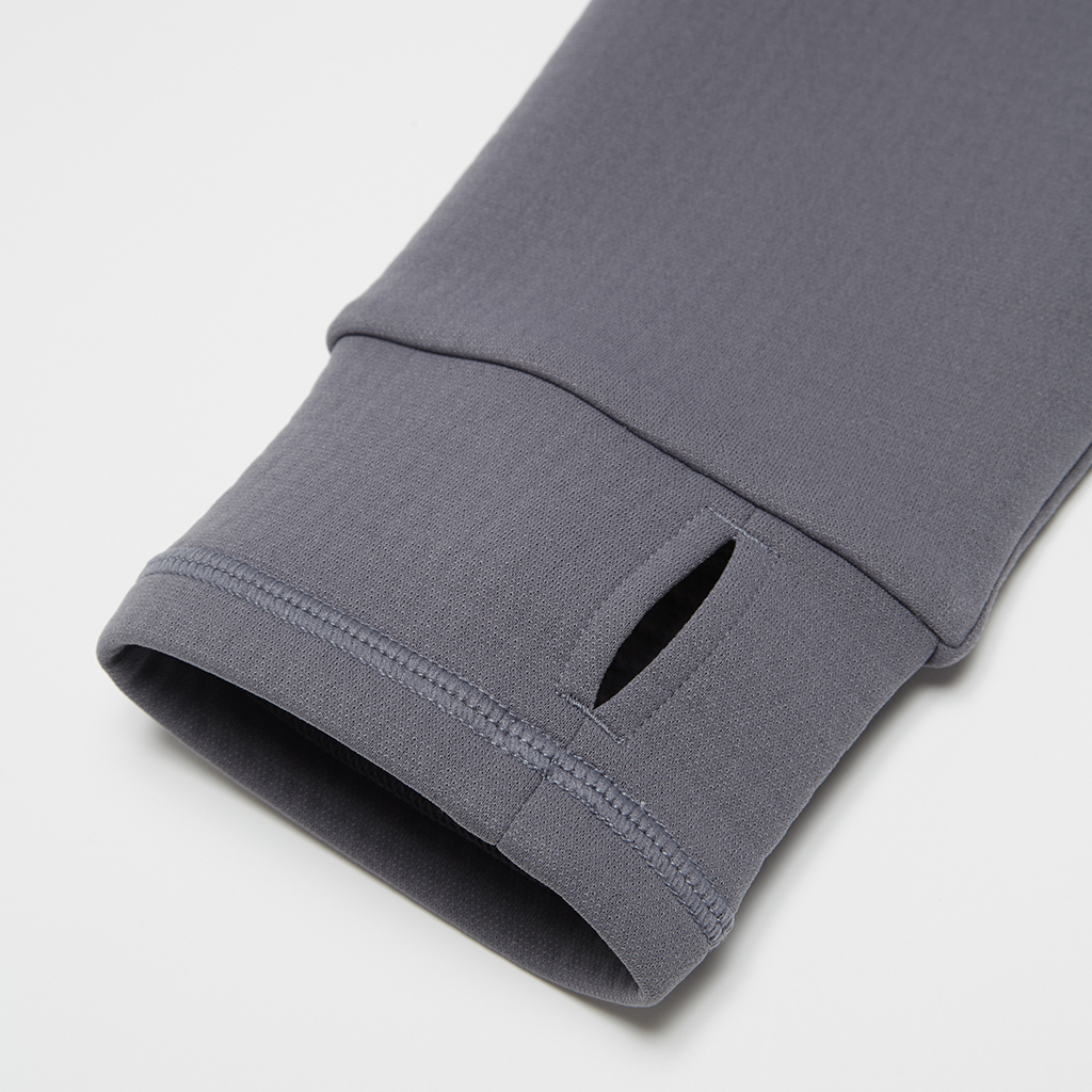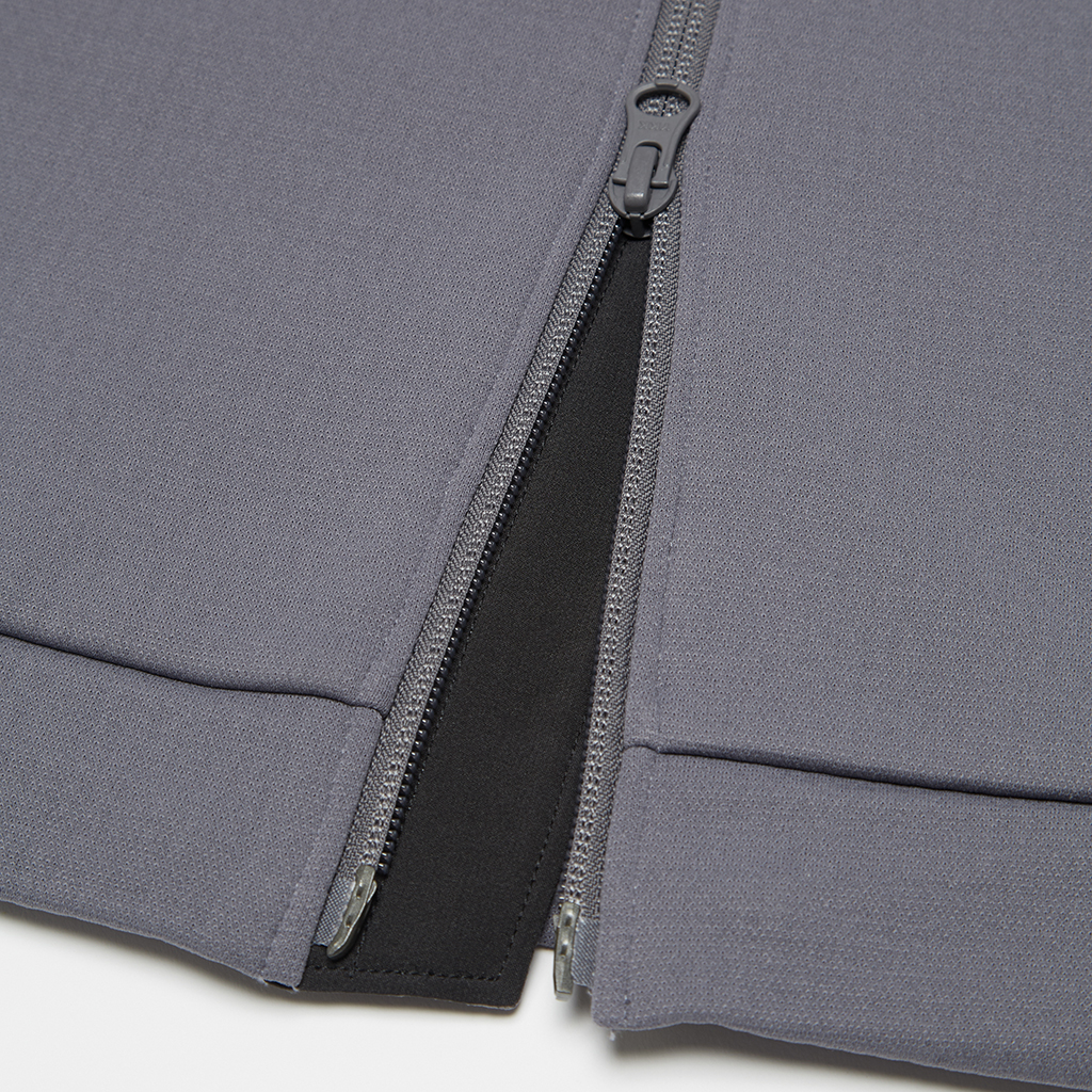 A full-zip jacket in a special fabric with a lattice-like construction on the inner surface and microfiber encapsulation for a soft skin touch and improved warmth retention. It has zippered side pockets and an additional bonded left chest pocket with a zipper. Thumbholes in the cuffs and rubber spindles and stoppers on the hem make for easy adjustment. Suitable for both outdoor activities and casual wear.