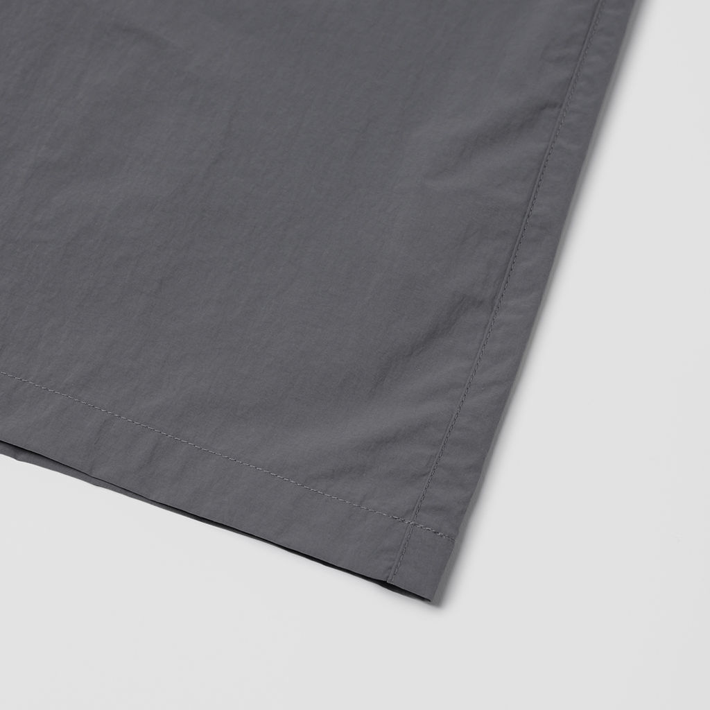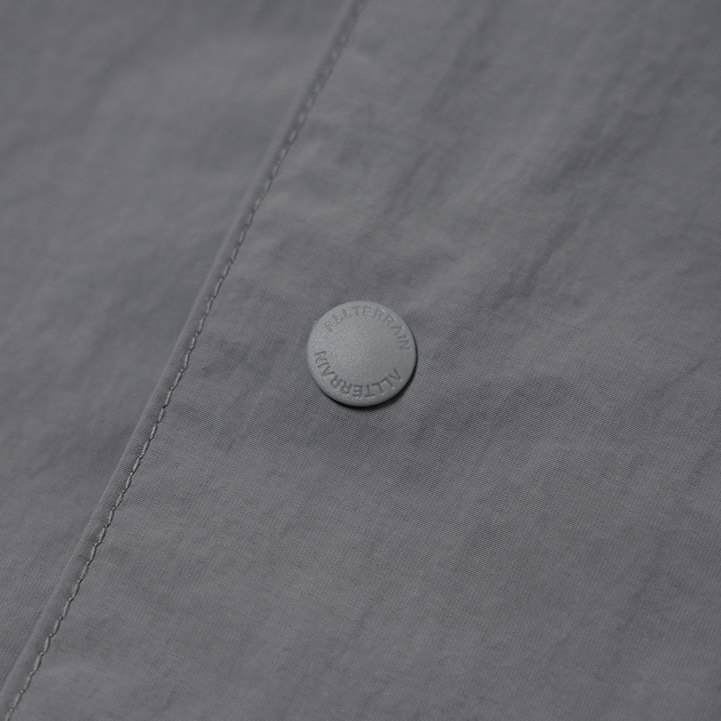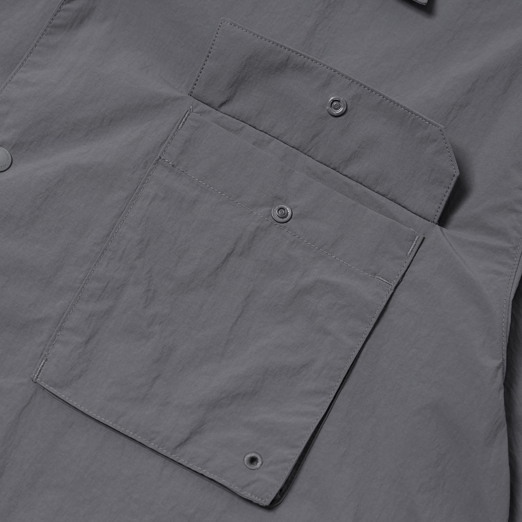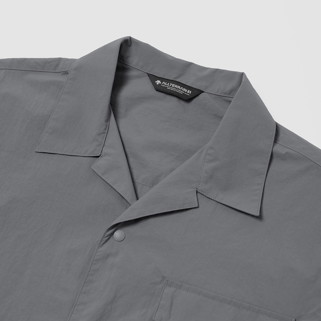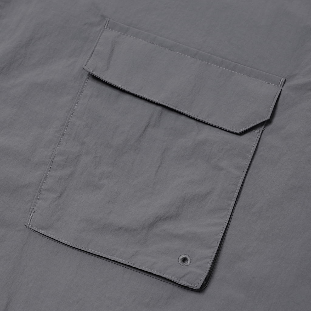 A lightweight short sleeve shirt in Taslan nylon. Water repellency is achieved with a CO treatment, free from decomposition-resistant fluorine compounds.The front has snap buttons and a gusseted patch pocket on the left chest for enhanced storage capacity. Suitable for both outdoor activities and everyday activewear.