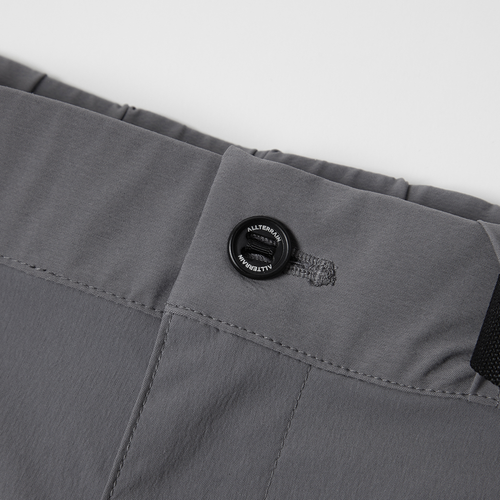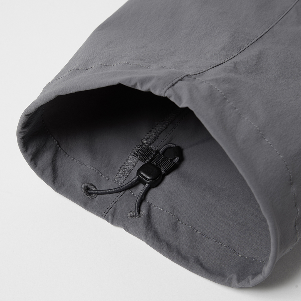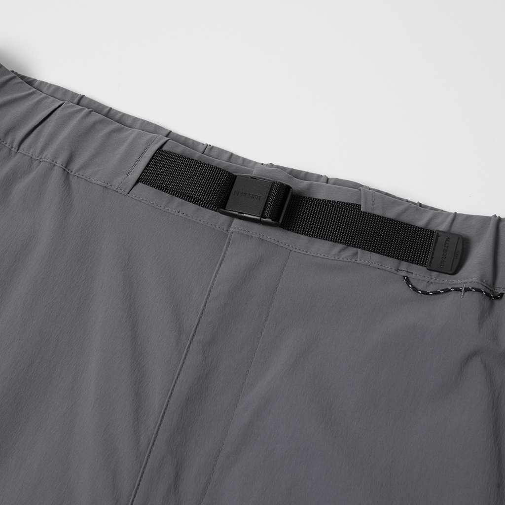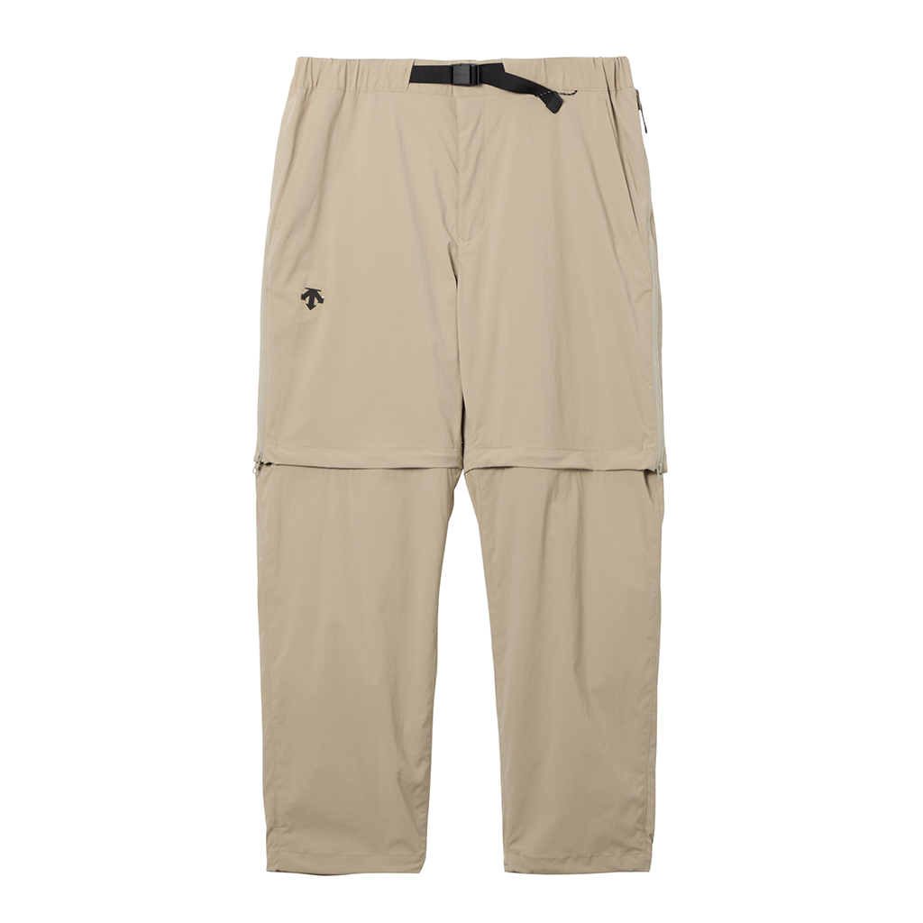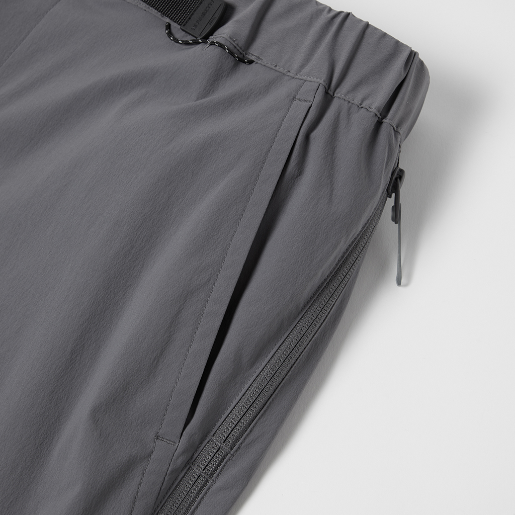 2-way pants in CORDURA? fabric developed by DuPont of the USA, featuring stretch for freedom of movement and some water repellency achieved with a CO treatment, free from decomposition-resistant fluorine compounds.The front closes with a button-and-zipper and a waist belt allows easy adjustment. Lower legs can be detached with zippers for conversion to shorts. Rubber spindles and stoppers at the lower hems allow easy pant width adjustment. Suitable for both outdoor activities and everyday wear.