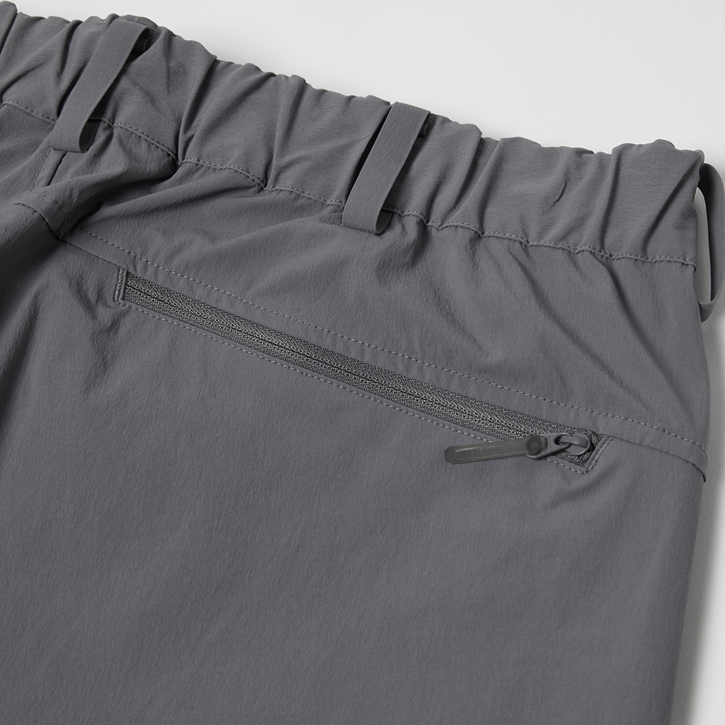 Pants in CORDURA? developed by Dupont in the USA offering stretch for freedom of movement and moderate water repellency, which is achieved with a CO treatment, free from decomposition-resistant fluorine compounds. The front closes with a button-and-zipper and there are pockts on left and right sides and on the right hip. The slim silhouette makes them suitable for a wide range of outdoor activities and everyday wear.
