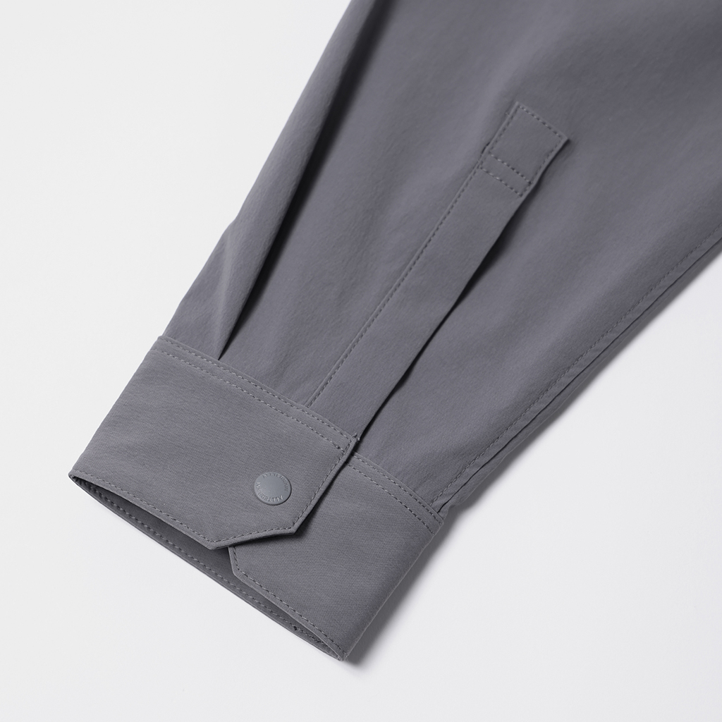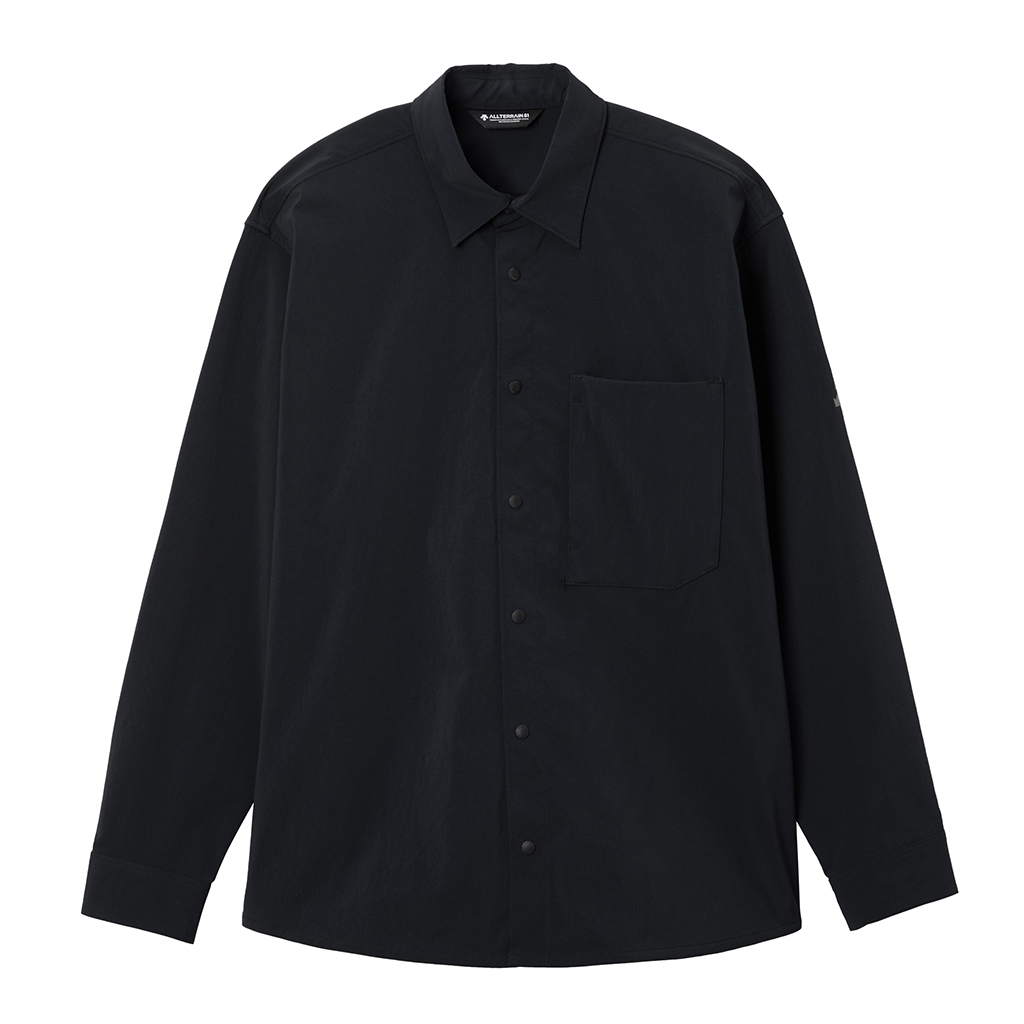 A long-sleeve shirt in CORDURA? developed by Dupont in the USA . It offers stretch for freedom of movement and moderate water repellency, which is achieved with a CO treatment, free from decomposition-resistant fluorine compounds. The front features a snap button closure. A patch pocket on the left chest has dual openings, on the top and inner vertical side, for convenient storage of small items. Suitable for a wide range of outdoor activities and everyday wear.