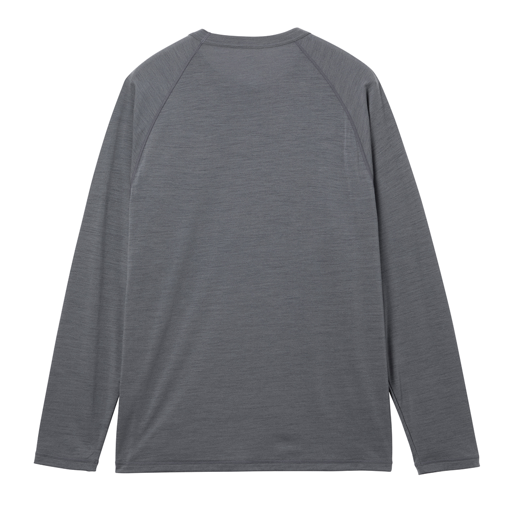 A long sleeve crew neck T-shirt in NIKKE AXIO? wool with a soft, smooth touch. The unique wool yarn is made using the IN-SPIRAL SPIN manufacturing process which wraps filaments inside the wool fiber bundle and intertwists them, maintaining the texture and deodorizing properties of wool while being resistant to sagging, even after washing. With a relaxed fit, it works well as an inner layer or standalone piece for outdoor and daily use.