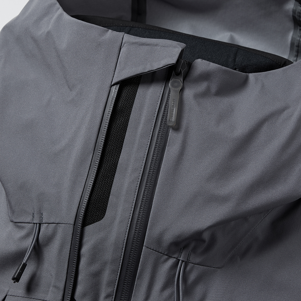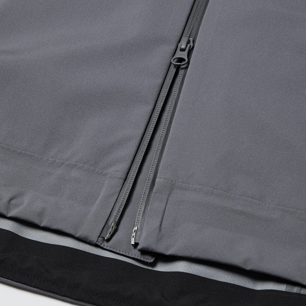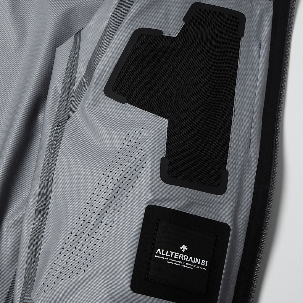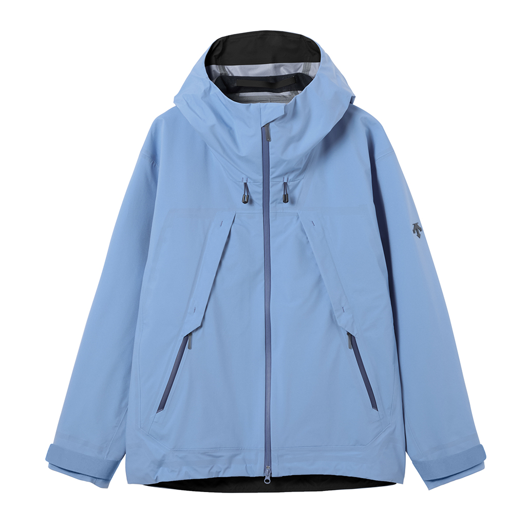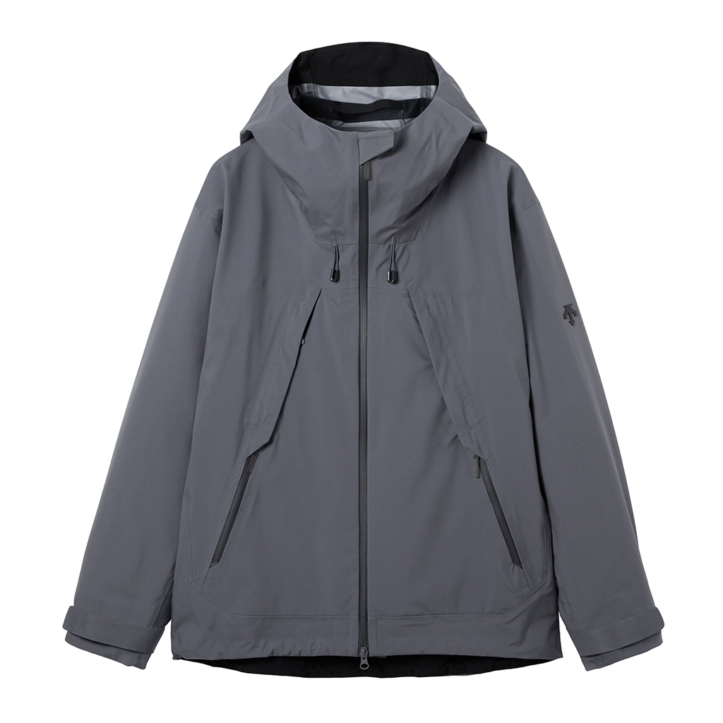 A 3-layer shell jacket in waterproof, breathable, windproof Dermizax. It features Descente’s proprietary dual-ventilation system with double zippers and double raschel fabric, to allow outside air in and to expel uncomfortable excess heat and moisture. There are four zippered pockets on the front left and right. Additional ventilation inside the garment is provided by double raschel fabric in some of the pocket pouches as well as strategically-placed ventilation and laser-cut holes. Mesh and laser-cut holes under the rear flap provide ventilation in the back of the jacket to prevent overheating. The hood has rubber spindles and stoppers for easy adjustment and the cuffs have a one-hand adjustment feature, allowing easy adjustment, even with gloves on. The hem is equipped with a Cohaesive? cord lock system, for quick and easy size adjustment. A soft, brushed tricot lining around the collar enhances comfort. The gusset pattern design from the underarms to the sleeves prevents the hem from riding up when arms are raised, offering greater comfort during physical activities. Suitable for all seasons in a wide range of environments, from outdoor activities to daily use.