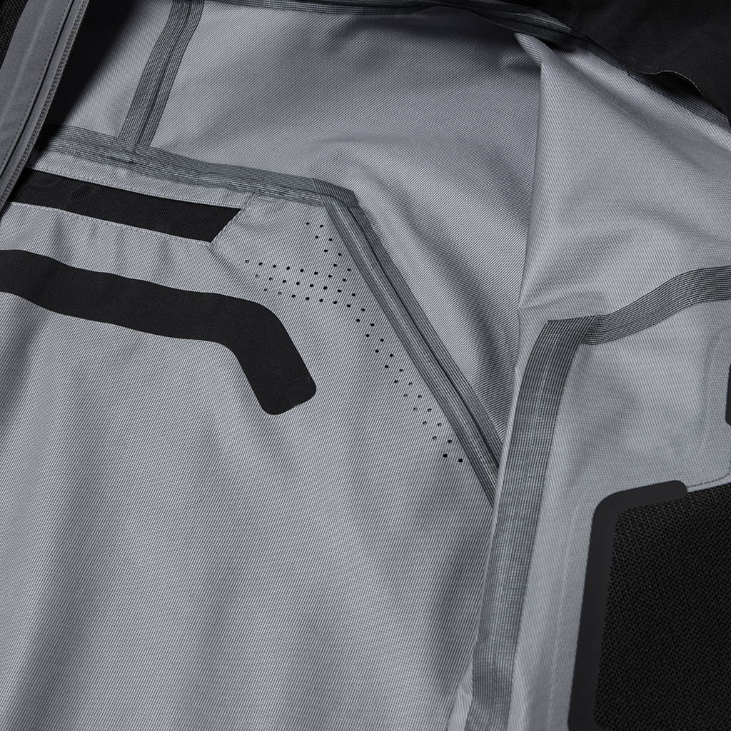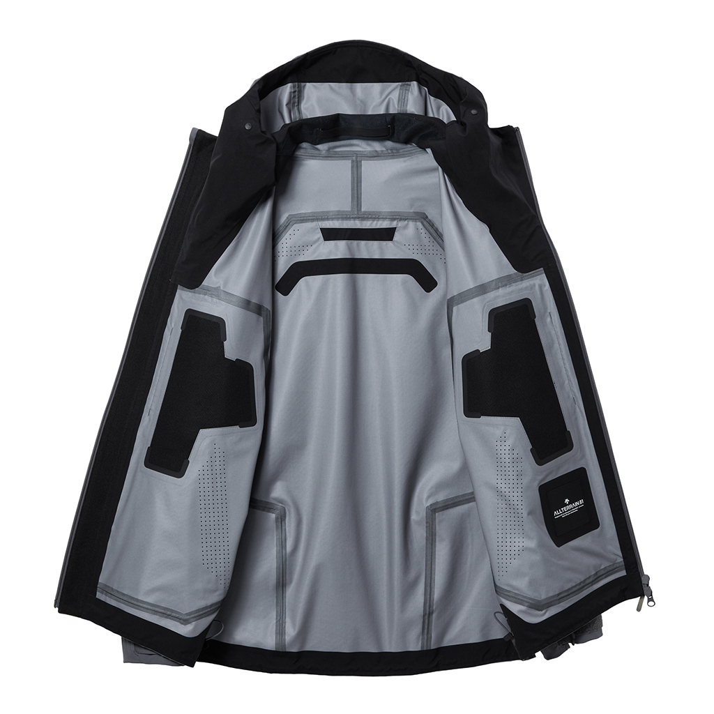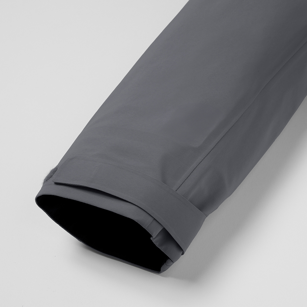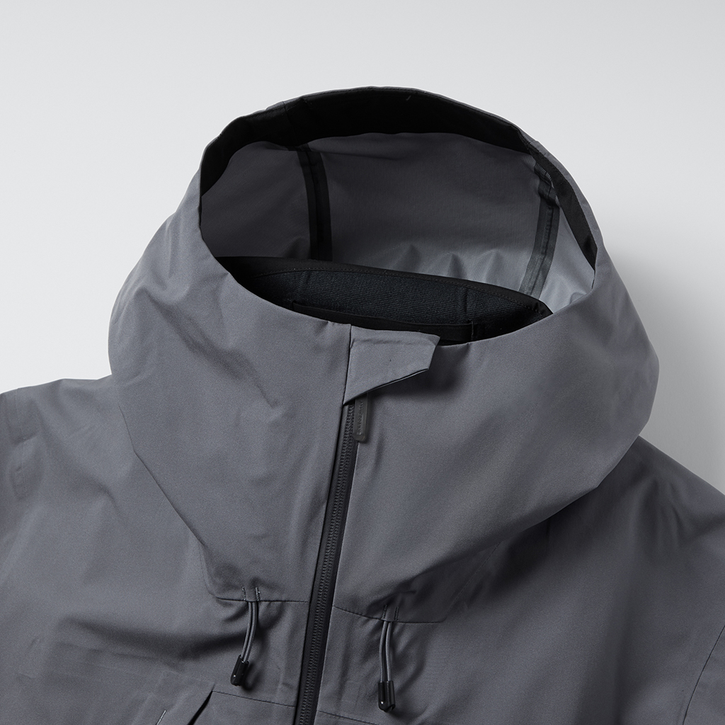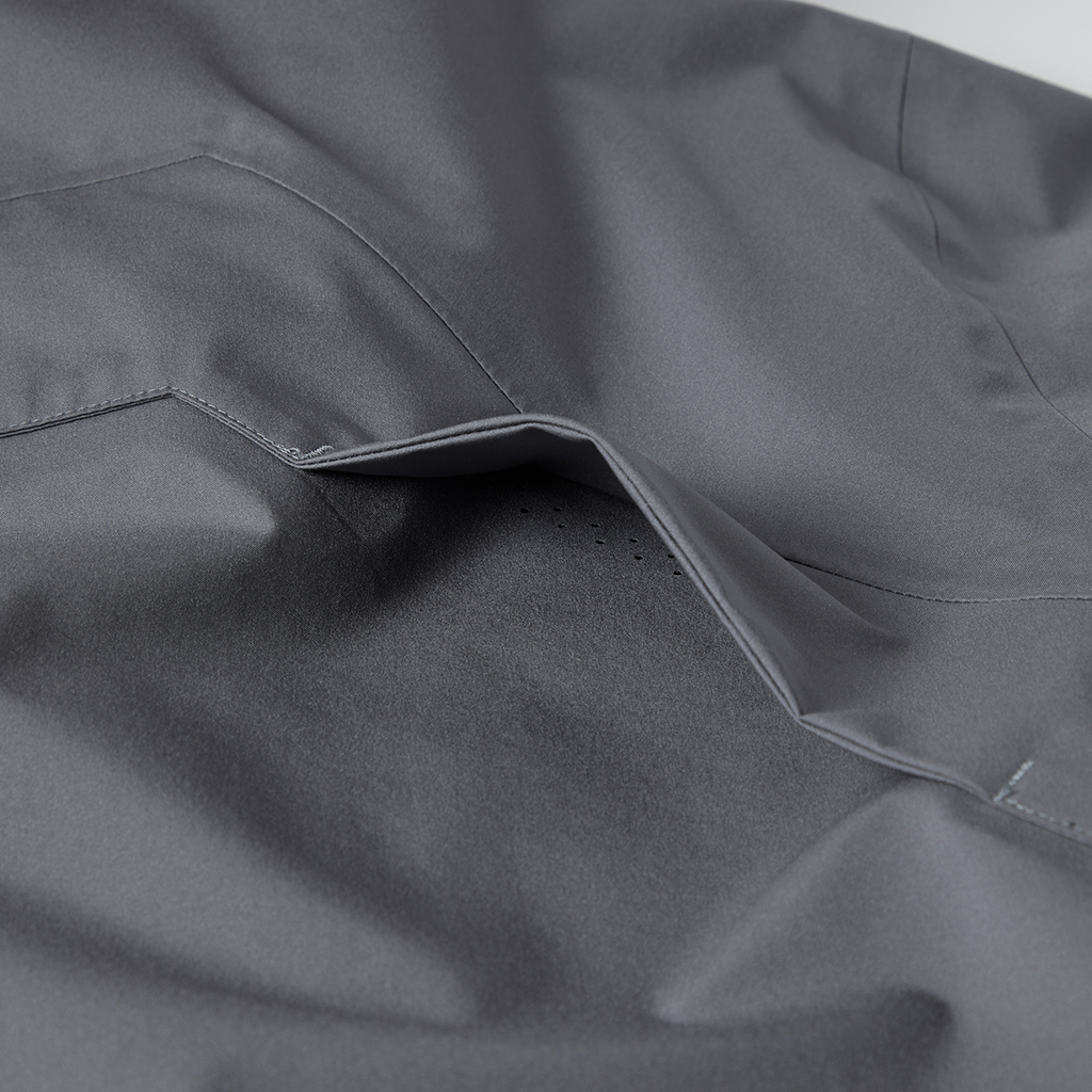 A 3-layer shell jacket in waterproof, breathable, windproof Dermizax. It features Descente’s proprietary dual-ventilation system with double zippers and double raschel fabric, to allow outside air in and to expel uncomfortable excess heat and moisture. There are four zippered pockets on the front left and right. Additional ventilation inside the garment is provided by double raschel fabric in some of the pocket pouches as well as strategically-placed ventilation and laser-cut holes. Mesh and laser-cut holes under the rear flap provide ventilation in the back of the jacket to prevent overheating. The hood has rubber spindles and stoppers for easy adjustment and the cuffs have a one-hand adjustment feature, allowing easy adjustment, even with gloves on. The hem is equipped with a Cohaesive? cord lock system, for quick and easy size adjustment. A soft, brushed tricot lining around the collar enhances comfort. The gusset pattern design from the underarms to the sleeves prevents the hem from riding up when arms are raised, offering greater comfort during physical activities. Suitable for all seasons in a wide range of environments, from outdoor activities to daily use.
