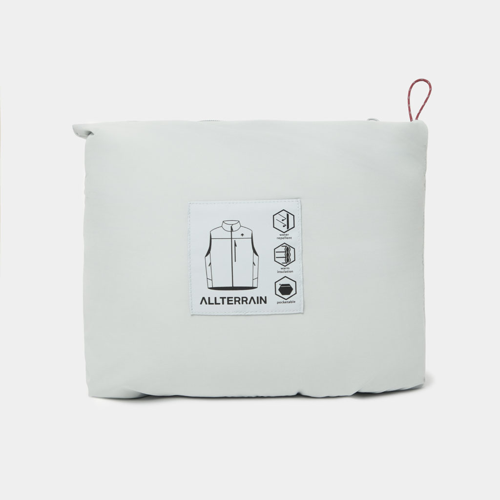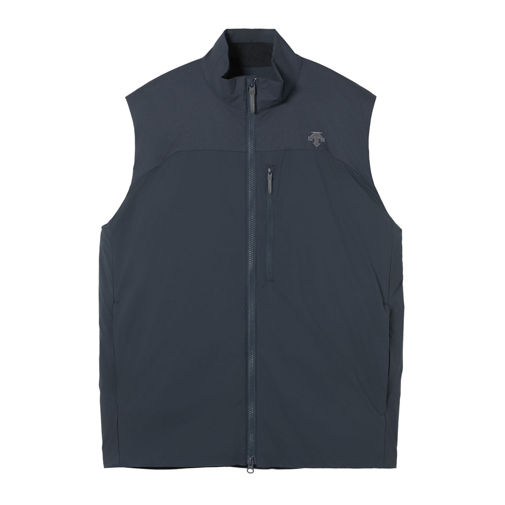 A lightweight insulated vest in supple nylon using DTY (Draw Textured Yarn), a specialty of Japan’s Hokuriku region. The insulation is 3DeFX(R), an advanced material with multiple intricately intertwined 3D spiral fibers that offers superior loft, warmth, stretch and breathability. The shoulders, where backpack harnesses tend to cause friction, are reinforced with a waterresistant twolayer ripstop shell fabric. The waterrepellent finish uses ecofriendly C0 technology, free of fluorinated compounds. It has three zippered pockets: two at the sides and one on the left chest, which doubles as a selfpacking pouch for portability. Versatile enough for both outdoor activities and everyday active wear.