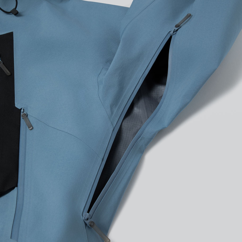 Featuring GORETEX PRO developed by W. L. Gore & Associates, the American company behind the promise GUARANTEED TO KEEP YOU DRY(R)this jacket leverages exceptionally durable product technology to deliver outstanding waterproof, windproof, and breathable performance under extreme and challenging conditions.Four zippered pockets are positioned on the front body, with gusseted chest pockets on both sides to enhance storage capacity. Pit zips run from the sides to underarms, allowing for effective ventilation and release of excess heat during intense activity.The cuffs utilize a onehand belt adjustment system, enabling easy operation even while wearing gloves. Both the hood and hem feature the Cohaesive(TM) cord lock system for fast, effortless adjustment and improved fit.Designed with a slightly relaxed silhouette for optimal layering with midlayers, this jacket also incorporates a gusseted pattern from underarm to sleeve for superior mobility?preventing the hem from riding up when raising the arms.A highperformance shell crafted to excel in rigorous outdoor environments.