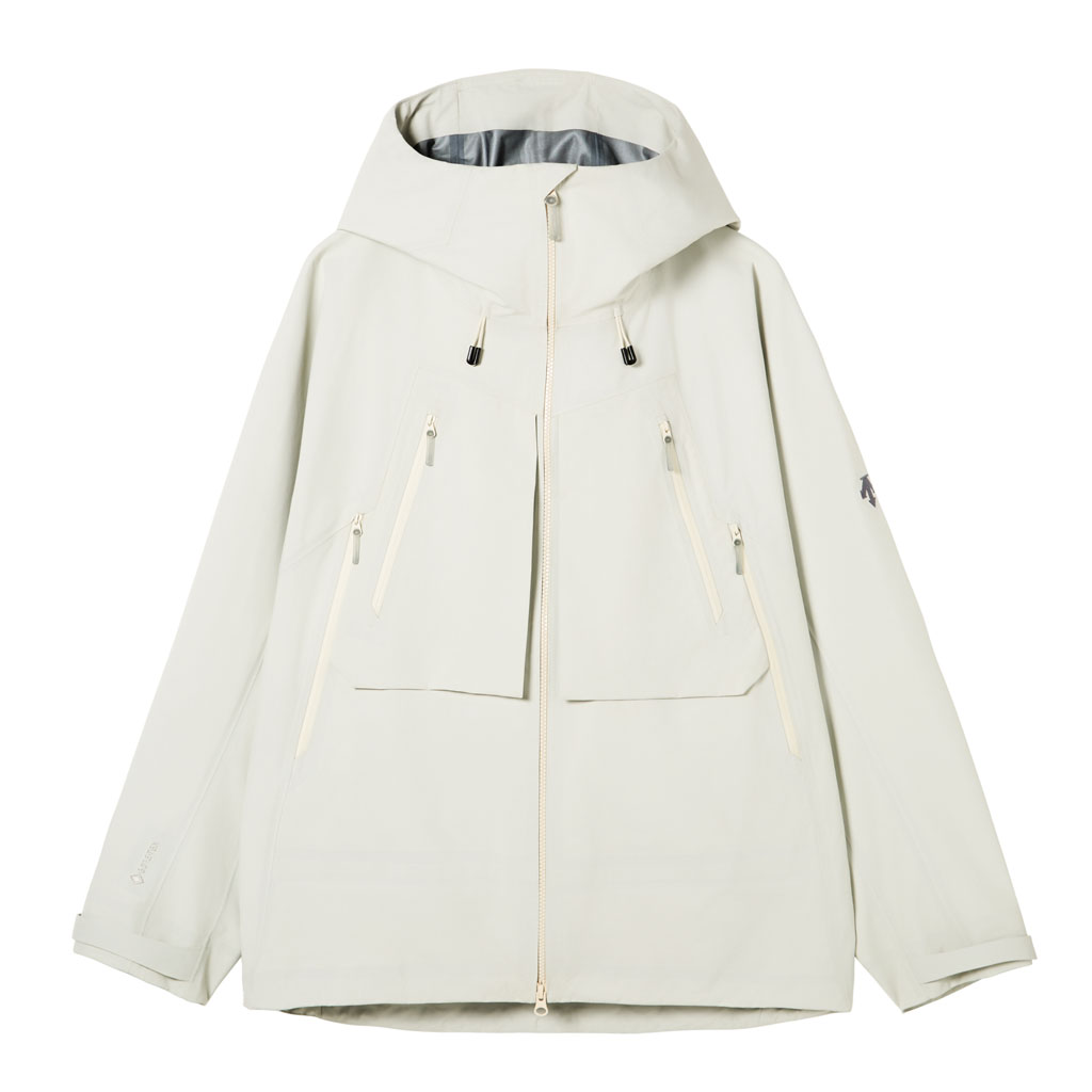 A shell jacket in GORETEX CKNIT TM, a waterresistant, breathable, and windproof material with a soft touch developed by W.L. Gore & Associates of the U.S., with its GUARANTEED TO KEEP YOU DRY(R) promise. The front has four zippered pockets and the two on the chest are gusseted to improve storage capacity. The cuffs have a onehand adjustment feature, allowing easy adjustment, even with gloves on. The hem is equipped with a Cohaesive TM cord lock system, for quick and easy size adjustment. A brushed tricot lining inside the collar enhances comfort. The generous silhouette accommodates thicker midlayer pieces and the gusset pattern design from the underarms to the sleeves prevents the hem from riding up when arms are raised, offering greater comfort during physical activities. Now in a reengineered pattern, it is lighter than previous models. Darts at the sides of the hood increase ear space and reduce stress during wear. With underarm pit zip ventilation, it is suitable for all seasons in a wide range of environments, from outdoor activities to daily use.