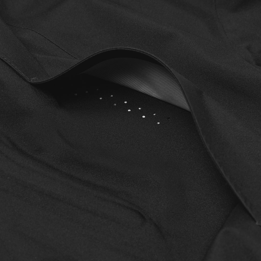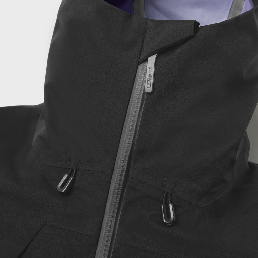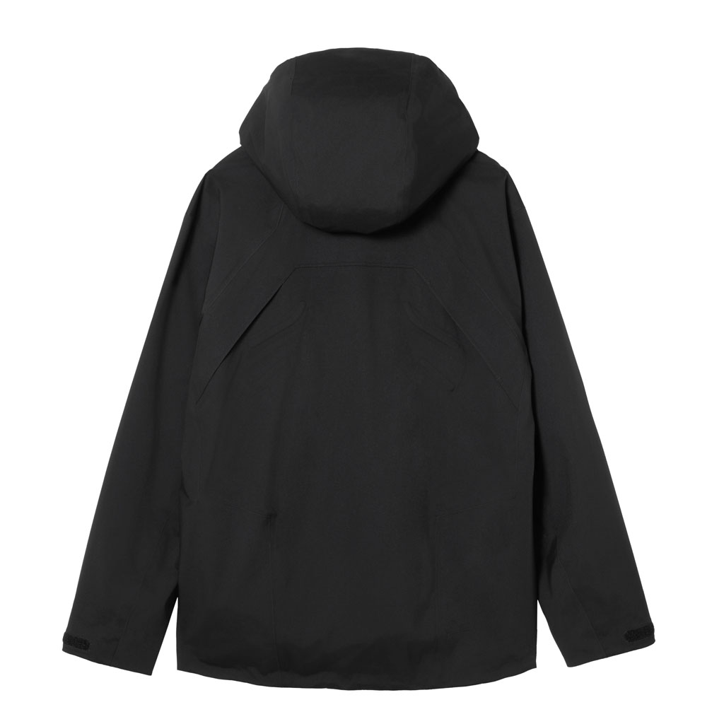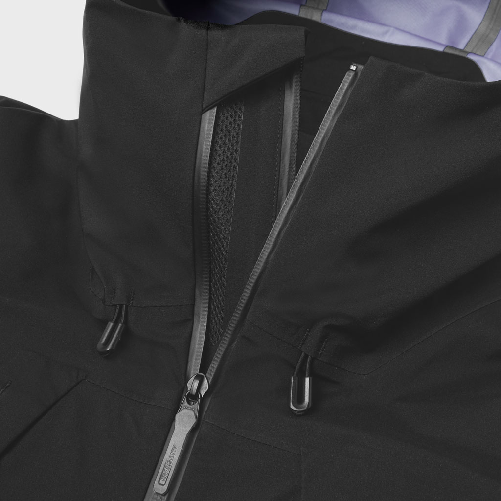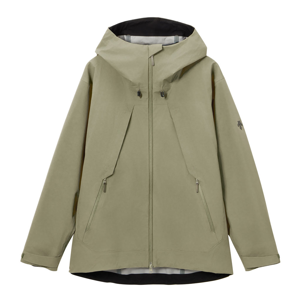 A shell jacket in waterproof, windproof and breathable 3L Dermizax(R). The tricot lining has been customdyed purple for visual appeal. It features Descente’s unique Dual Ventilation System with double raschel mesh between two parallel zippers to regulate internal temperature by allowing outside air in. The front has four zippered pockets with strategically placed double raschel mesh and lasercut holes to enhance breathability. On the back, laser vents and 3D spacer parts help air circulate and maintain comfort, especially when wearing a backpack. The hood is equipped with drawcords and stoppers. The cuffs have a onehand adjustment feature, allowing easy adjustment, even with gloves on. The hem is equipped with a Cohaesive TM cord lock system, for quicker and easier size adjustment than before. A brushed tricot lining inside the collar enhances comfort. The gusset pattern design from the underarms to the sleeves prevents the hem from riding up when arms are raised, offering greater comfort during physical activities. Equipped for allseason performance, from the city to the outdoors.