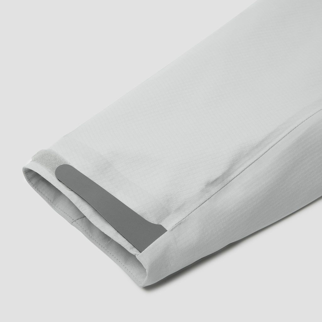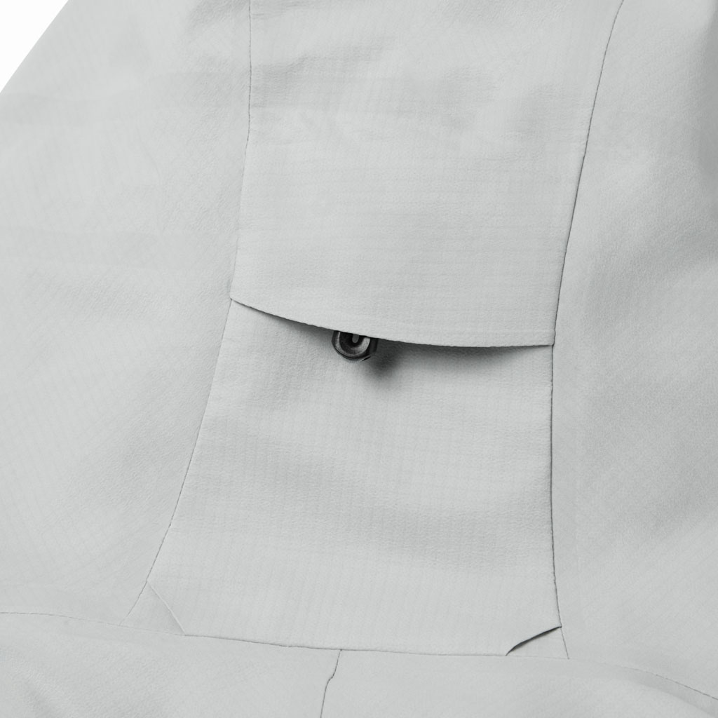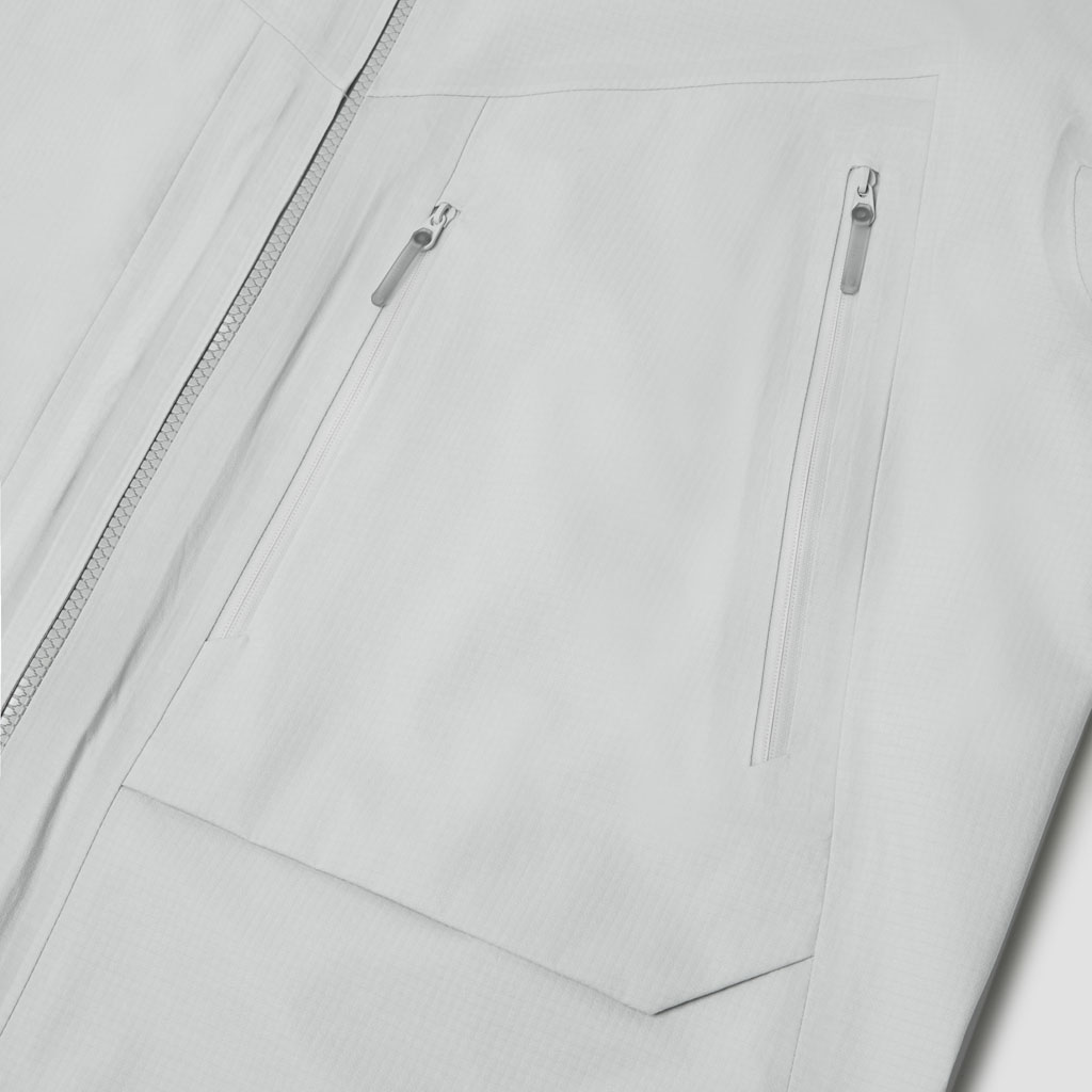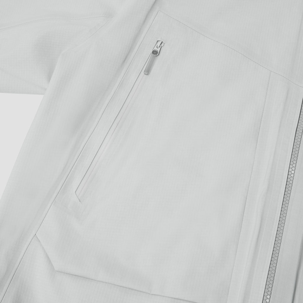 A 3L shell jacket with a 60gauge circular knit nylon lining made on a unique machine found only in Fukui, Japan. The fabric combines abrasion resistance with a premium feel, plus waterproof, breathable and windproof performance. The front has three zippered pockets, two of which are gusseted for added capacity. The centre pocket is lined with a soft brushed material ideal for storing sunglasses.