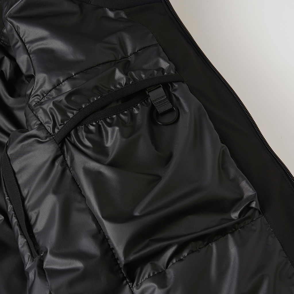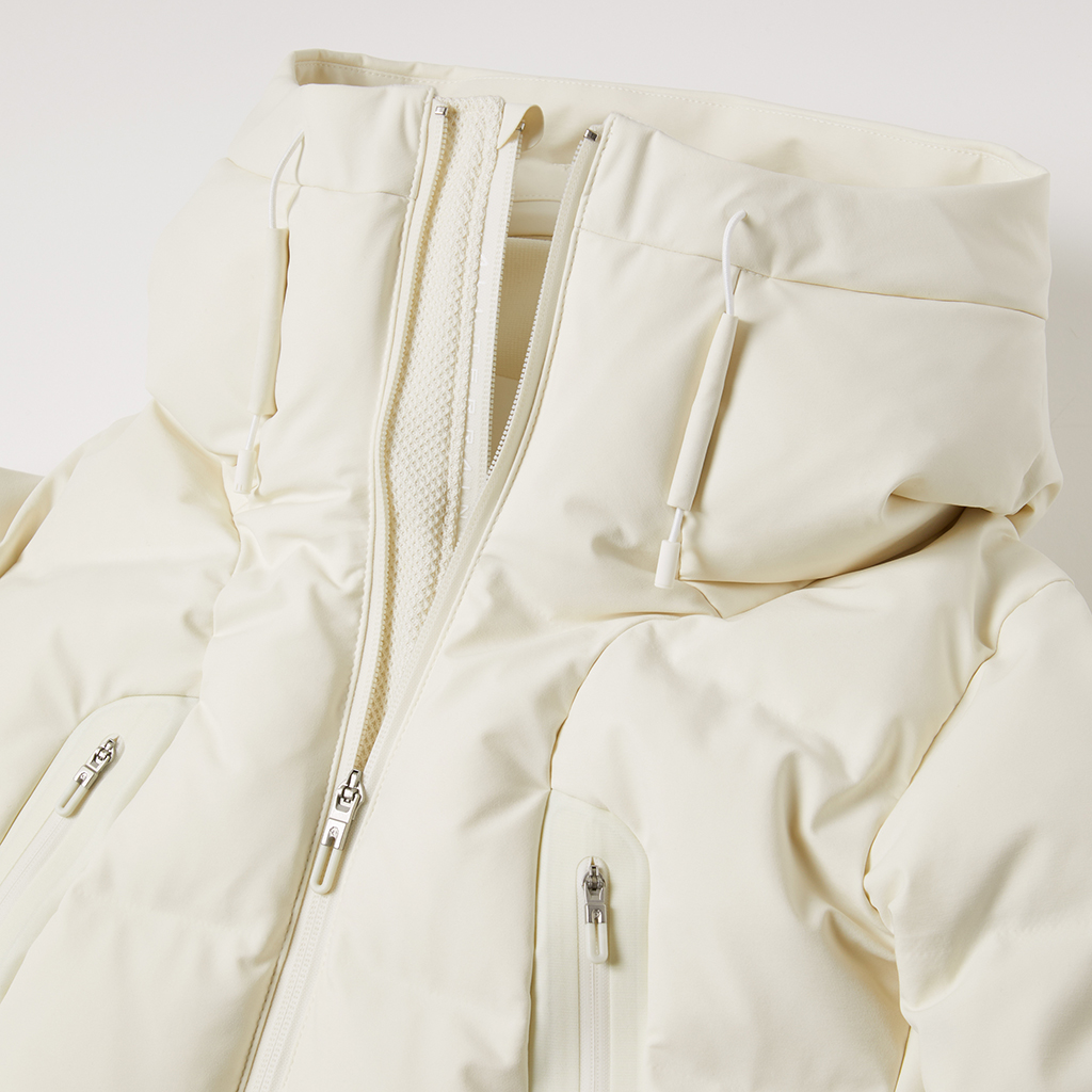Mountaineer-L is the high-spec Mizusawa Down jacket with non-stitch, heat-bonded quilting and seam taping for high water resistance. The jacket is equipped with the inner chest pockets on both sides and a detachable key chain for more storage and convenience. It features a Parahood System ※1 for compact hood storage and prevention of water pooling on the hood in bad weather. The front Dual-Zip Ventilation System allows fresh outside air to enter the jacket through a mesh panel between the zippers to clear uncomfortable heat and humidity. The lining uses warmth-retaining HEAT NAVI? to keep the inside of the garment at a comfortable temperature. In addition, it uses DOWNPASS ※2 certified traceable down, enabling the tracking of the entire feather procurement process through serial numbers.※1 The Parahood System has a conveniently located Parazip to open and close the hood quickly and easily. ※2 DOWNPASS e.V (Germany) is a certification process guaranteeing down feathers are ethically sourced and come from tightly controlled and traceable supply chains, ensuring both animal protection and the maintenance of highest quality feather standards.
