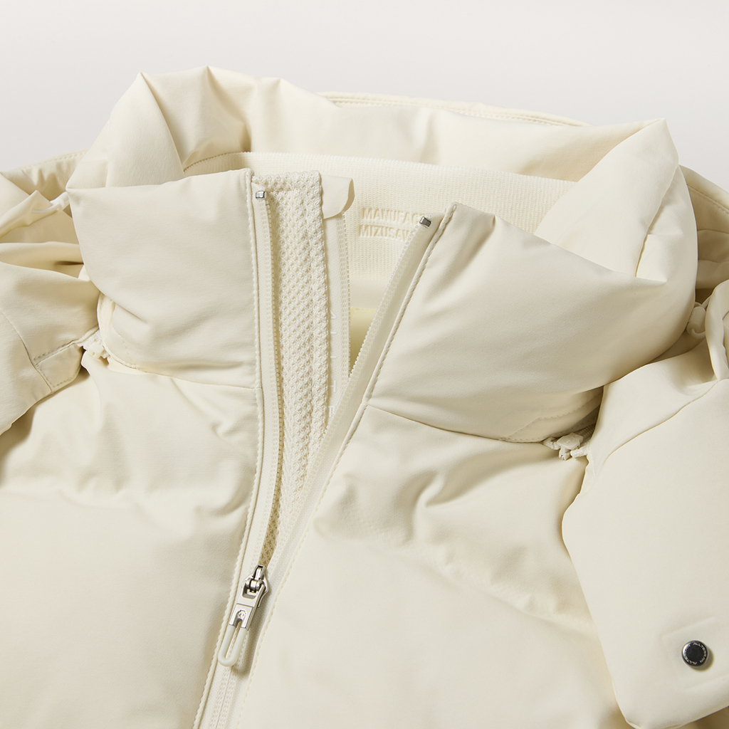 Anchor has been a long-selling Mizusawa Down jacket since the first collection with non-stitch, heat-bonded quilting and seam taping for high water resistance. The jacket is equipped with the inner chest pockets on both sides and a detachable key chain for more storage and convenience. The front Dual-Zip Ventilation System allows fresh outside air to enter the jacket through a mesh panel between the zippers to clear uncomfortable heat and humidity. The outer fabric is 4-way Stretch DERMIZAX? MICRO STRETCH and the lining uses warmth-retaining HEAT NAVI?, which converts light into heat. In addition, it uses DOWNPASS ※1 certified traceable down, enabling the tracking of the entire feather procurement process through serial numbers.※1 DOWNPASS e.V (Germany) is a certification process guaranteeing down feathers are ethically sourced and come from tightly controlled and traceable supply chains, ensuring both animal protection and the maintenance of highest quality feather standards.