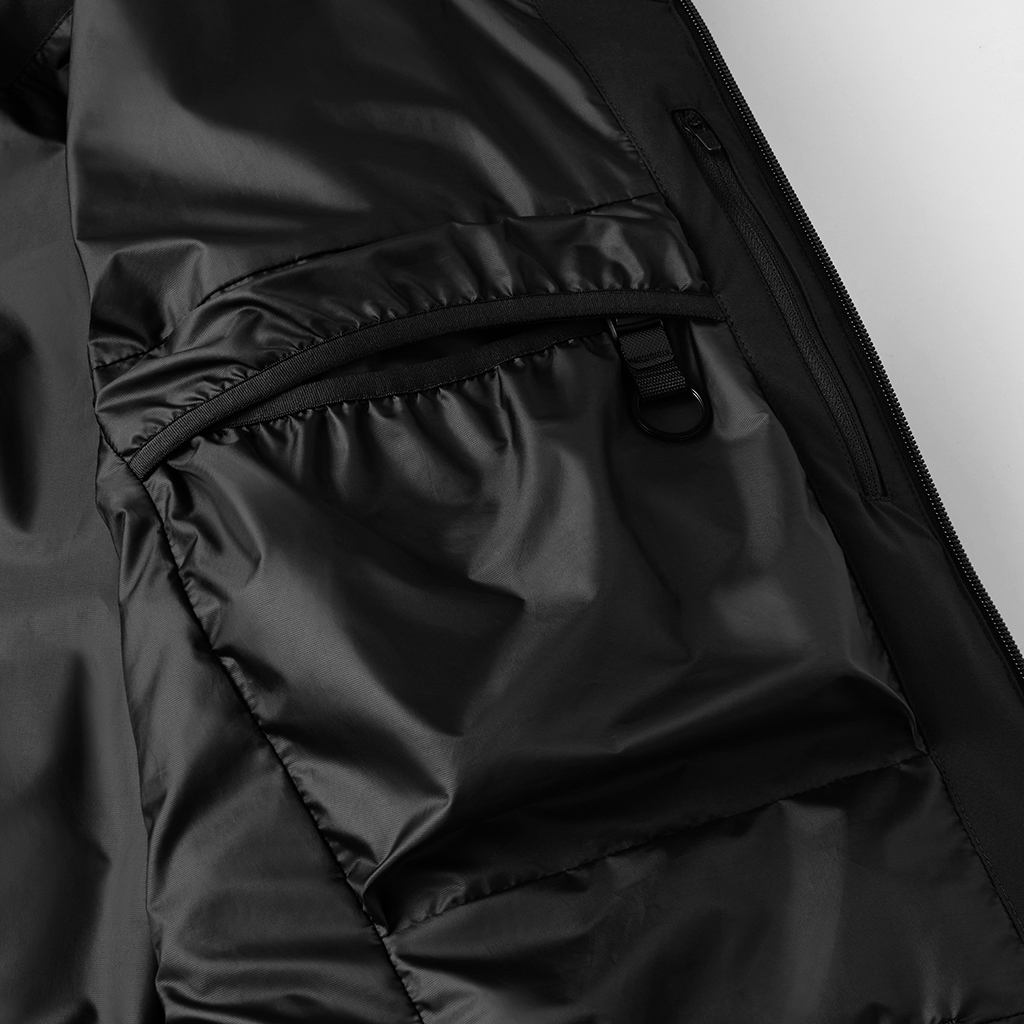 An oversized model of Mountaineer, the high-spec Mizusawa Down jacket with non-stitch, heat-bonded quilting and seam taping for high water resistance. The jacket is equipped with the inner chest pockets on both sides and a detachable key chain for more storage and convenience. It features a Parahood System ※1 for compact hood storage and prevention of water pooling on the hood in bad weather. The front Dual-Zip Ventilation System allows fresh outside air to enter the jacket through a mesh panel between the zippers to clear uncomfortable heat and humidity. The lining uses warmth-retaining HEAT NAVI? to keep the inside of the garment at a comfortable temperature. In addition, it uses DOWNPASS ※2 certified traceable down, enabling the tracking of the entire feather procurement process through serial numbers.※1 The Parahood System has a conveniently located Parazip to open and close the hood quickly and easily. ※2 DOWNPASS e.V (Germany) is a certification process guaranteeing down feathers are ethically sourced and come from tightly controlled and traceable supply chains, ensuring both animal protection and the maintenance of highest quality feather standards.