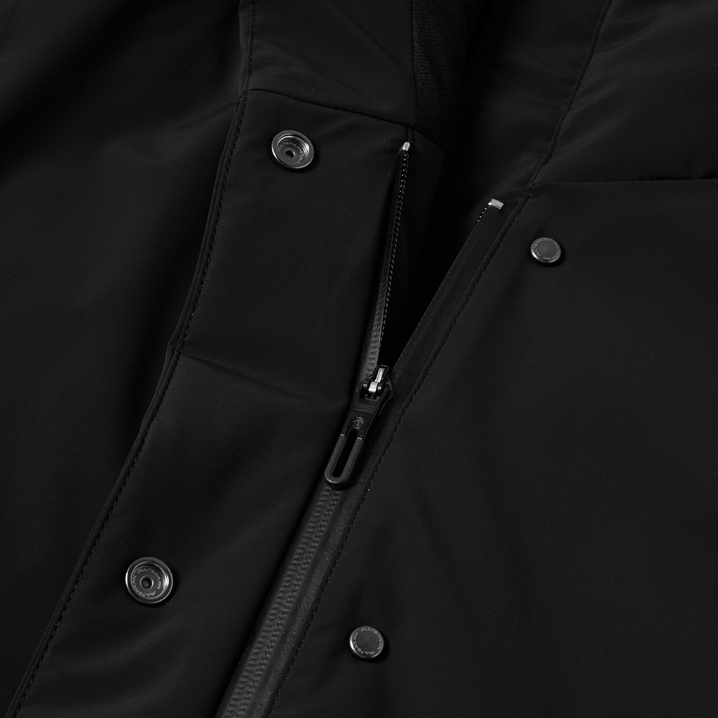 The INV-03L is a down coat with a stand collar in the Mizusawa Down INVISIBLE series. This series expresses a more urban, minimalist design, continuing the high waterproof performance while concealing heat-bonded, non-quilt processing and other details inside the garment. The subtly rounded cocoon silhouette adds a modern, feminine balance. The mid-length cut works well with skirts and pants, offering versatile styling options. This lightweight model uses about 70% of the down density of previous models, enhancing ease of use and comfort. The outer fabric is waterproof, breathable DERMIZAX? FLEXILE MATTE 4WAY STRETCH, and the lining incorporates HEAT NAVI? to convert light into heat. It comes with a matching down scarf, making it suitable for a variety of business and casual settings. In addition, it uses DOWNPASS-certified traceable down※1, enabling the strict tracking of the entire feather procurement process through serial numbers.※1 DOWNPASS e.V (Germany) is a certification process guaranteeing down feathers are ethically sourced and come from tightly controlled and traceable supply chains, ensuring both animal protection and the maintenance of highest quality feather standards