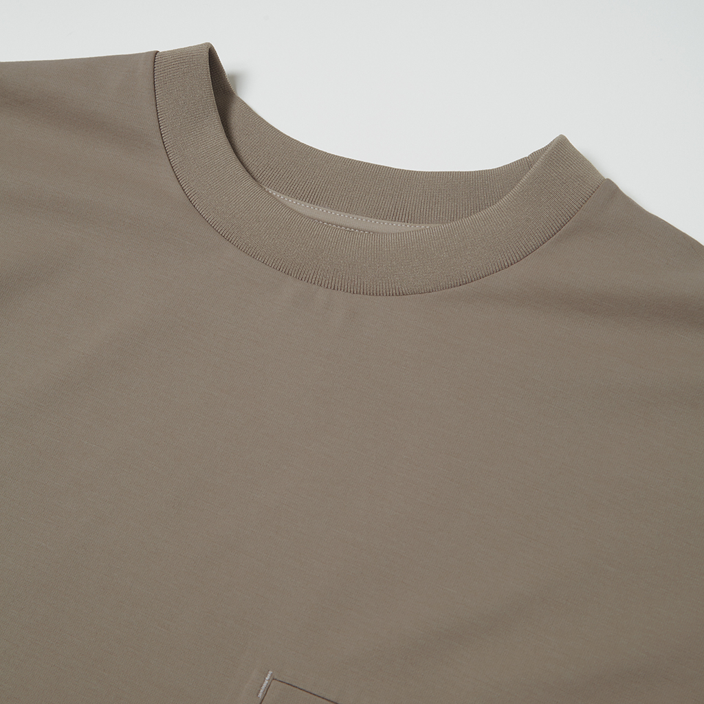 A T-shirt with a cotton-like texture, in full-dull micro-spun stretch, quick wicking, quick drying yarn. Ultrasonic welding and heat bonding create a seamless interior and protect the fabric’s natural stretch.The minimalist, streamlined design maximizes comfort.