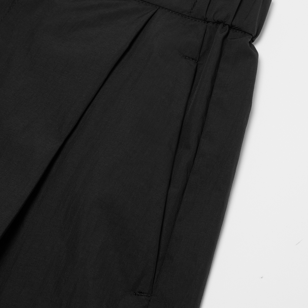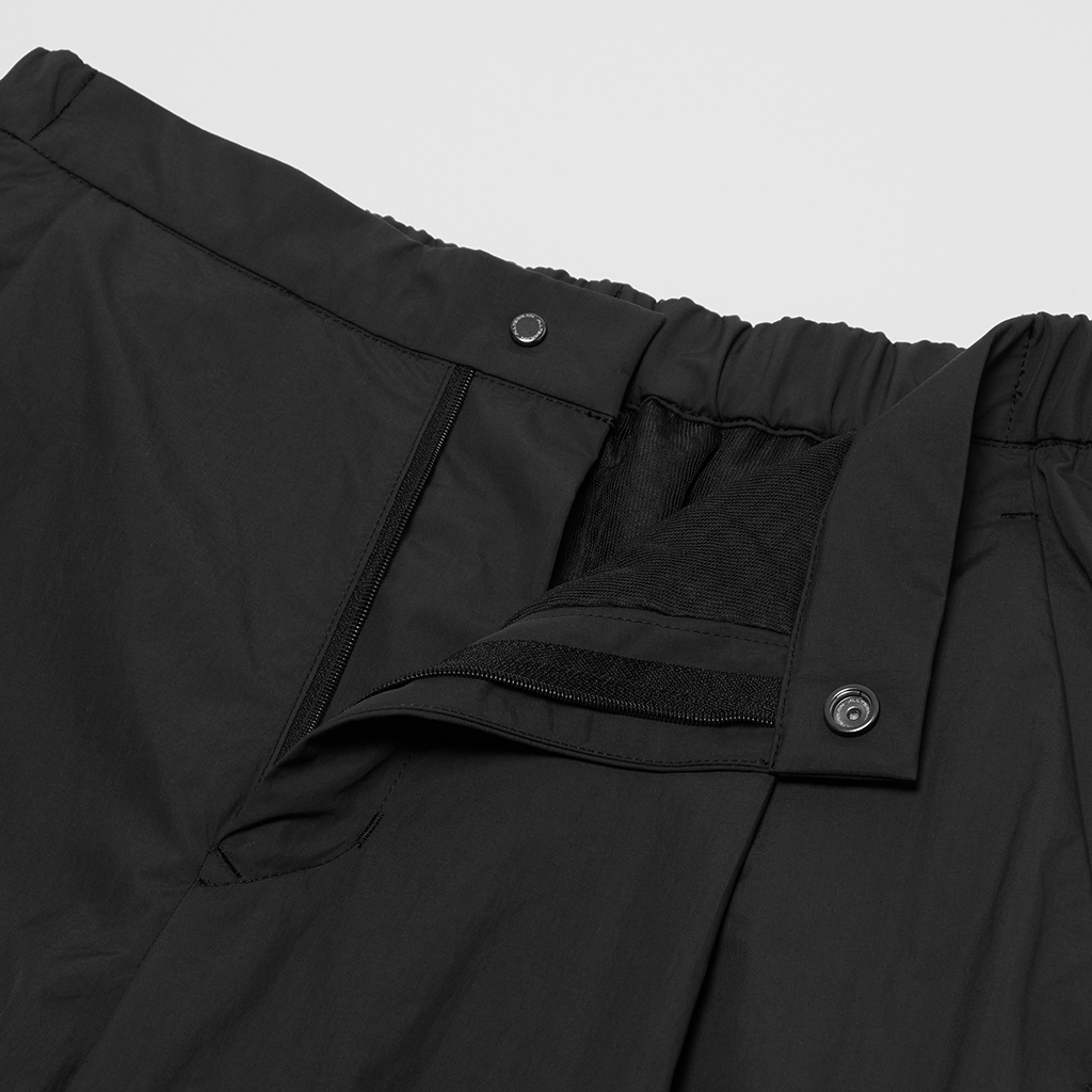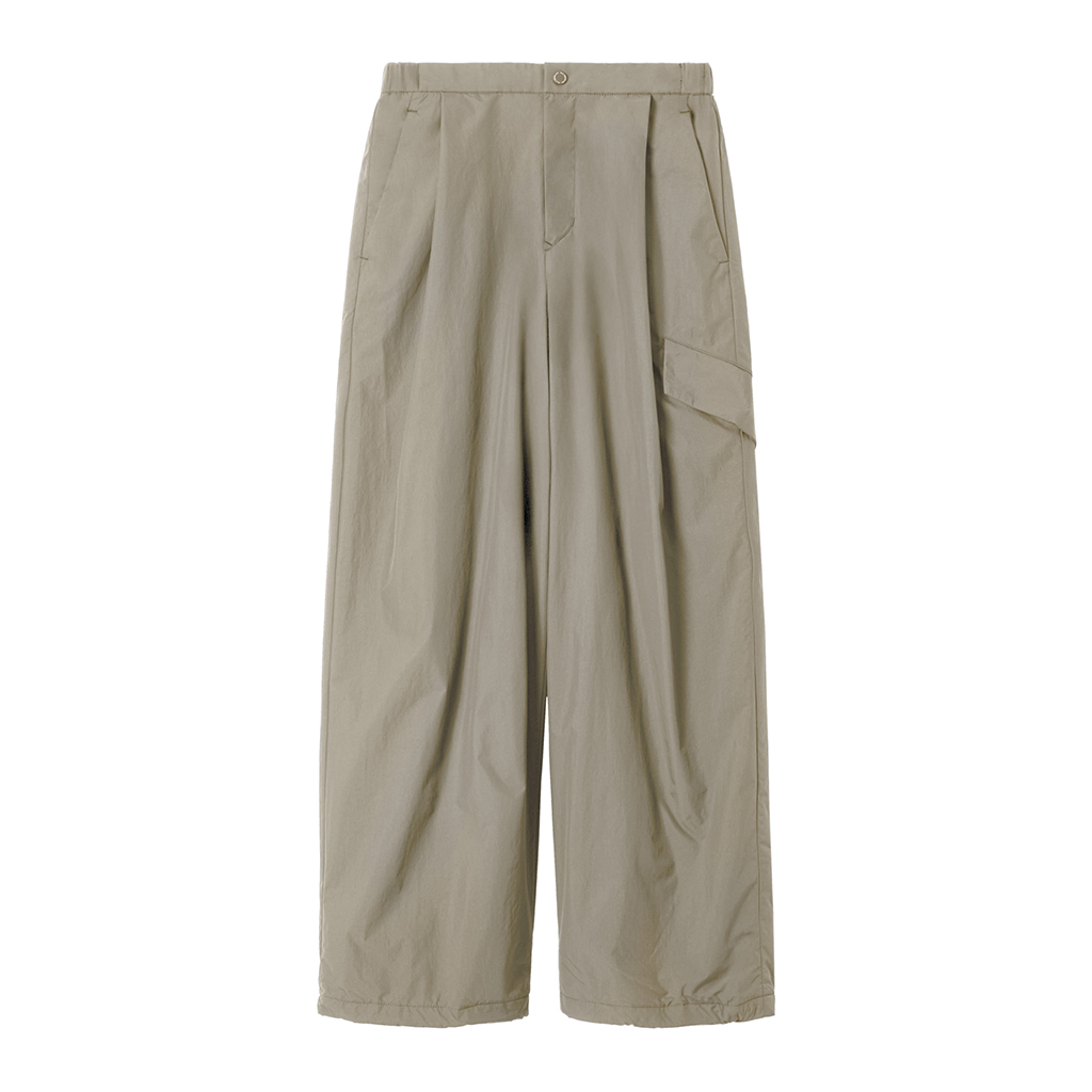 Lightweight pants in a soft, fabric with excellent stretch and water-repellency. The waistband features elastic at the back, keeping a sleek, stylish appearance from the front. Front tucks and a relaxed silhouette provide flexibility, and drawstrings at the hems allows for easy adjustment of the styling for different looks. Paired with a T-shirt these pants are ideal for casual occasions.