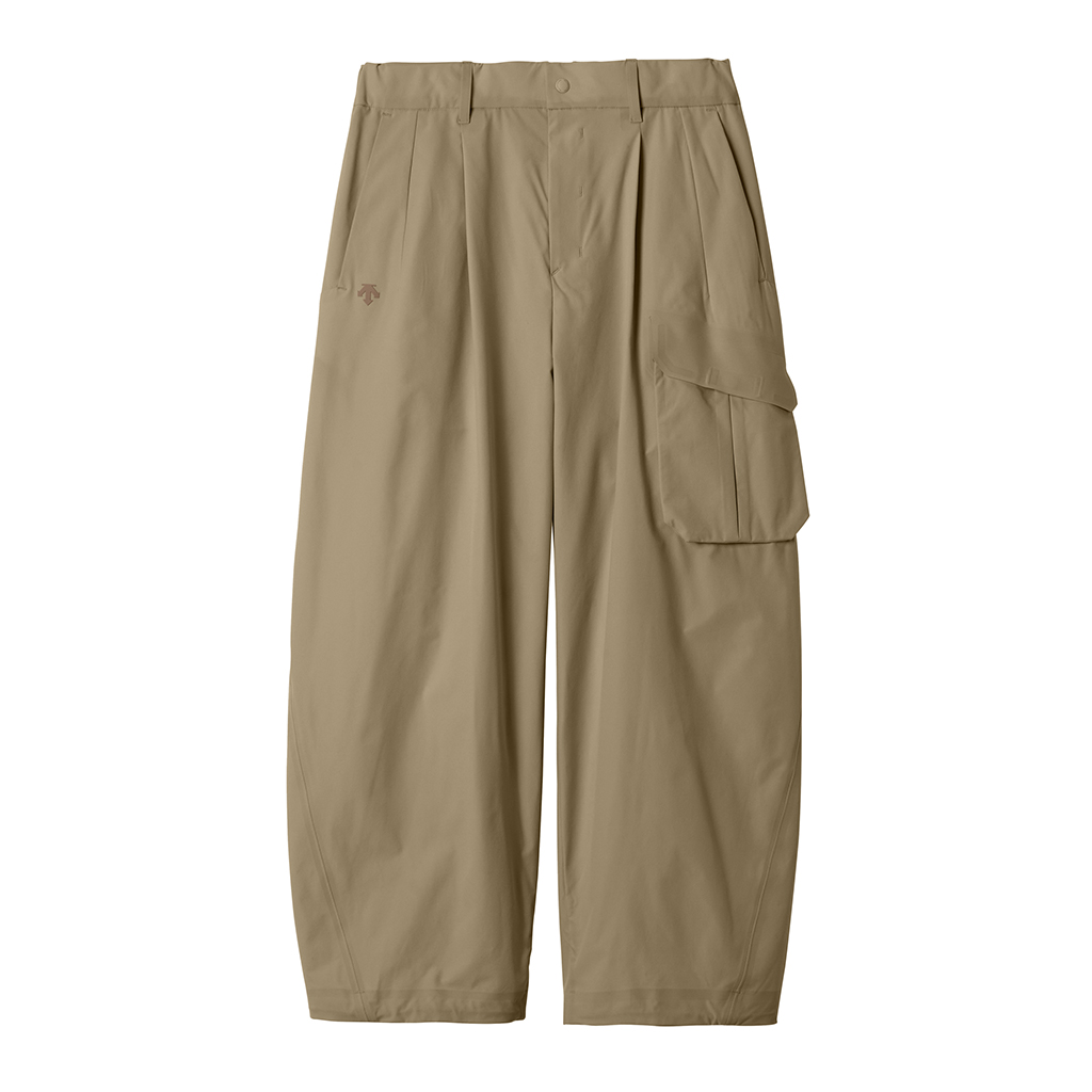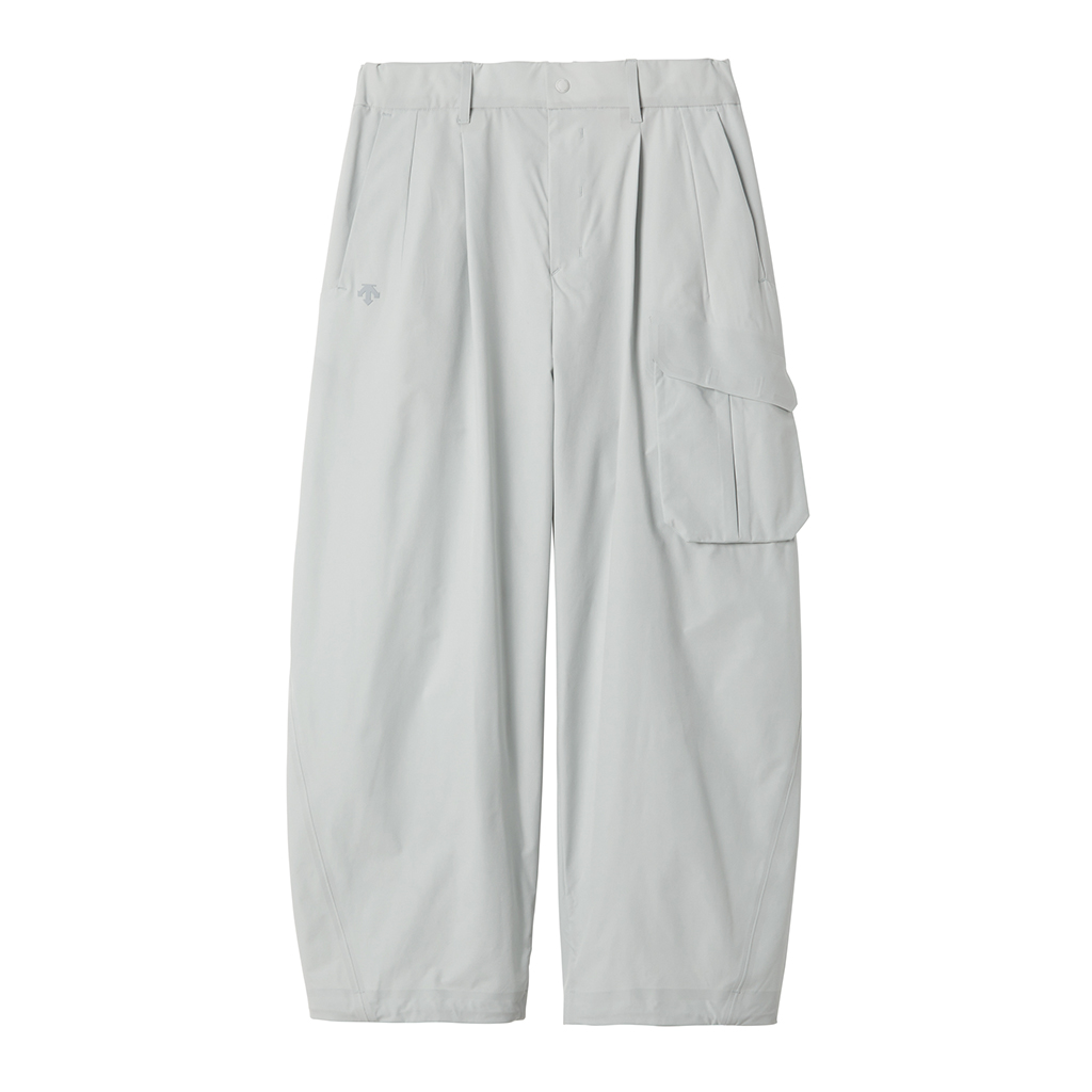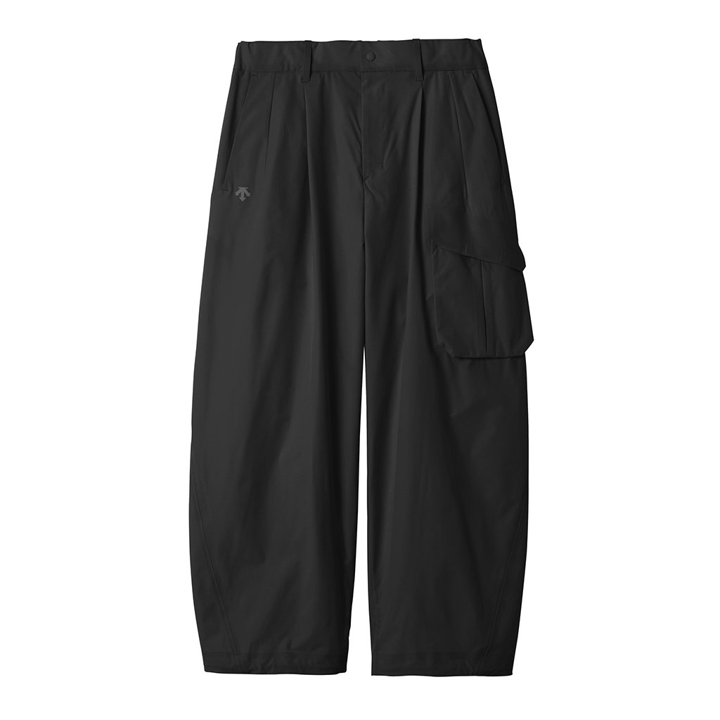 Soft, cargo pants with excellent stretch and water repellency. The relaxed silhouette creates an airy, comfortable fit. Ultrasonic welding and heat bonding create a seamless interior and ensure the stretch is unimpeded. The minimalist aesthetic offers styling options for both business and casual settings.