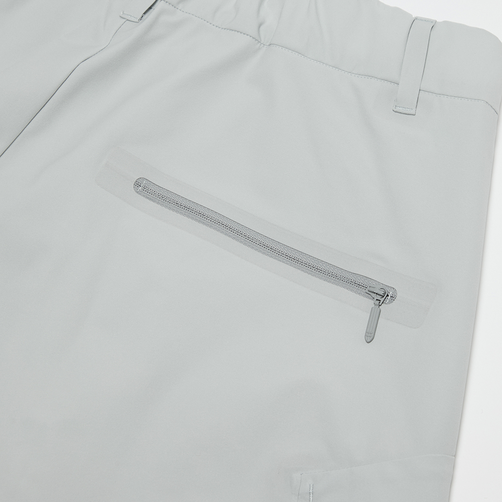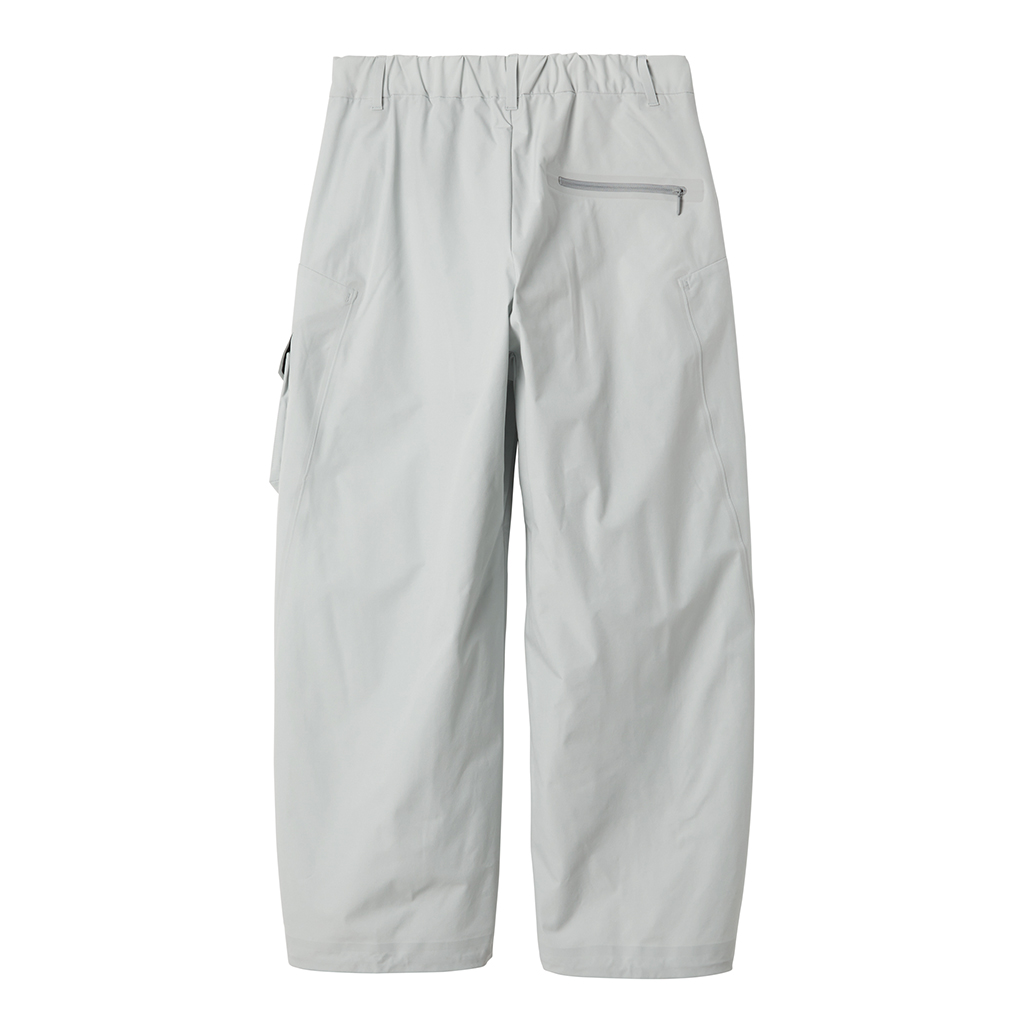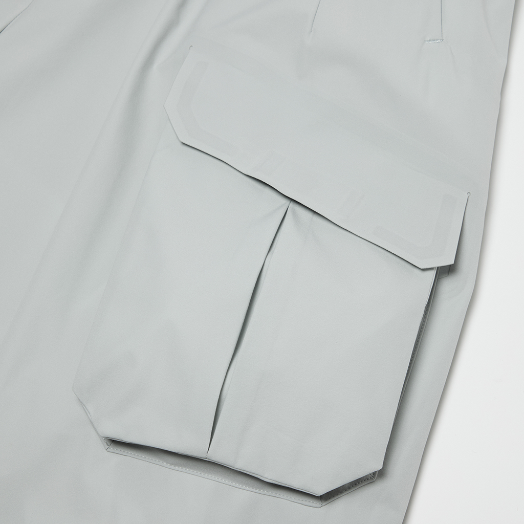 Soft, cargo pants with excellent stretch and water repellency. The relaxed silhouette creates an airy, comfortable fit. Ultrasonic welding and heat bonding create a seamless interior and ensure the stretch is unimpeded. The minimalist aesthetic offers styling options for both business and casual settings.