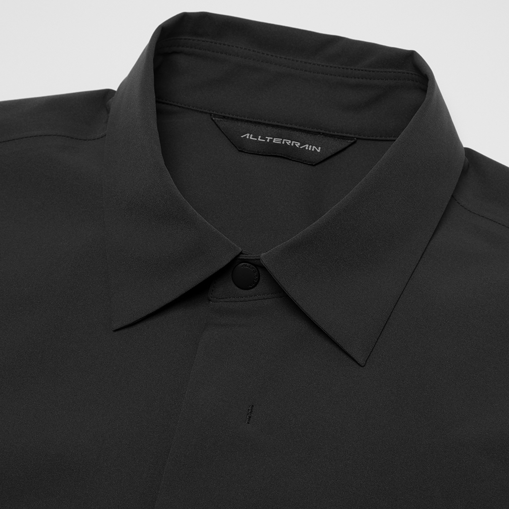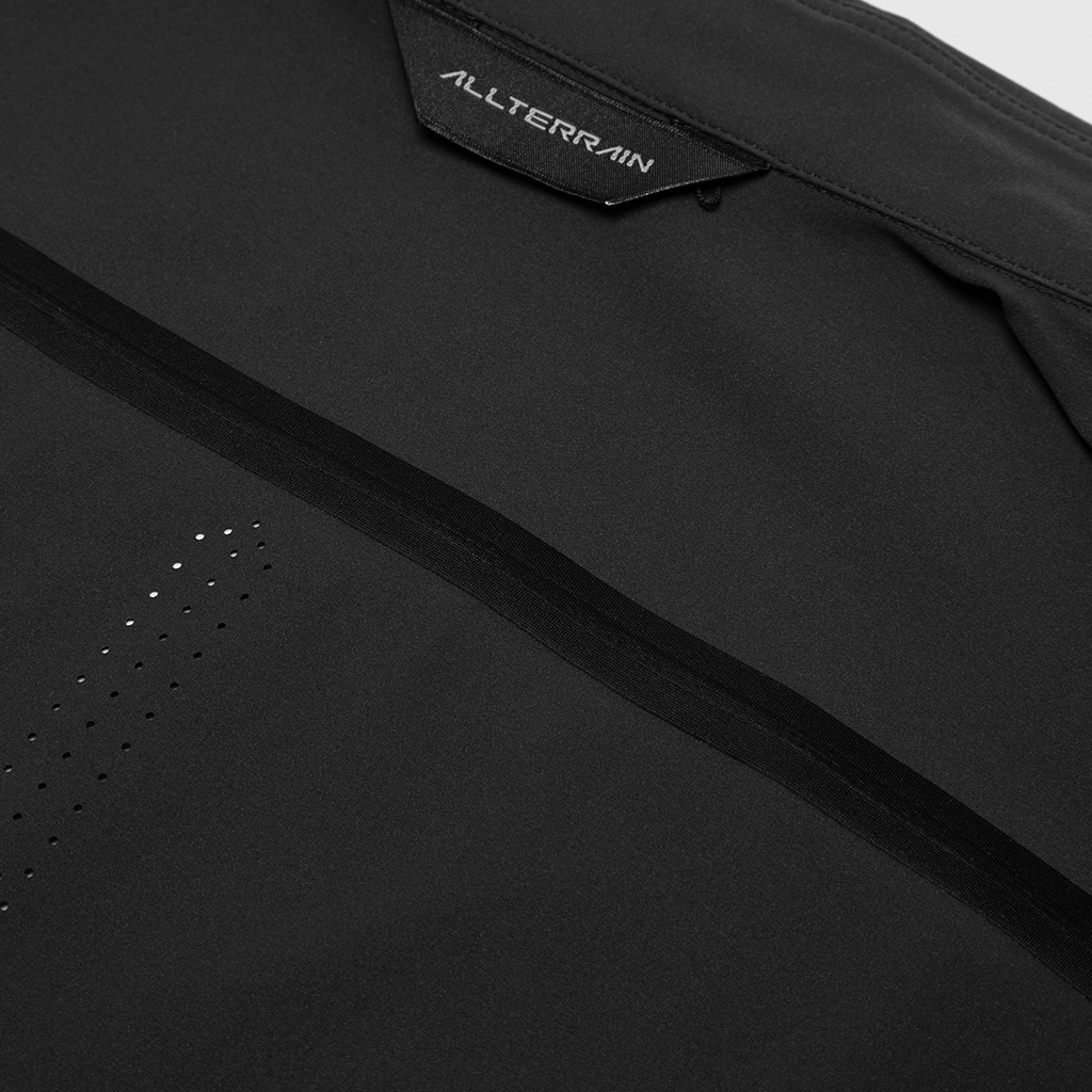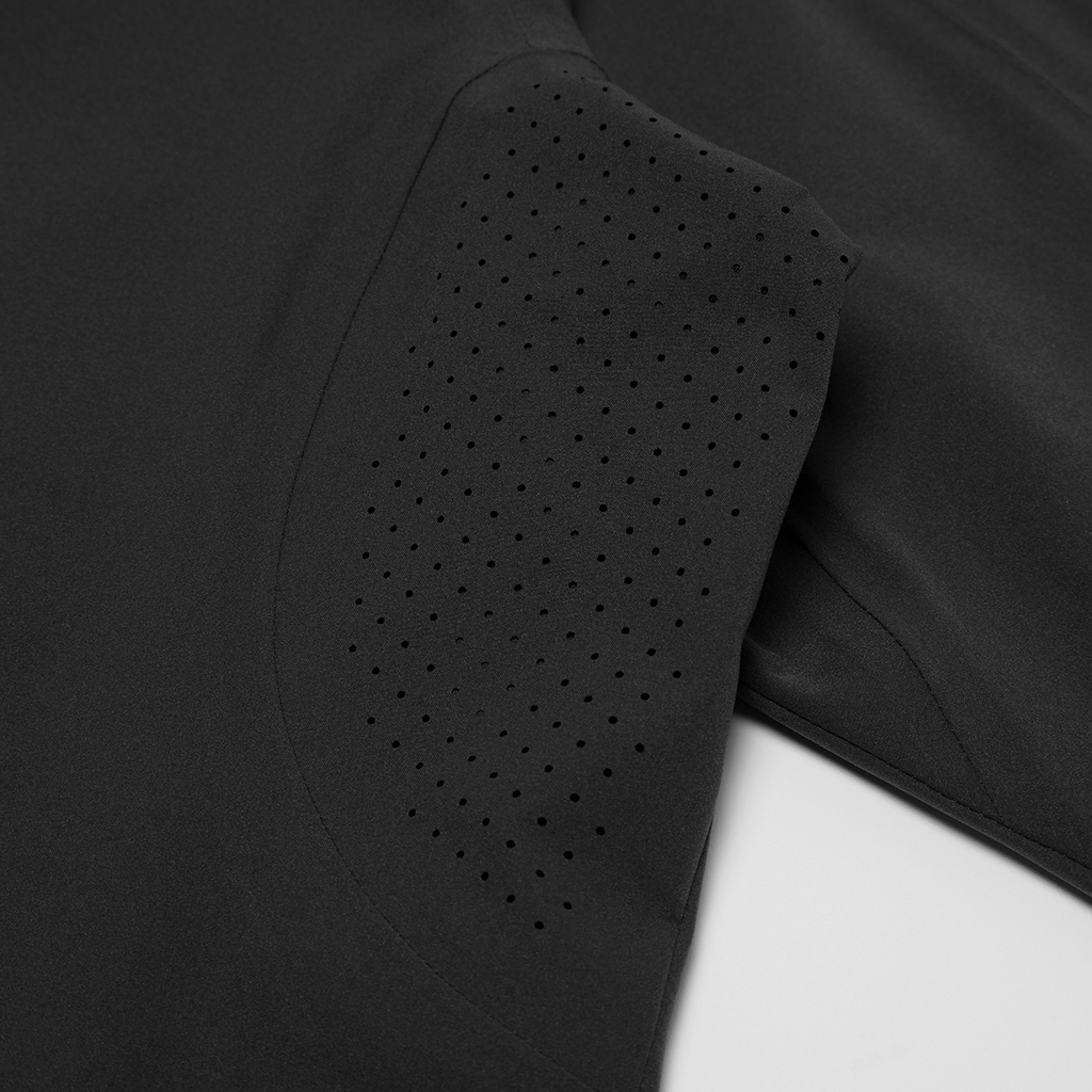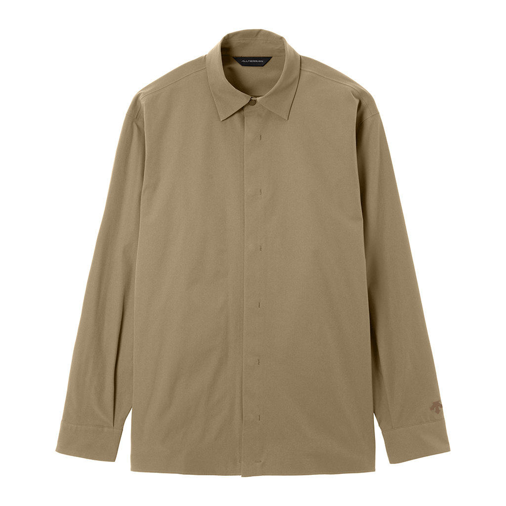 A soft long sleeve T-shirt with excellent stretch and water repellency. The relaxed silhouette creates an airy, comfortable fit. Ultrasonic welding and heat bonding create a seamless interior and ensure the stretch is unimpeded. Its minimalist aesthetic offers styling options for both business and casual settings.