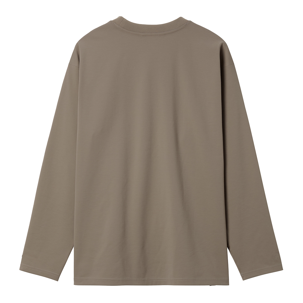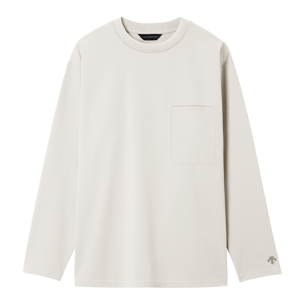 A long sleeve T-shirt with a cotton-like texture, in full-dull micro-spun stretch, quick wicking, quick drying yarn. Ultrasonic welding and heat bonding create a seamless interior and protect the fabric’s natural stretch.The minimalist, streamlined design maximizes comfort.