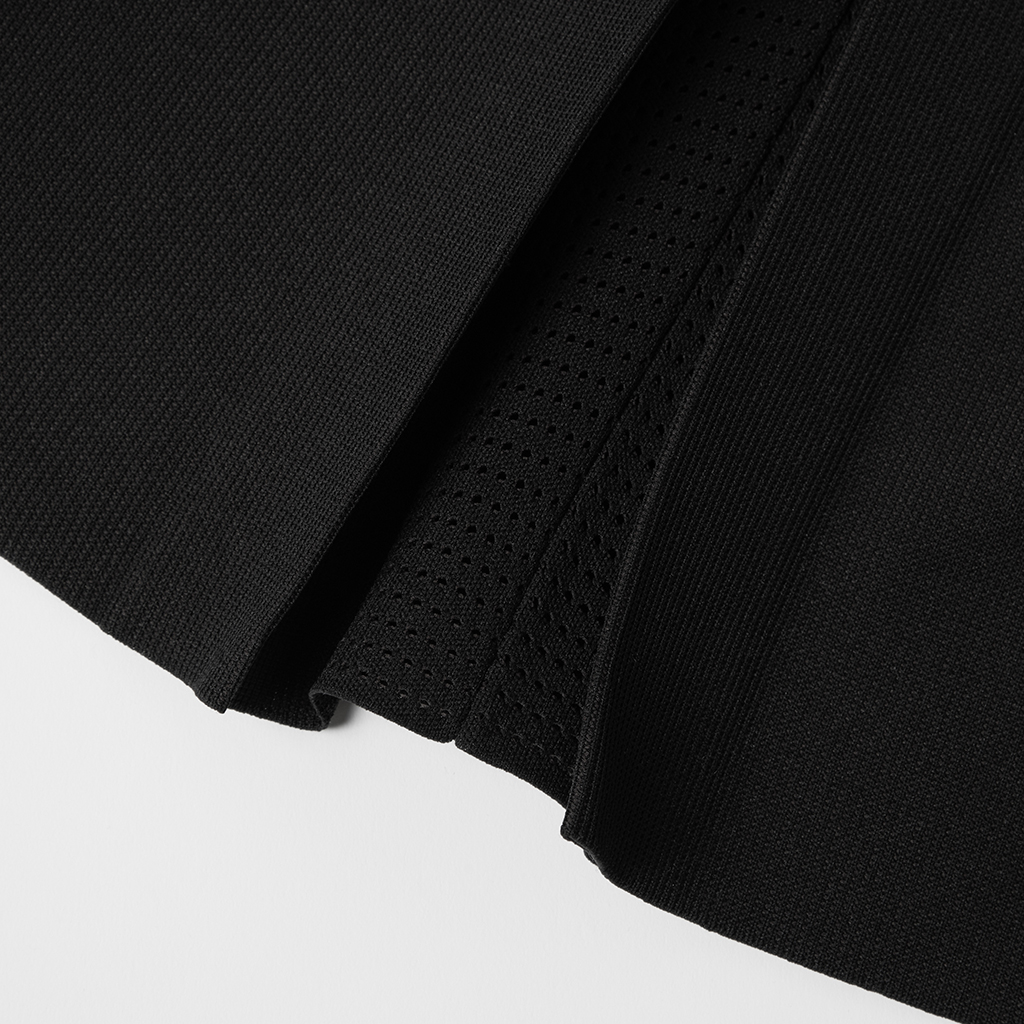 A one-piece dress designed with Descente's unique pattern-making to ensure a 3D silhouette and airy comfort. The textured structure of the inner knit minimizes skin contact. This one-piece combines freedom of movement and comfort in a seamless design using knit and sew manufacturing with ultrasonic welding and heat bonding. The elegant silhouette makes it suitable for both formal and casual occasions
