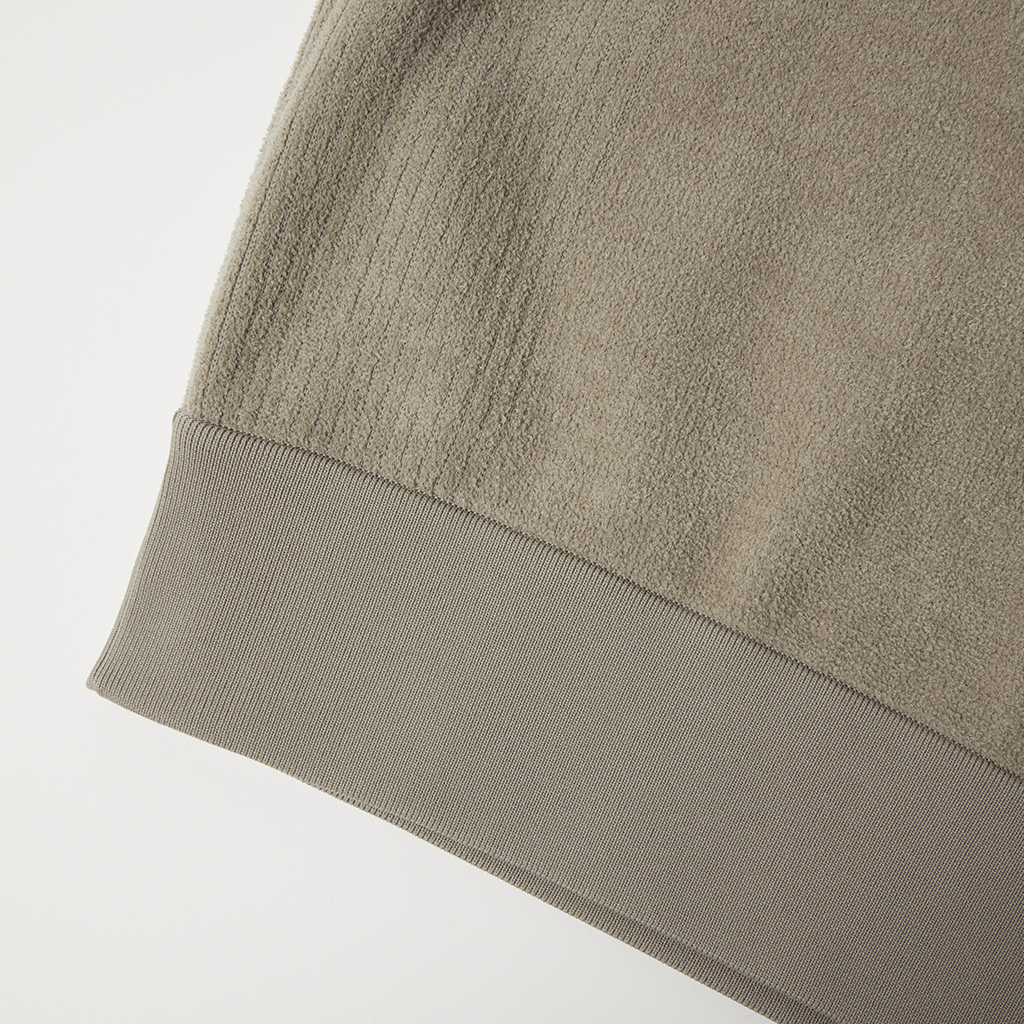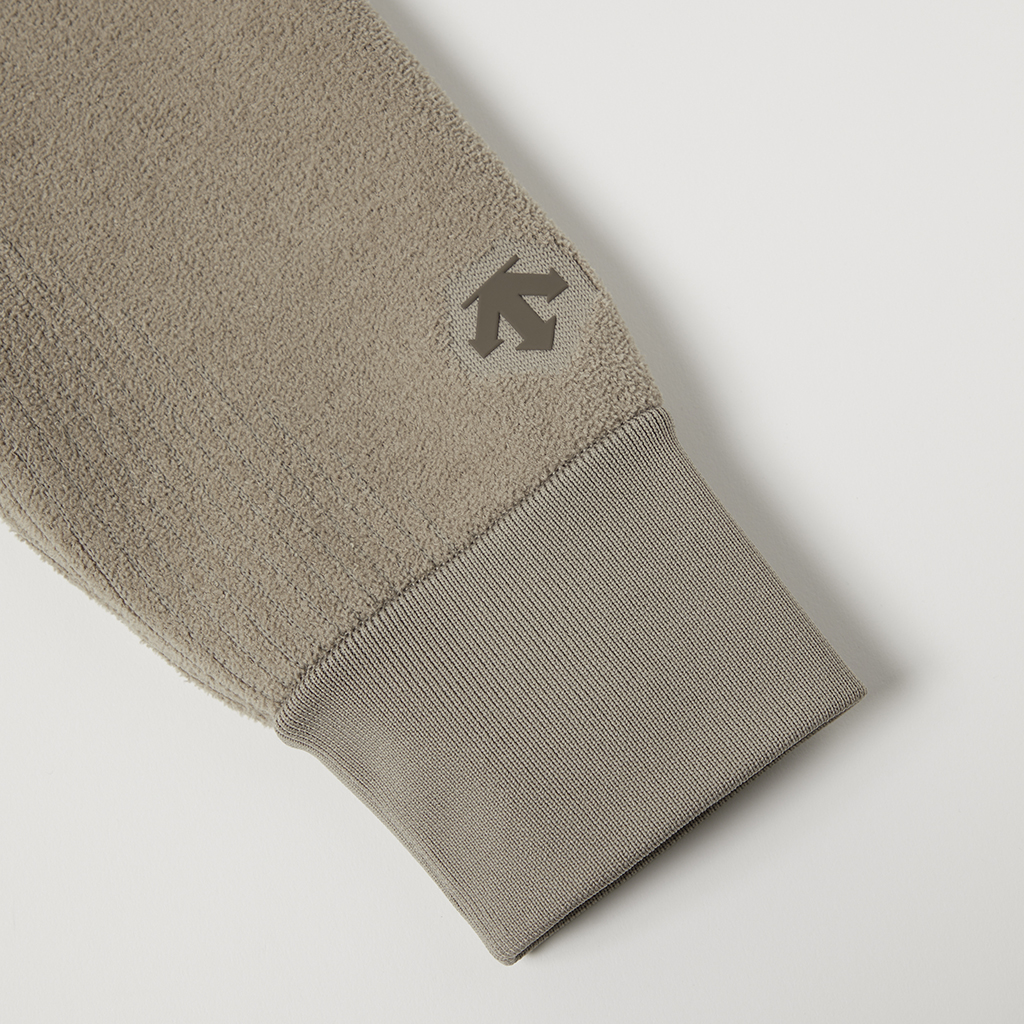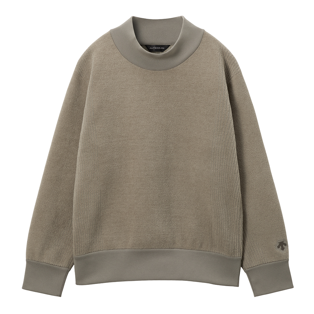 A stripe pattern knitted crew neck sweatshirt in the FUSIONKNIT series. Different jacquard patterns are knitted into a single fabric piece for the body and sleeves for effective breathability and stretch with minimal seaming. Descente's unique pattern-making ensures a 3D silhouette and airy comfort. The textured inner knit minimizes skin contact. This crew neck sweatshirt combines freedom of movement and comfort in a seamless design using knit and sew manufacturing with ultrasonic welding and heat bonding.