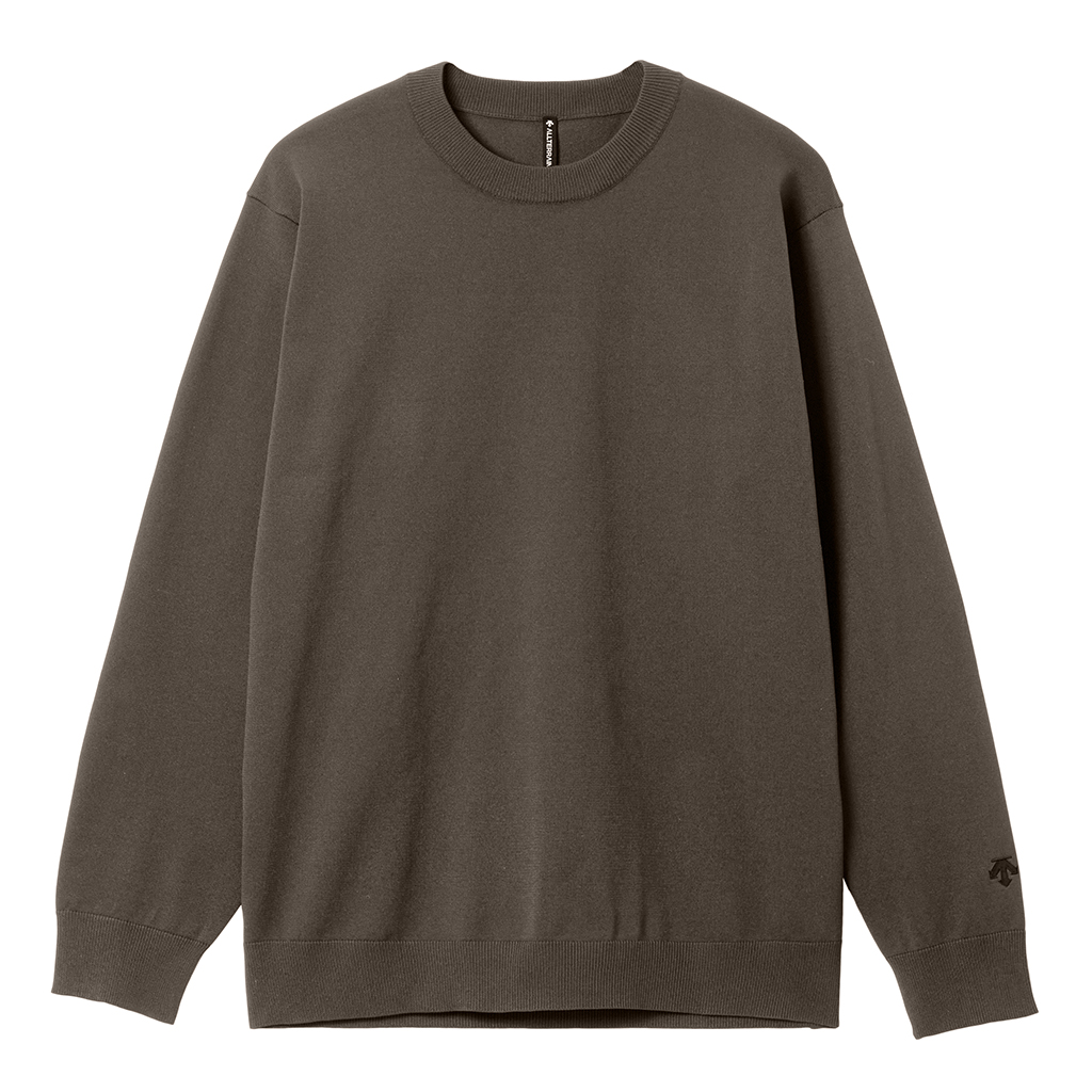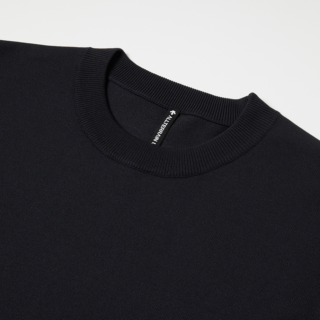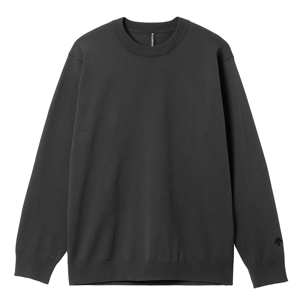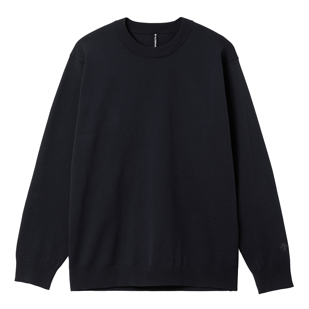 A knit sweater with an easy texture, stretch and a slightly relaxed silhouette. In an antibacterial yarn it is easy to care for with home laundering. Despite its soft, sweatshirt-like comfort, it has a sophisticated appearance suitable for both business and casual settings. Ideal for wearing alone or layering under a tailored jacket.