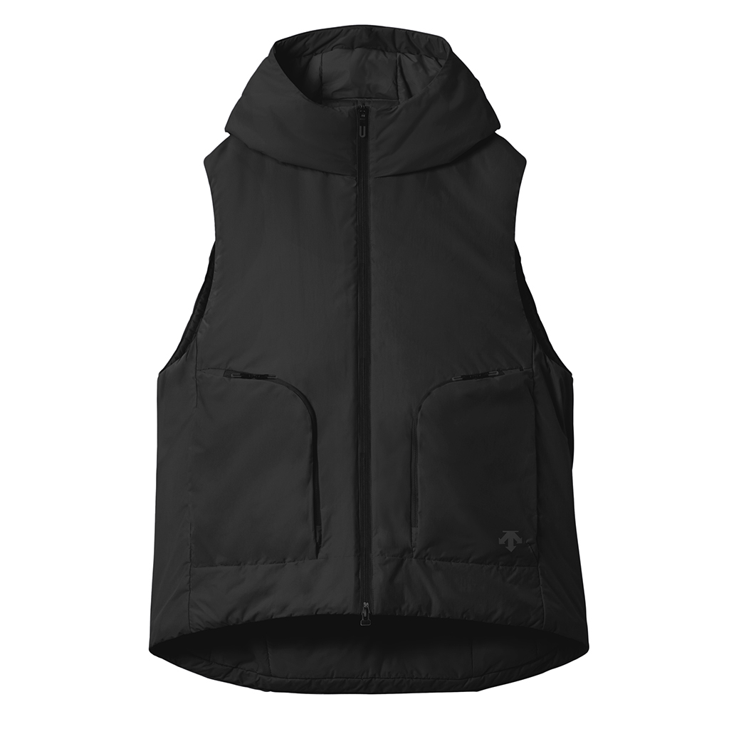 A lightweight, water repellent vest insulated with HEAT NAVI?. The generous cut through the chest and armholes allows for adding layering pieces of varying thickness underneath. Styling options are possible such as changing the silhouette with a drawstring at the hem. Storage pockets are strategically placed for unimpeded movement.