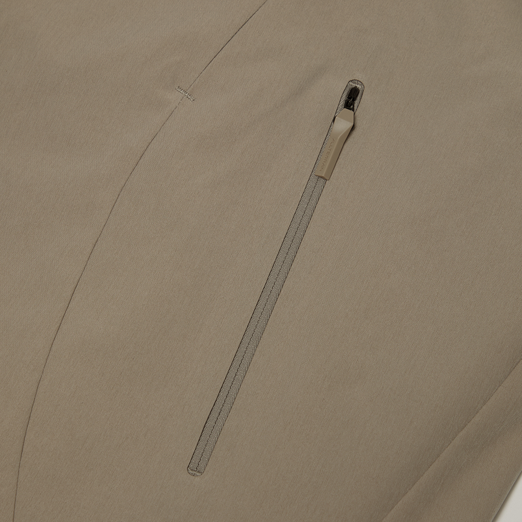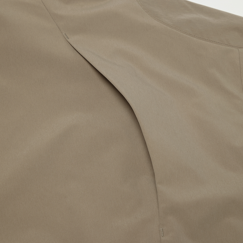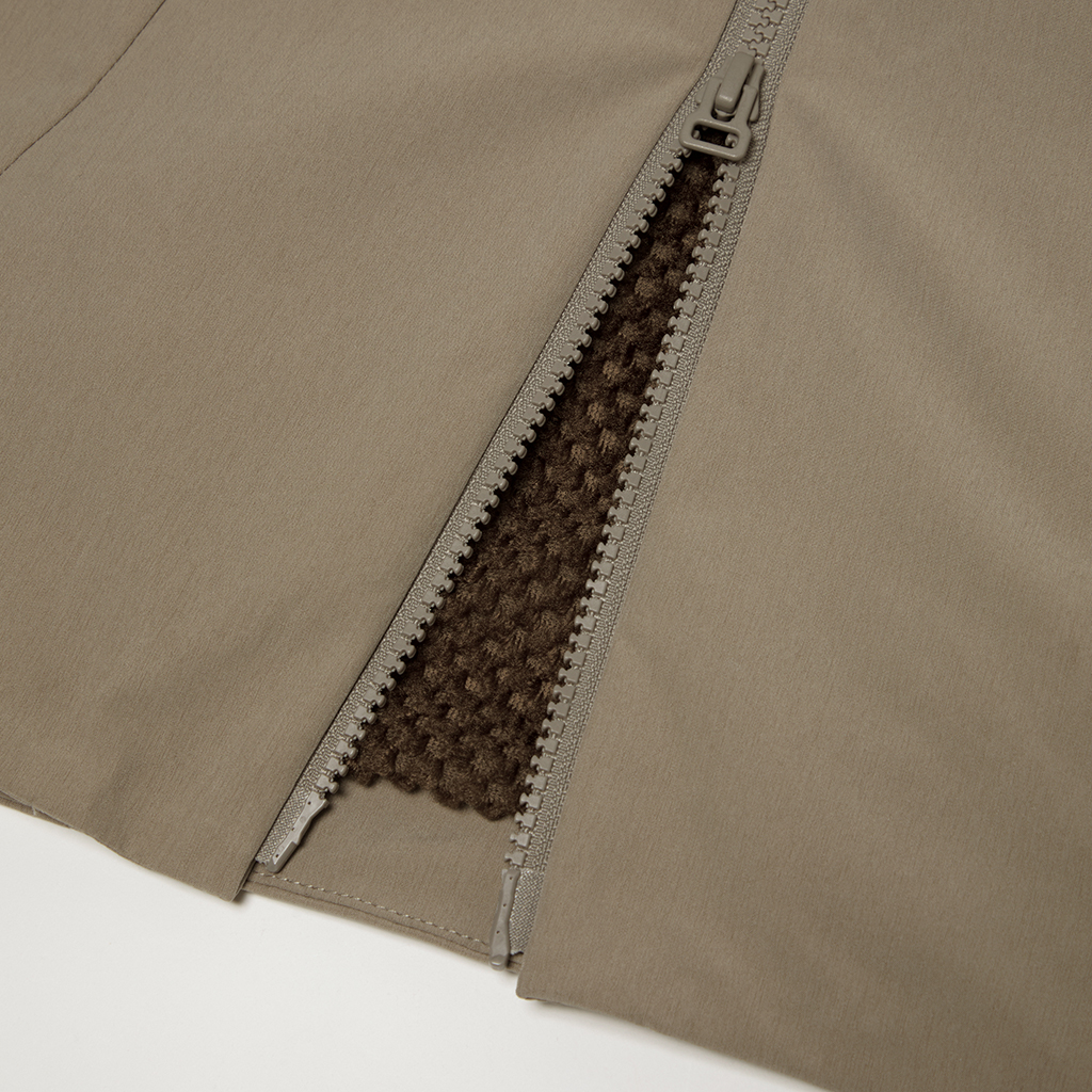 A jacket in a unique fabric using a special yarn processing technique to combine two types of fibers in a dense weave to create texture and water repellency. The lining is in Octa?, with an excellent balance between heat retention and breathability. The integration of mesh and a brushed surface in Octa? prevents sweating and discomfort and ensures the jacket remains breathable and comfortable even during active use. The front panels have concealed zippers with a ventilation function, allowing airflow regulation as needed. Its short, rounded silhouette offers both warmth and style.