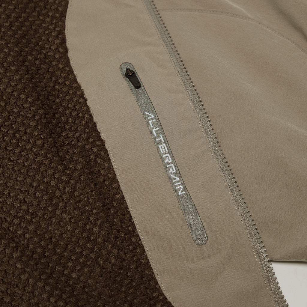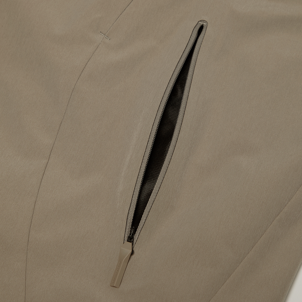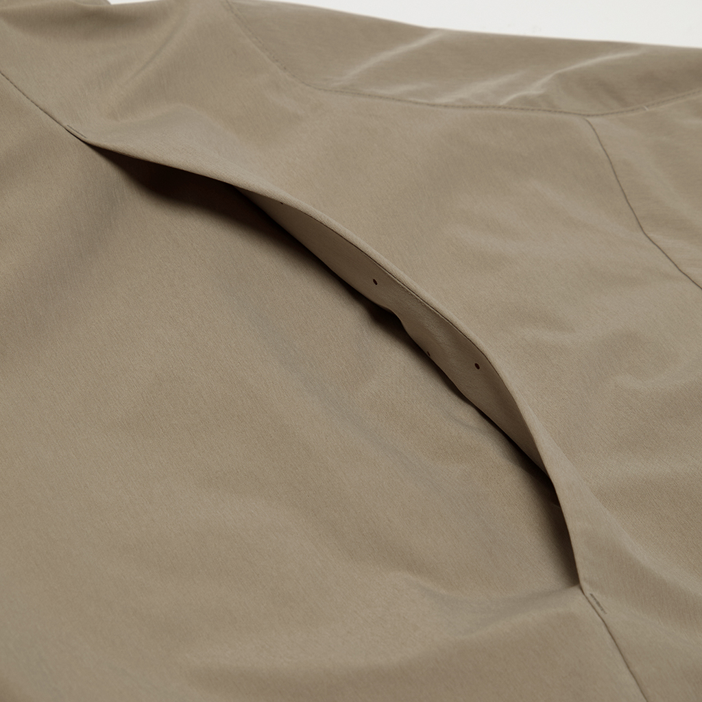 A jacket in a unique fabric using a special yarn processing technique to combine two types of fibers in a dense weave to create texture and water repellency. The lining is in Octa?, with an excellent balance between heat retention and breathability. The integration of mesh and a brushed surface in Octa? prevents sweating and discomfort and ensures the jacket remains breathable and comfortable even during active use. The front panels have concealed zippers with a ventilation function, allowing airflow regulation as needed. Its short, rounded silhouette offers both warmth and style.