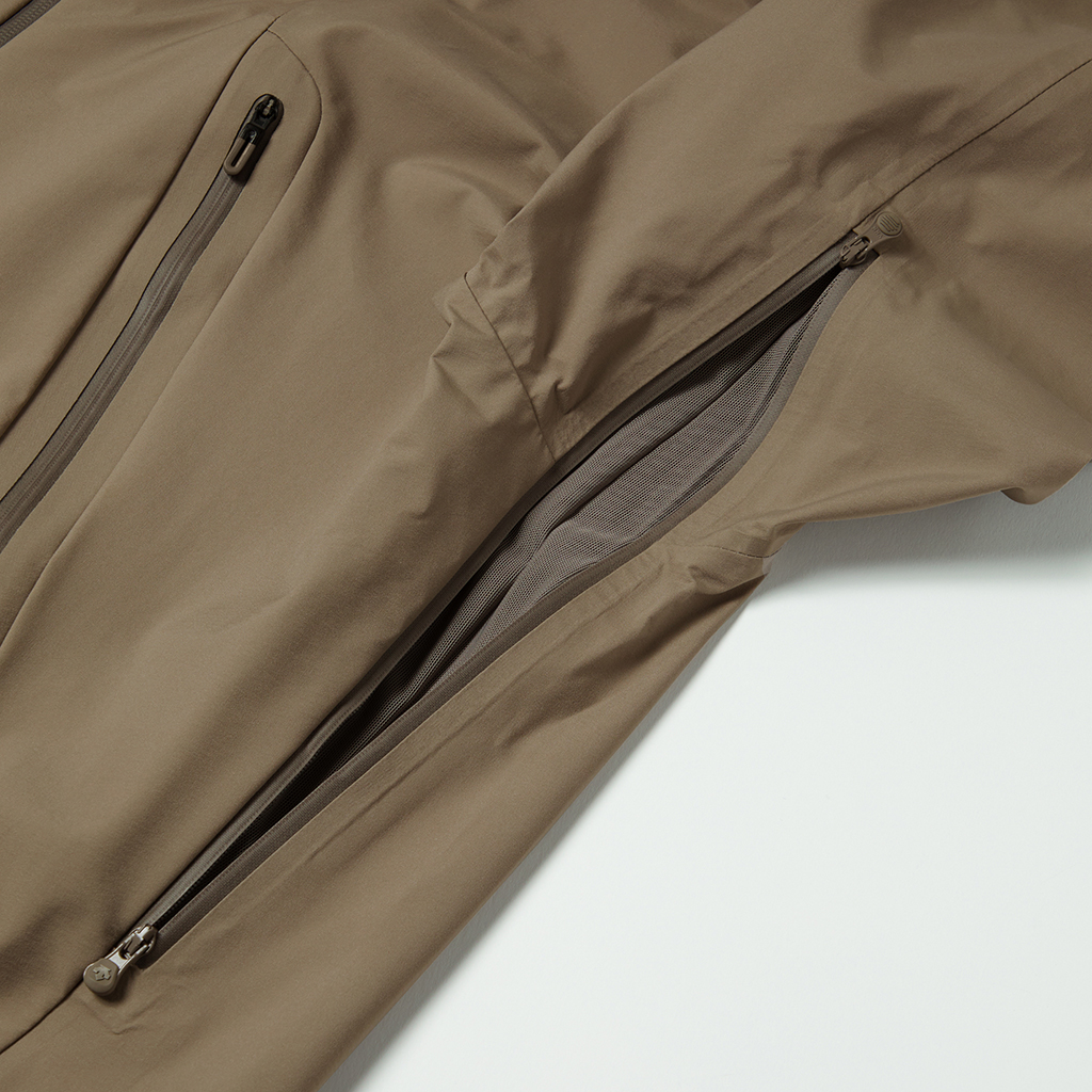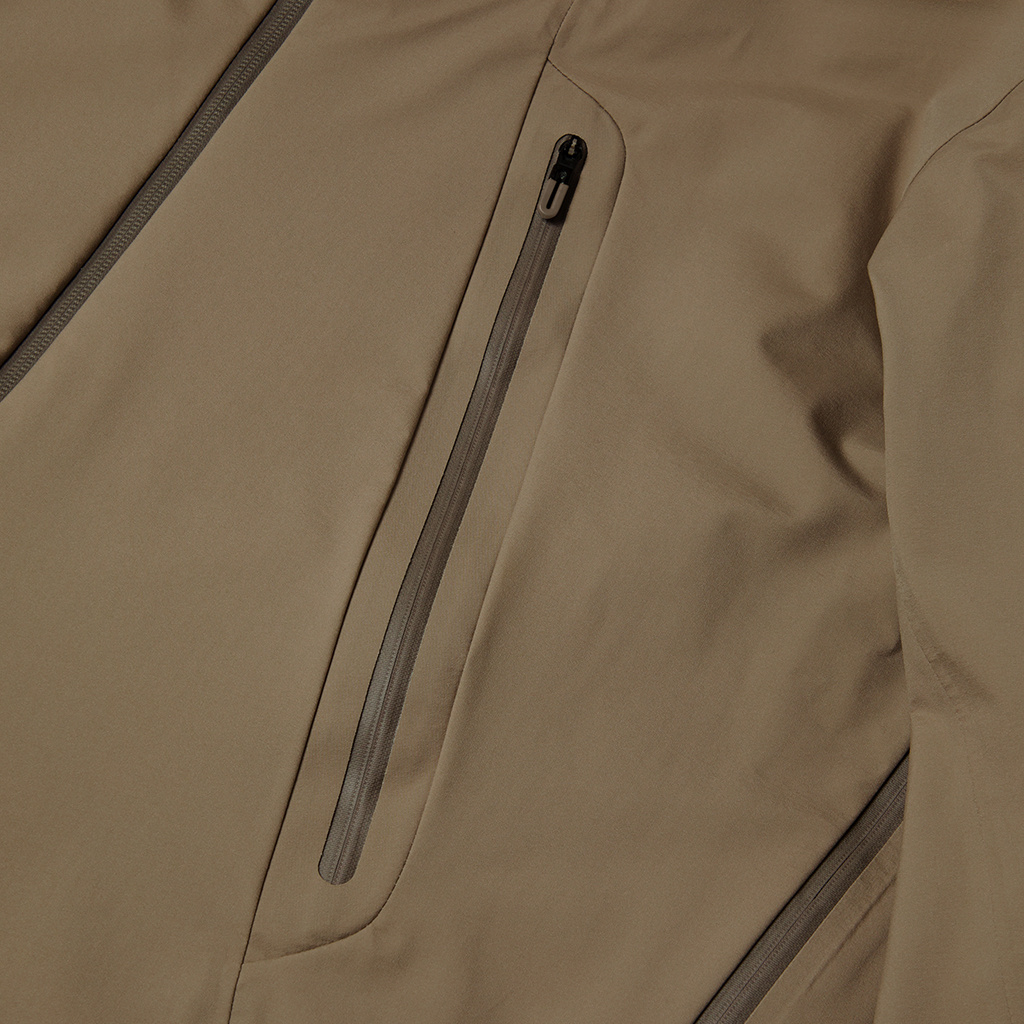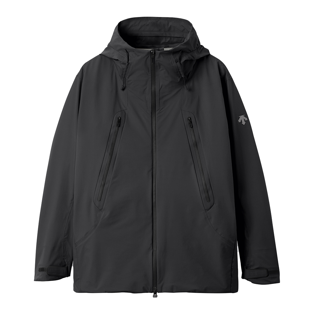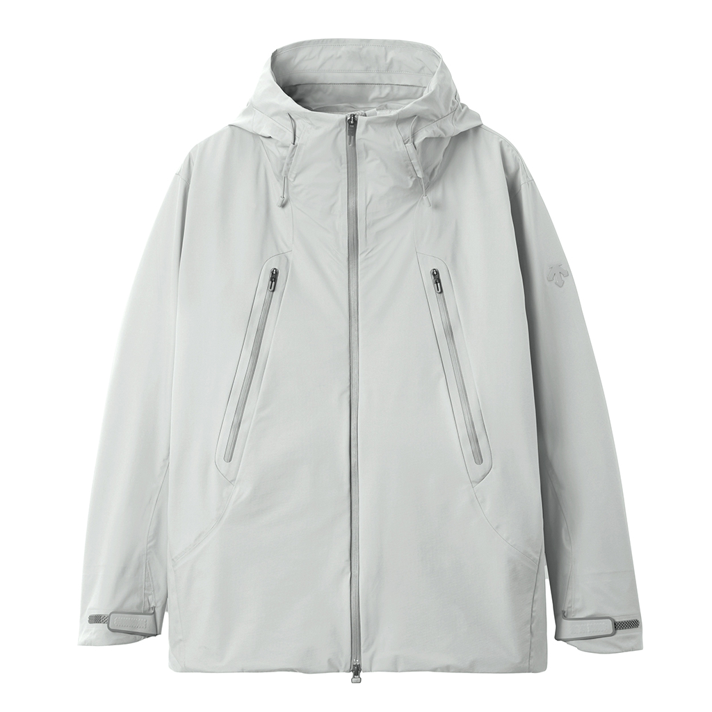 A hard-shell jacket in the CREAS series in Dermizax with an emphasis on waterproofing and breathability. The front Dual-Zip Ventilation System, developed by Descente, allows fresh outside air to enter the jacket through a mesh panel between the zippers, and also expels uncomfortable heat and humidity. The hood is compact and can be stowed and features a Parahood System to prevent water pooling in bad weather. The cuffs have Block-Fit Adjusters that maintain hold even when wet and the hem has a Cohaesive? cord lock system, for quick and easy size adjustment.