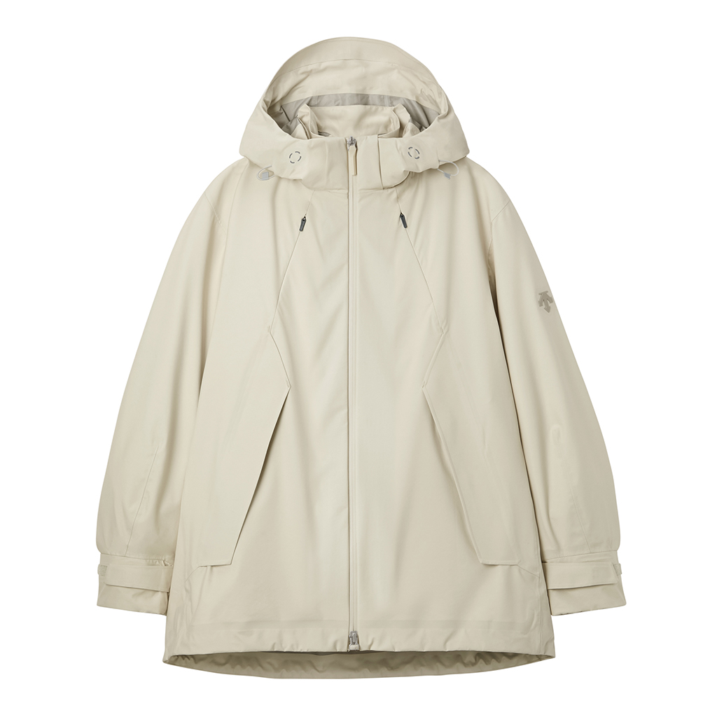 A hard-shell jacket in Dermizax for optimal waterproofing and breathability. The design of the body and sleeves emphasizes a relaxed fit, best for pairing with skirts and other feminine items. The hood has a Cohaesive? cord lock system for quick and easy fit adjustment. Opening the zippers on the chest allows air to enter and flow through to the back for release.