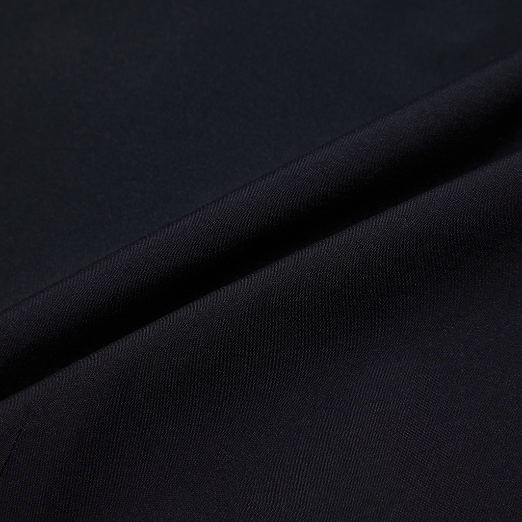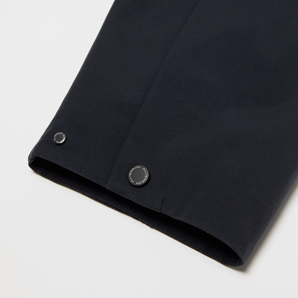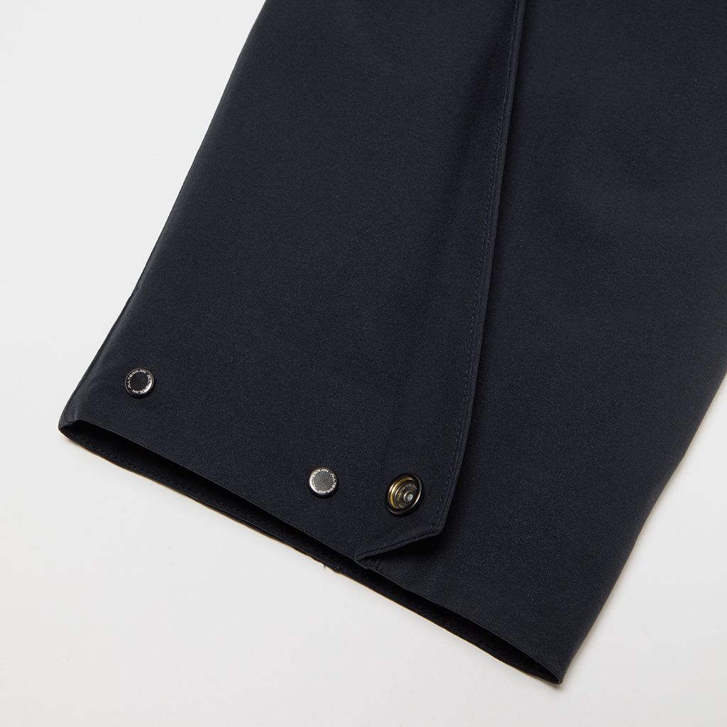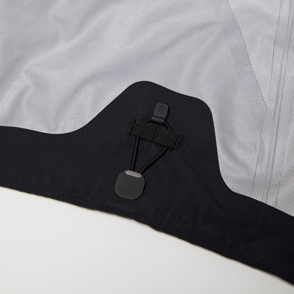 A hard shell jacket in DERMIZAX WINDTIGHT NYLON 3L offering an excellent balance between waterproofing and breathability. The silhouette is unique, designed to maximize ventilation and made with structured flaps from chest to sleeve cuffs. Air can be drawn in through the flaps and released through the back of the jacket. The front Dual-Zip Ventilation System, developed by Descente, allows fresh outside air to enter the jacket through a mesh panel between the zippers, and also expels uncomfortable heat and humidity.The short front and voluminous body and sleeves create a rounded 3D silhouette allowing air to move easily inside the garment. The hood has a Parahood System to prevent water pooling in bad weather. Snap buttons on the cuffs offer both fit and styling options.