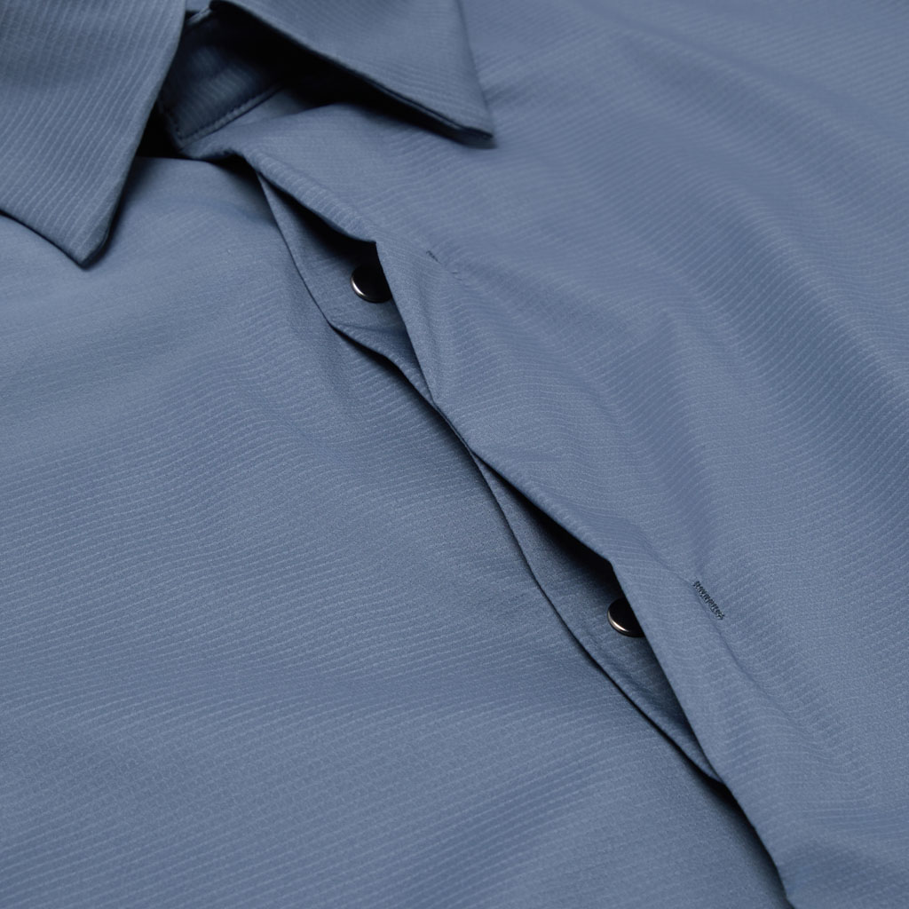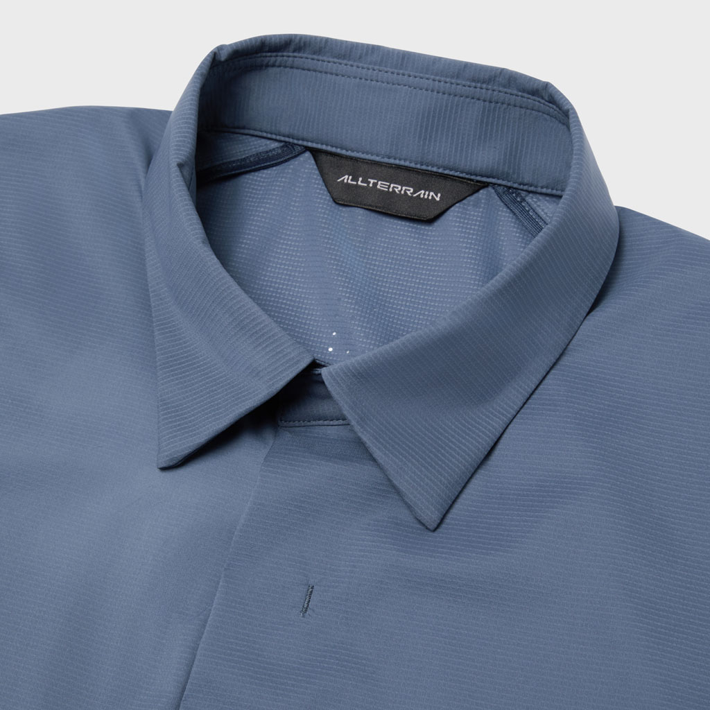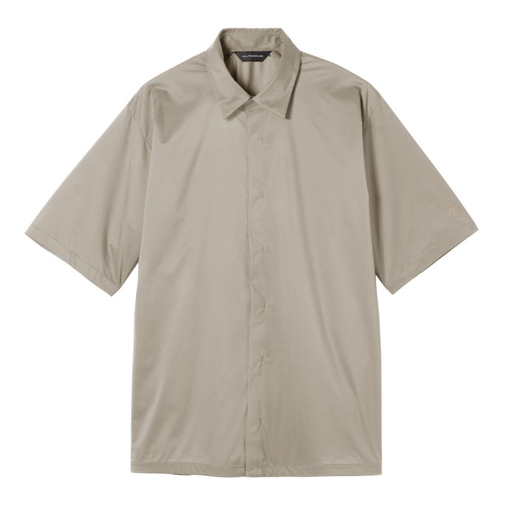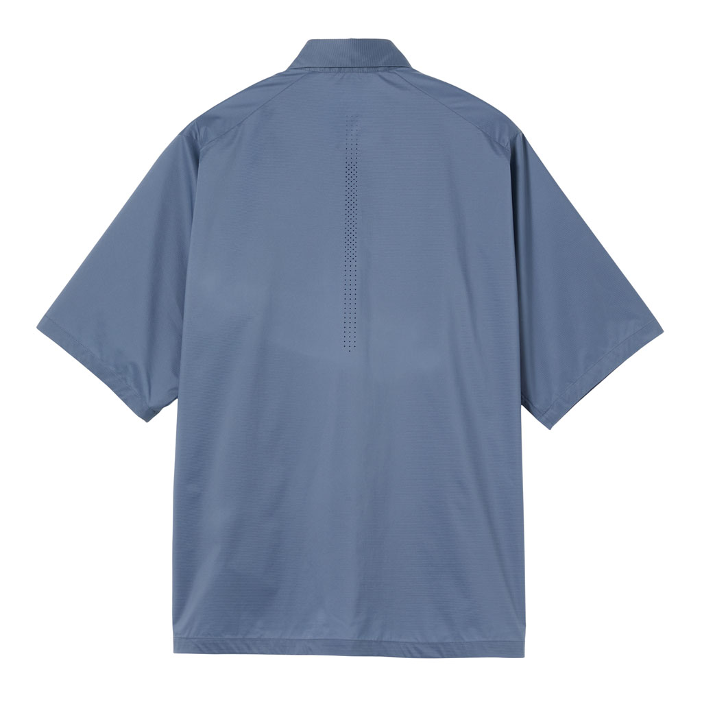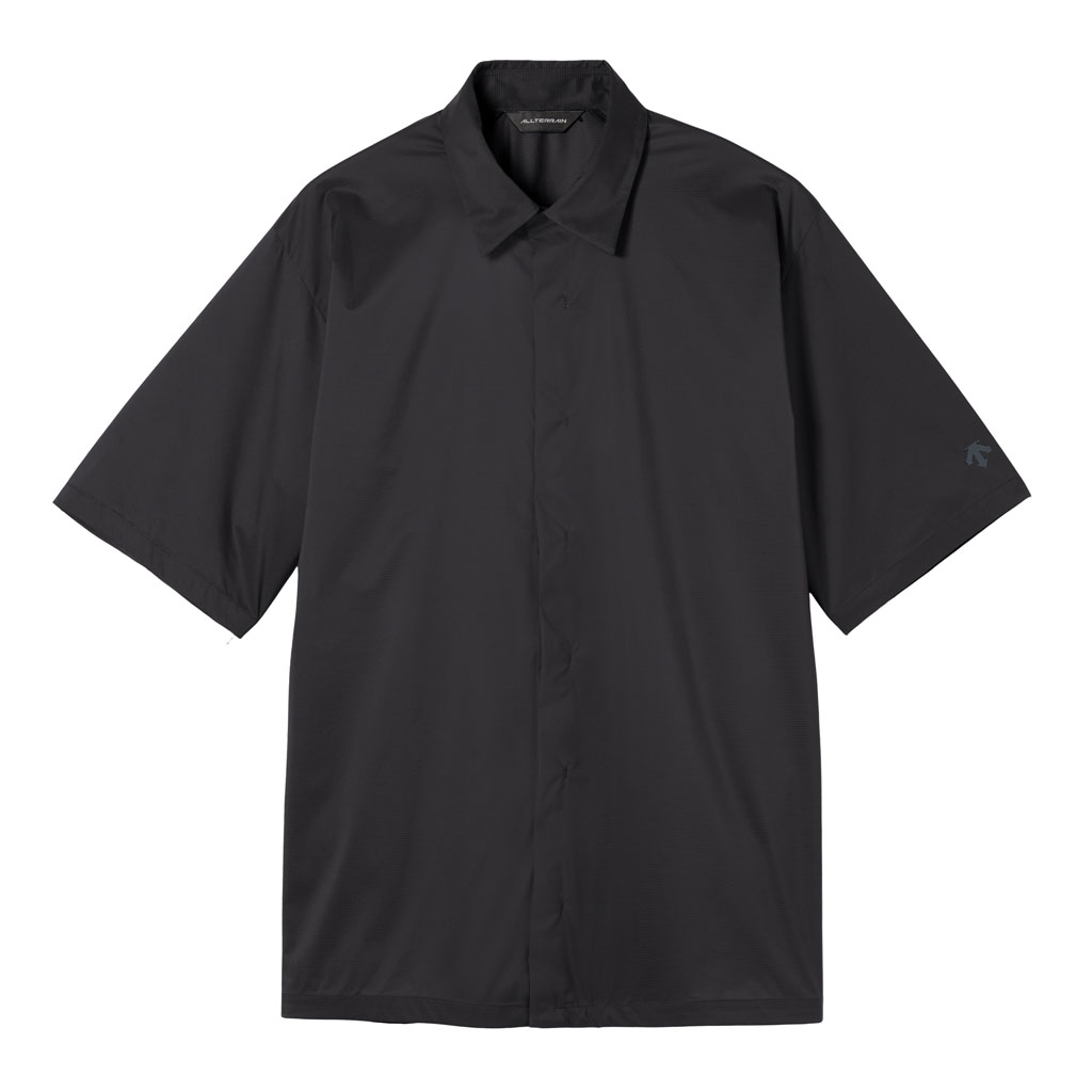 A lightweight, water-repellent half-sleeve shirt with a grid-like inner surface texture offering a dry, comfortable feel. Ventilation holes in the centre of the back minimize moisture buildup. Details are minimized to ensure lightness, resulting in a clean, minimal silhouette versatile for spring and summer.