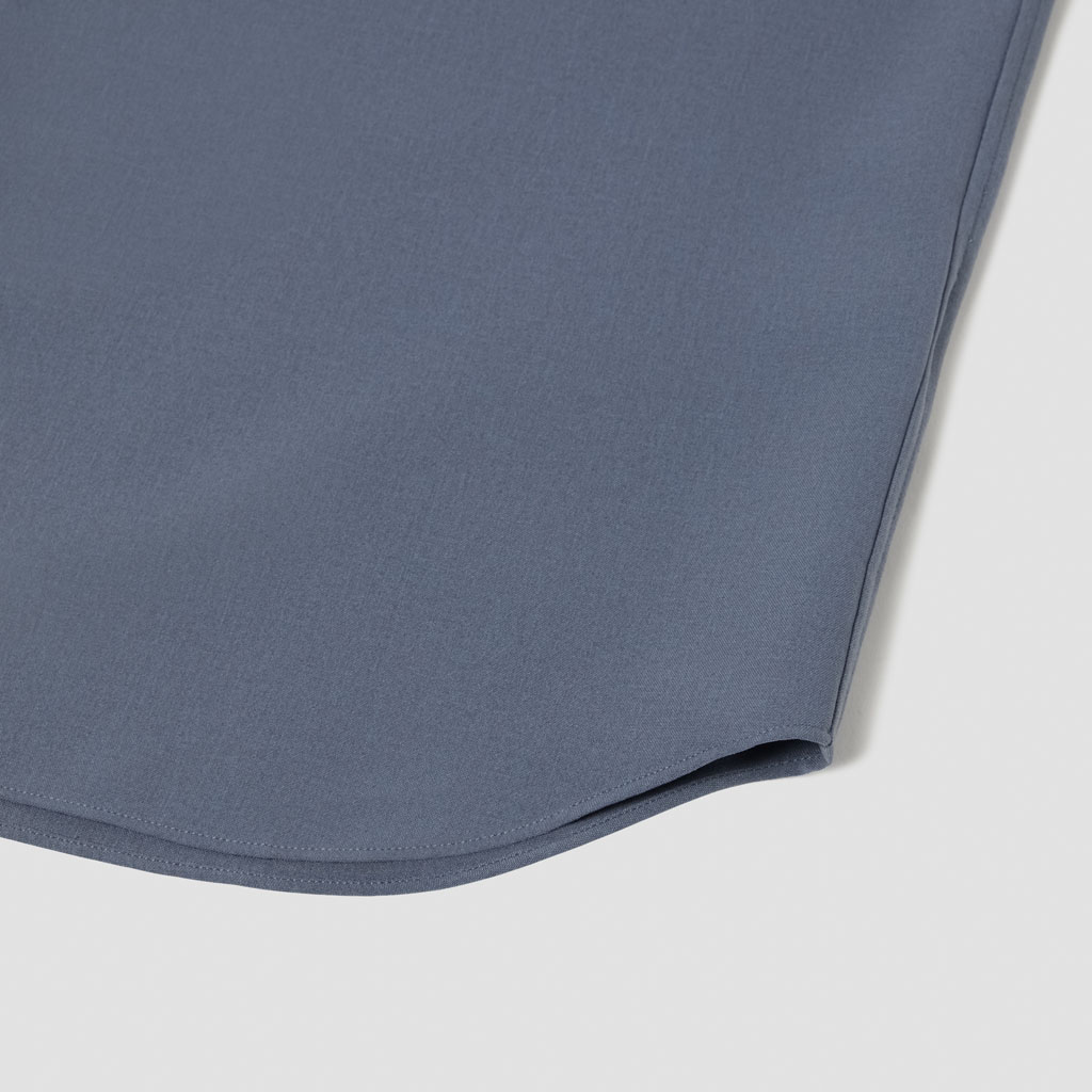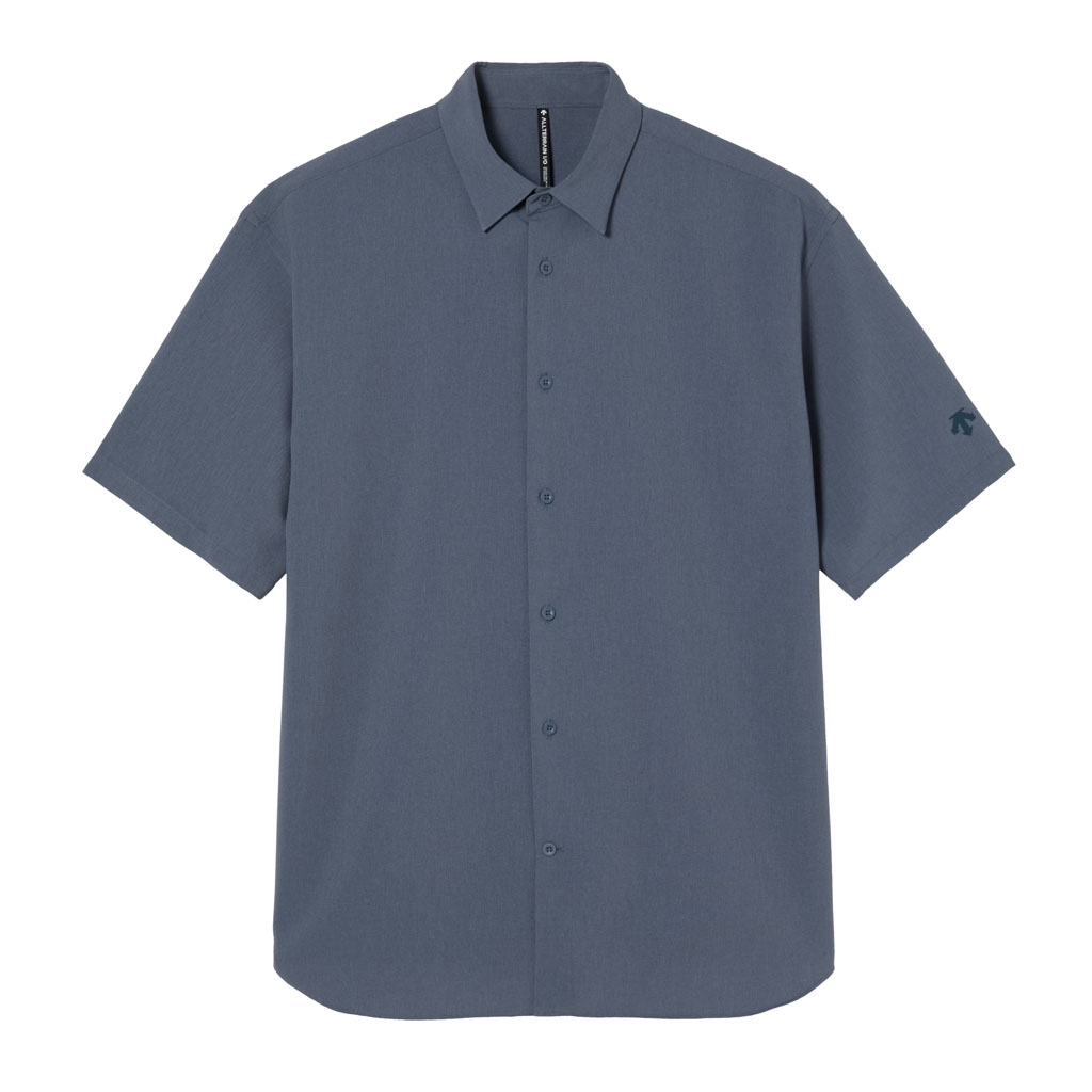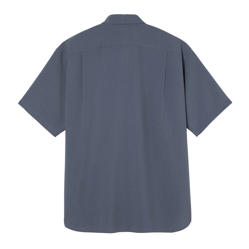 A half-sleeve shirt in a wool-like fabric characterized by its drape and fluidity. Suitable for business wear, either with matching pull-on pants or with standard business pants. The added water-repellent finish protects against sudden rain and ensures all day comfort.