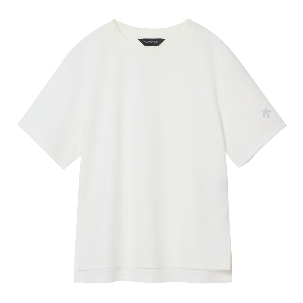 A T-shirt in a fabric with excellent UPF, water absorption, quick wicking and quick drying properties. Seamless on the reverse for a soft skin touch. The fabric’s natural stretch is utilized to create a minimalist, streamlined design that prioritizes comfort. It can be paired with the skirt in the same fabric for a sophisticated look. The relaxed fit allows for a comfortable feel while ensuring a feminine silhouette. Side slits at the hem add a natural, clean finish. Whether worn as a set or separately, this versatile piece expands styling options.