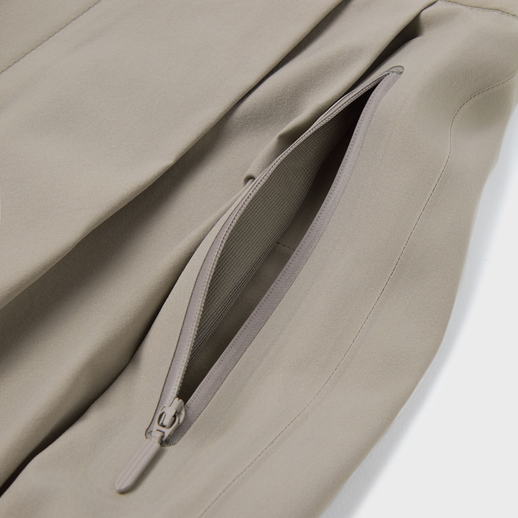 A sotf long sleeve shirt with excellent stretch and water repellency. The relaxed silhouette creates an airy, comfortable fit. Ultrasonic welding and heat bonding create a seamless interior and ensure the stretch is unimpeded. Its minimalist aesthetic offers styling options for both business and casual settings.