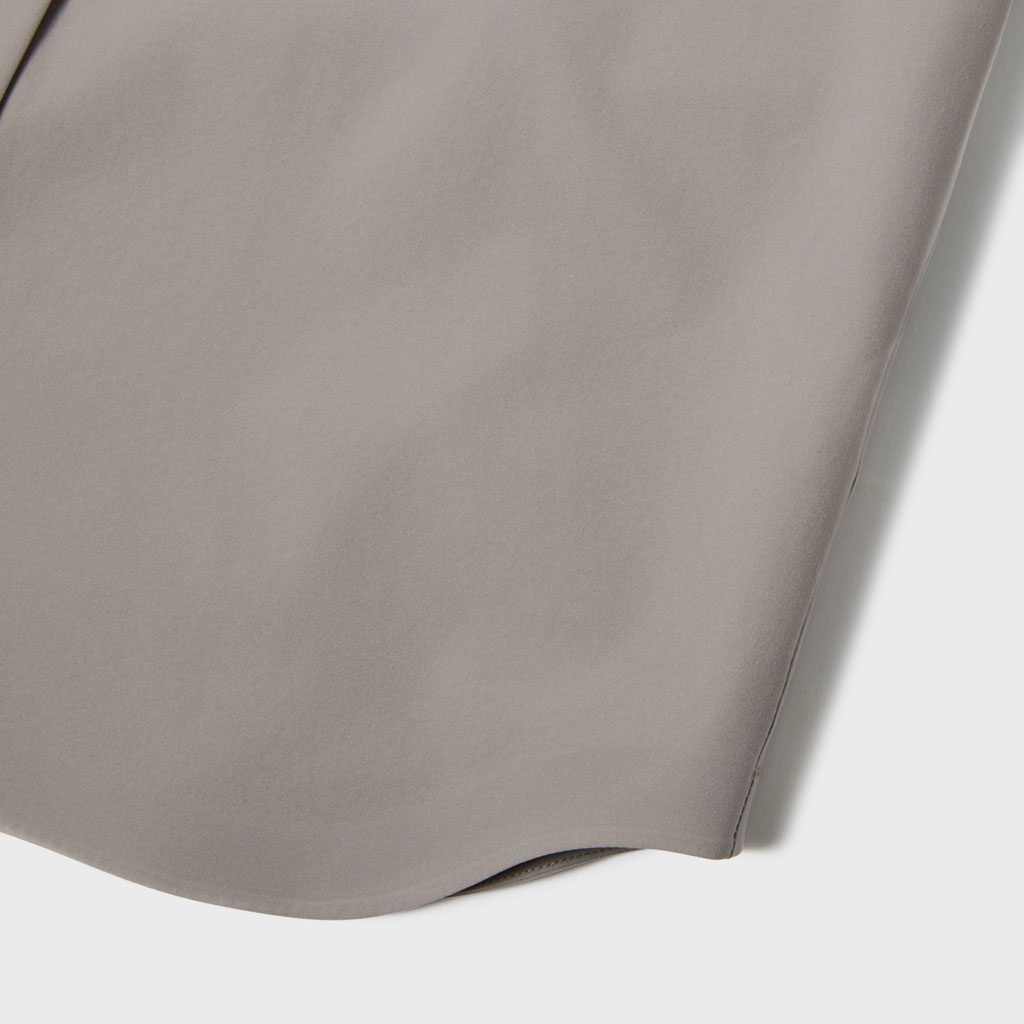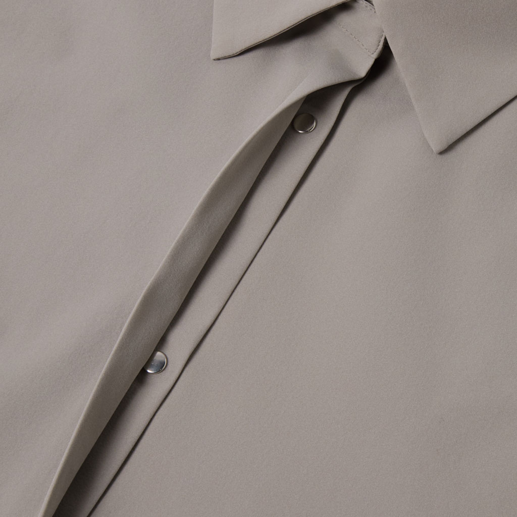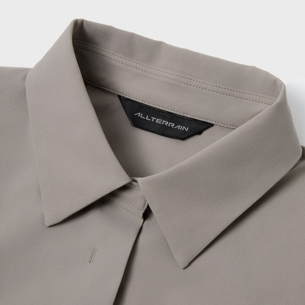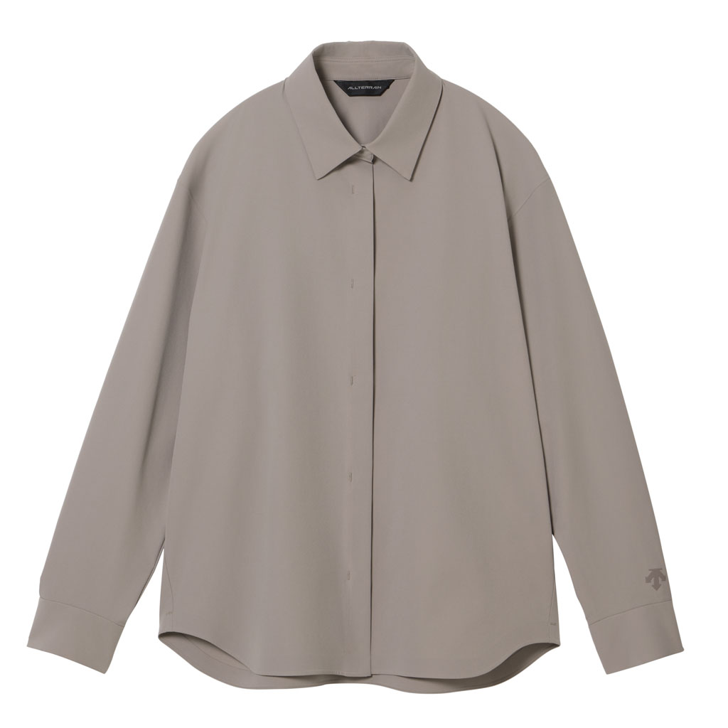 A soft long sleeve shirt with excellent stretch and water repellency. The relaxed silhouette creates an airy, comfortable fit. Ultrasonic welding and heat bonding create a seamless interior and ensure the stretch is unimpeded. Its minimalist aesthetic offers styling options for both business and casual settings.