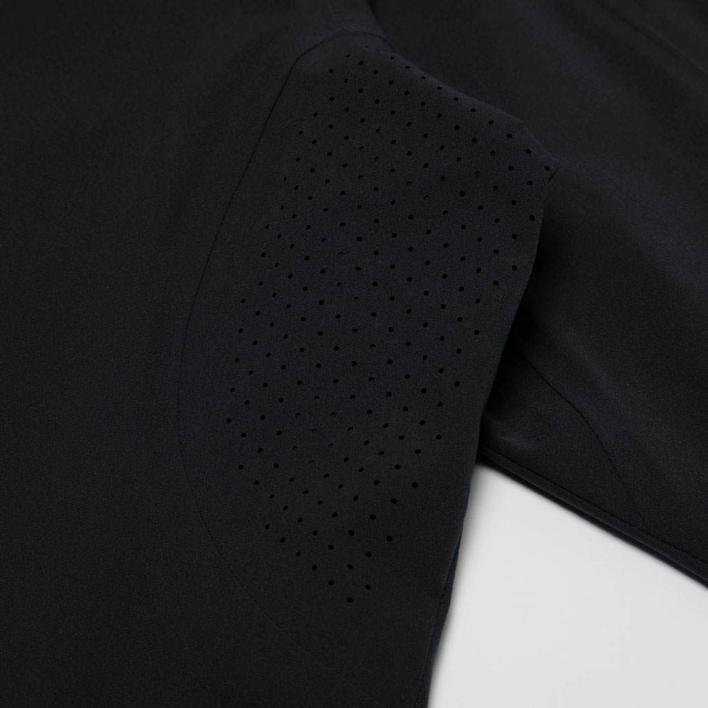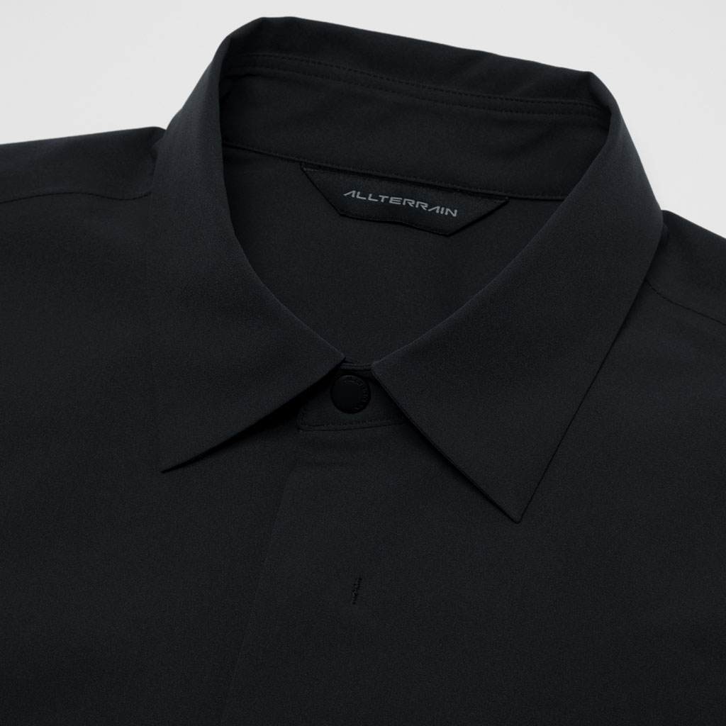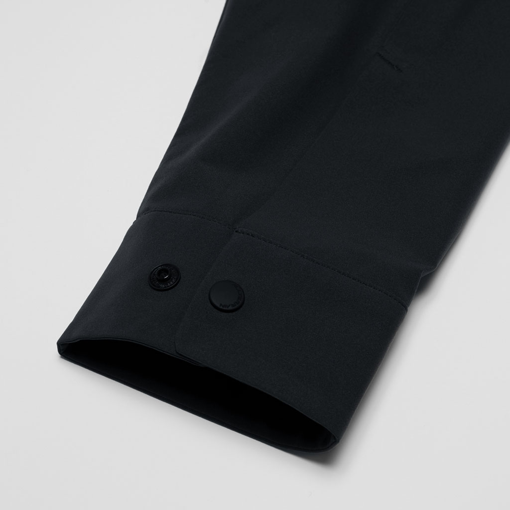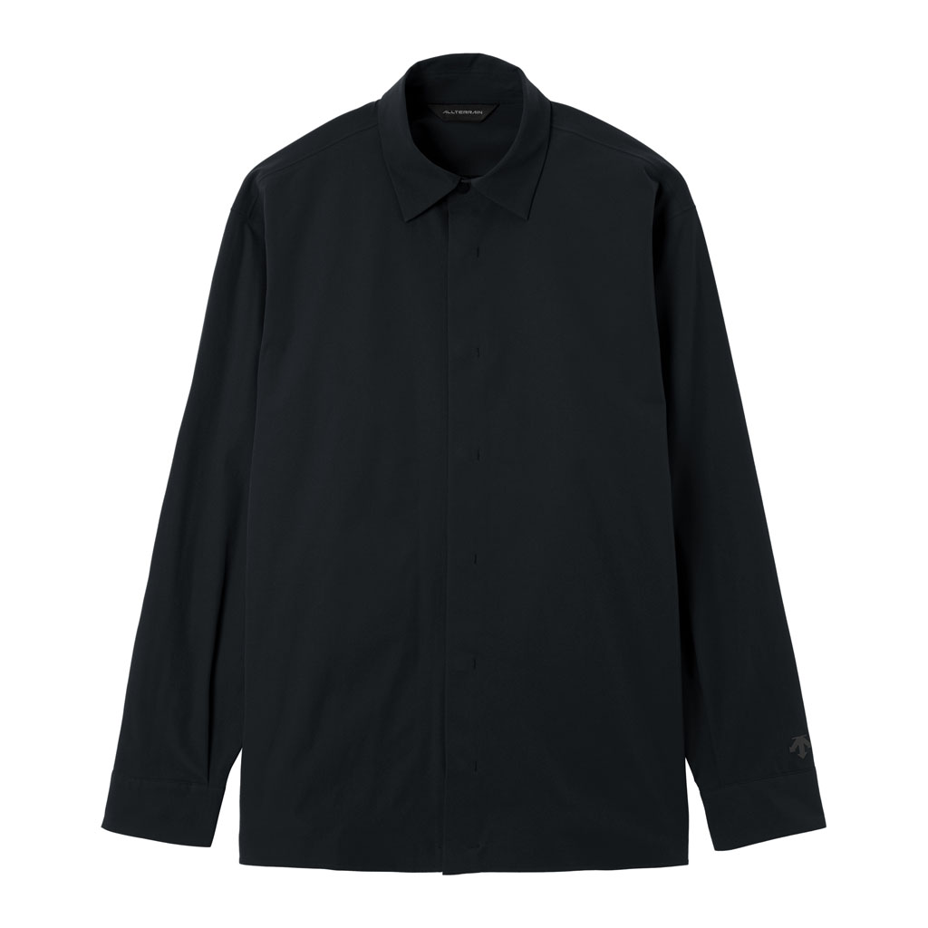 A soft long sleeve shirt with excellent stretch and water repellency. The relaxed silhouette creates an airy, comfortable fit. Ultrasonic welding and heat bonding create a seamless interior and ensure the stretch is unimpeded. Its minimalist aesthetic offers styling options for both business and casual settings.