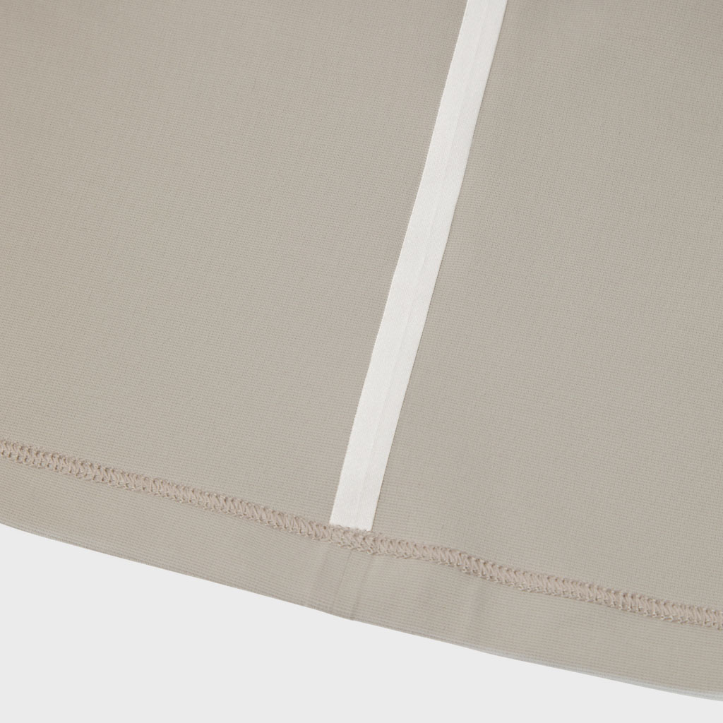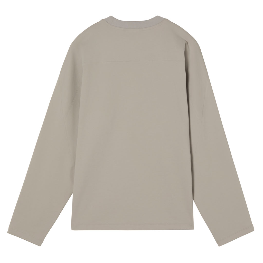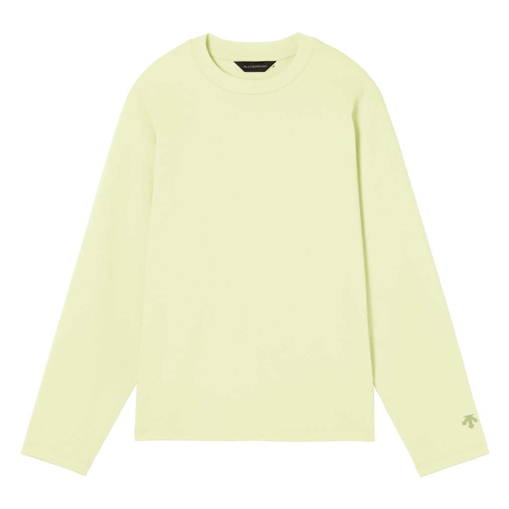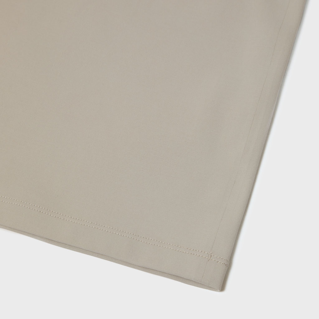 A T-shirt with a cotton-like texture, in full-dull micro-spun stretch, quick wicking, quick drying yarn. The inside is free of sewn seams and the fabric’s natural stretch is protected.This minimalist, streamlined design maximizes comfort.