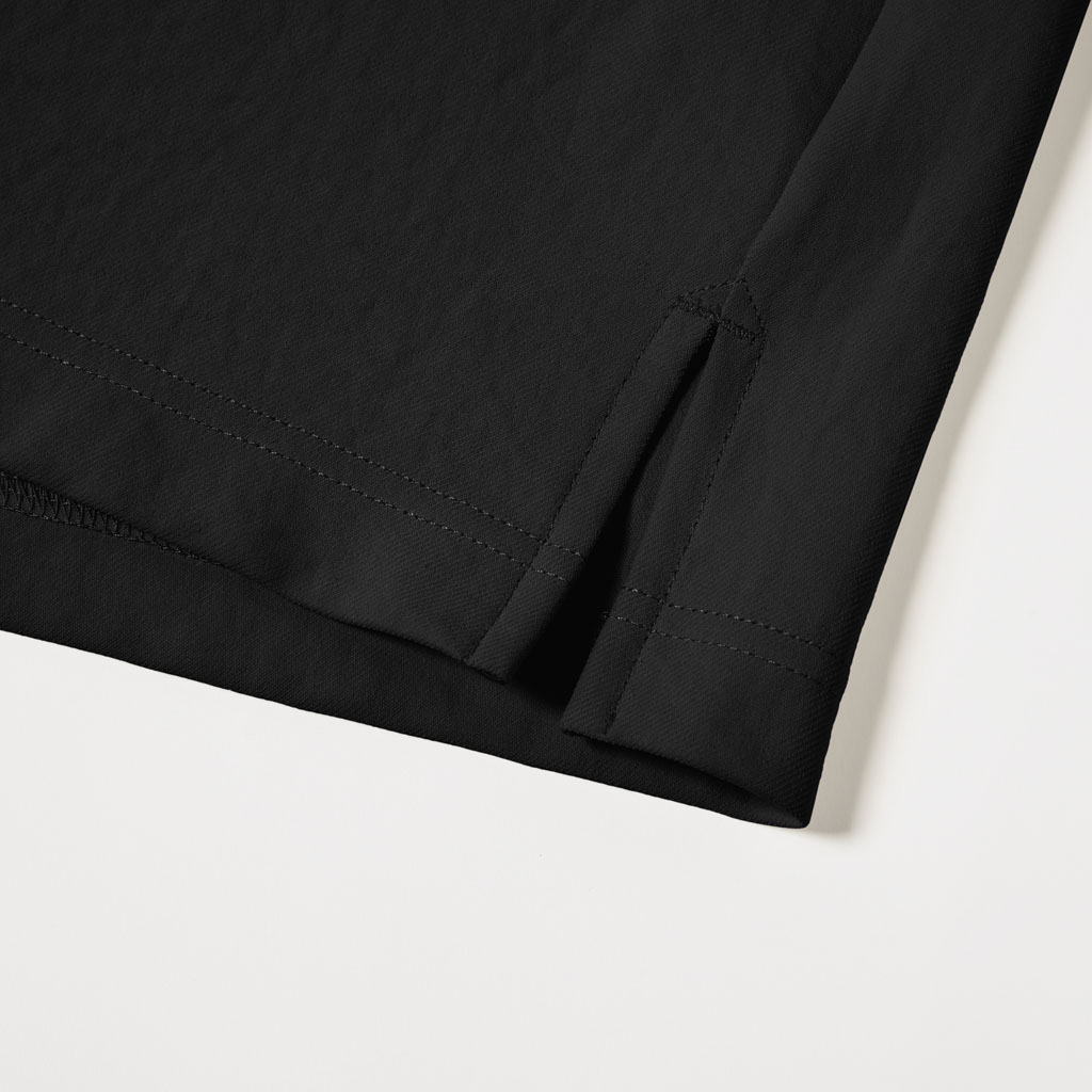 A long-sleeve T-shirt in a UV-blocking, stretch fabric. The fabric is with an easy texture and stretch and a slightly relaxed silhouette. In an antibacterial yarn it is easy to care for with home laundering. Despite its soft, sweatshirt-like comfort, it has a sophisticated appearance suitable for both business and casual settings. Ideal for wearing alone or layering under a tailored jacket.lightweight and thin but the use of matte full dull yarn prevents transparency. With excellent moisture absorption, it is comfortable for most of the year and is fine for both business and casual wear.